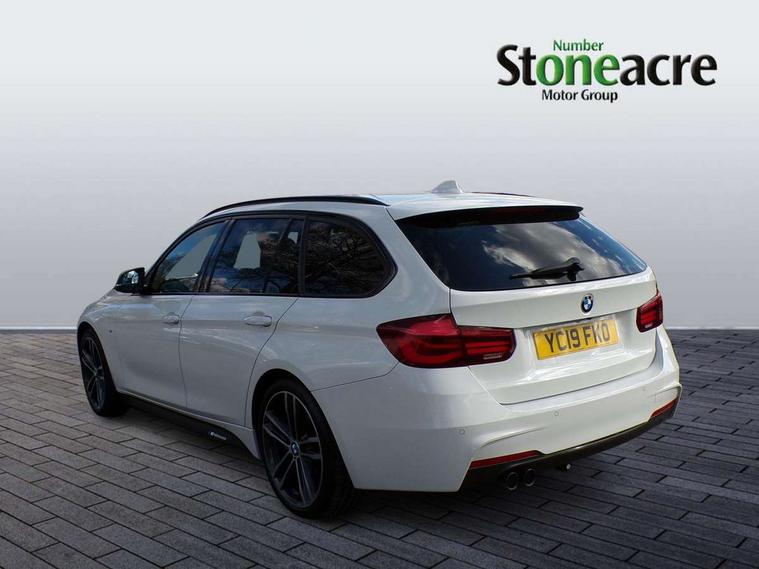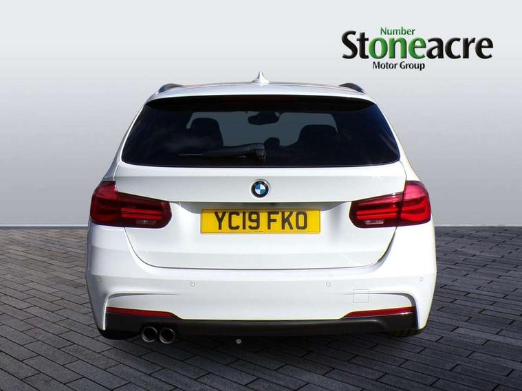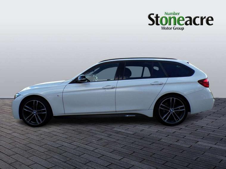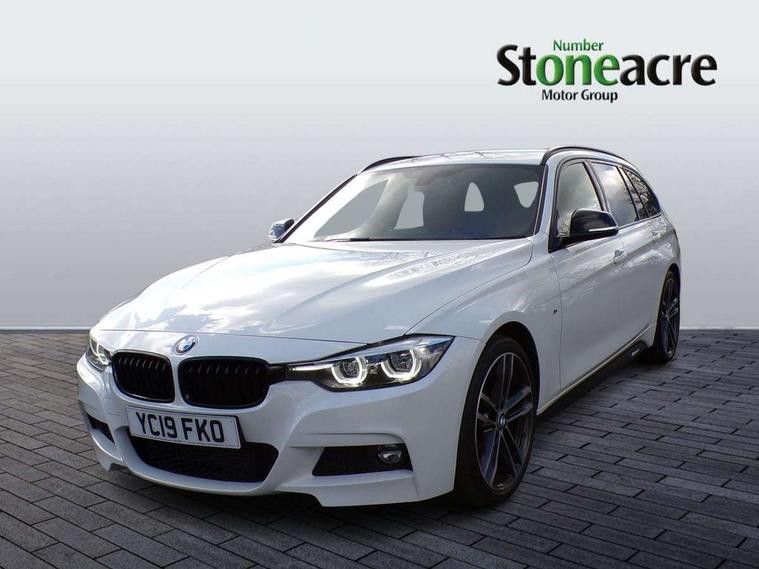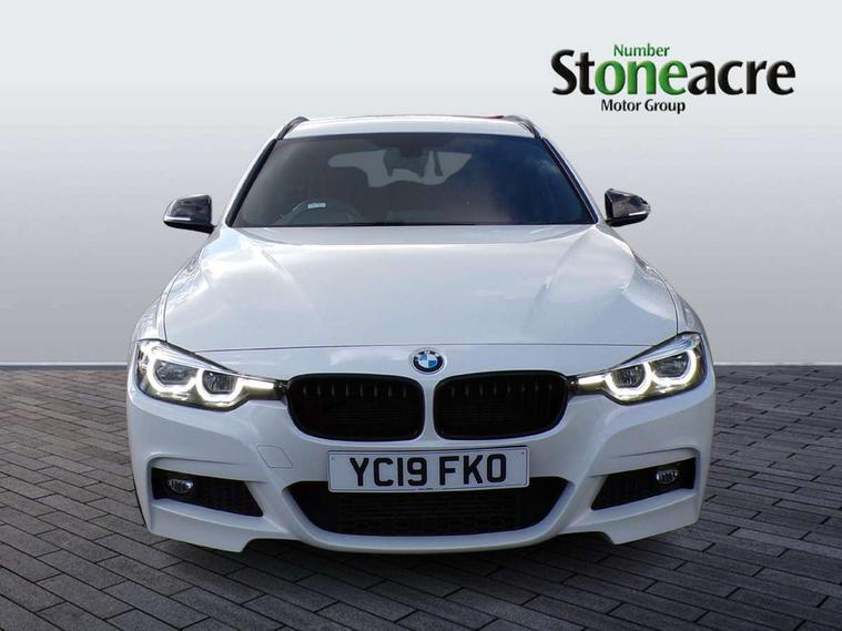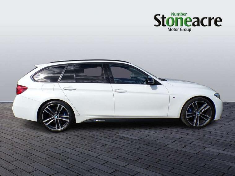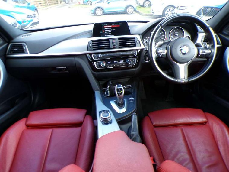 Automatic start/stop system, Automatic tailgate operation, Average speed gauge, BMW Online services, BMW remote services, BMW Teleservices, Brake force display, Brake pad wear indicator in front and rear, Check Control warning system for monitoring of lights and door/luggage compartment open warning, Controller and Control Display+6.5" monitor, Digital clock, Door/boot open warning light, iDrive controller on centre console, Instrument cluster with speedometer with mph readout, tachometer, fuel gauge and oil temperature gauge, Lights on warning, M Sport instrument cluster, Odometer, Oil sensor for level and grade, On board computer, On board diagnostics, Operation warning of all exterior lights, Optimum shift indicator, Outside temperature display, Pesonal profile, Real time traffic information, Service interval indicator, Trip computer, Battery cut-out switch, Diesel particulate filter, Drive Performance Control, Electronic differential lock, Incorrect fuelling protection, Multi-link rear suspension, Sport automatic transmission with steering-wheel mounted gearshift paddles and launch control, BMW professional radio/CD/MP3, CD player, DAB Digital radio, Harman/Kardon loud speaker system, 2 speed adjustable intermittent wipers with wash/wipe function, Active air flap radiator grille, Auto dimming rear view mirror, Automatic headlight beam throw control, Body colour bumpers, Body colour door handles, Body colour roof mouldings, Clear indicator lenses, Dark chrome exhaust tailpipe, Dark headlamp surround, Darkened rear light clusters, Direction indicator, side repeaters, integrated in exterior mirrors, Door sill finisher with M designation, Dynamic brake lights, Electric front and rear windows with one touch/convenient open/close function, Front and rear bumper system with replaceable deformation elements, Green tinted heat insulating glass, Heated rear window with automatic switch off, Heated windscreen washer jets, High beam assistant, High gloss black air inlets, High gloss black finish B pillar, High gloss black rear bumper insert, High gloss shadow line, High level third brake light, Independent opening for tailgate window, LED fog lights, LED rear lights, LED welcome home lights, M aerodynamic body styling, Matt black exterior trim, Rain sensor + automatic driving lights control, Rear wash/wipe, Shark fin roof aerial, Sun protection glass, Visible VIN plate, 12V sockets in front centre console and passenger footwell, 3 rear seat head restraints, 4 foldable grab handles - rear with clothes hook, 4 lashing points on luggage floor, 40:20:40 split folding rear seat, Anthracite headlining, Automatic interior light soft on/soft off system, Dual zone automatic air conditioning, Folding front centre armrest + storage, Front and rear door armrests, Front and rear velour floor mats, Front door storage bins with bottle holder, Front sports seats with electric side bolster adjustment, Glovebox light, Glovebox opener with chrome spider, Height adjustable front headrests, Indirect front interior illumination - soft-light function, Leather gear knob, Leather gear selector lever handle, Leather handbrake lever, Luggage compartment lighting, Reach + rake adjustable steering column, Rear centre armrest with 2 cupholders, Rear child seat isofix attachment with passenger airbag deactivation, Retractable luggage cover, Separation net, Storage compartment in rear centre console, front and rear door trims and under luggage compartment, Sunvisors with illuminated vanity mirrors and ticket pocket, Through load system, Toolkit located in luggage compartment, Two front cup holders with a sliding lid, Extended lighting package - 3 Series, Extended storage pack - 3 Series Touring/Saloon, High gloss shadow line pack - 3 Series, Interior lights pack - 3 Series Touring, Luggage compartment storage pack - 3 Series Touring, 3 point seatbelts on all seats (2 front, 3 rear), front pyrotechnic belt tensioners and belt force limiters, rear coded belt buckles, ABS, Automatic Stability Control (ASC), BMW emergency call, Brake drying, Brake energy regeneration, Braking pre-tensioning, CBC - (Cornering brake control), Crash sensor, Driver and front passenger front and side airbags with passenger deactivation and ITS front and rear head airbags, DSC+, Dynamic brake control, Dynamic Traction Control - DTC, Hill start assist, M Sport braking system, Rear child proof door locks, Seatbelt security check for driver seat, Side impact protection, Twin horns, Tyre pressure monitor, Ventilated front and rear disc brakes, Warning triangle and first aid kit, Alarm system (Thatcham 1) with remote control and electronic engine immobiliser, Automatic drive away locking facility, Central locking switch for all doors, fuel filler cap and luggage compartment, Remote control including integrated key with blue insert, Start/stop button with Comfort Go keyless engine start and auto Start/stop deactivation button, Air-conditioning and radio control panel with Chrome highlight, 19" M double spoke alloy wheels style in bicolour orbit grey - style 704M, Low rolling resistance tyres, Run-flat tyres,