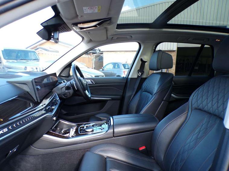 Attentiveness assist, Automatic tailgate operation, BMW ConnectedDrive online services, BMW Recovery system, BMW Teleservices, Condition based service, Cruise control with brake assist, eCall emergency call system, Enhanced bluetooth with wireless charging, Integrated owner's handbook, PAS, Speed limiter, Wi-Fi hotspot, Drive performance control with ECO PRO comfort + sport mode, Eight speed steptronic sport automatic transmission and gearshift paddles on the steering wheel, Personal eSim, Adaptive LED Headlights, Aluminium roof rails, Front and rear electric windows, High beam assistant, LED daytime running lights, Rain sensor, Rear side wing doors, Third brake light in rear spoiler, Variable intermittent rear wash/wipe, 12V - Power sockets with 2x centre console and 1x luggage compartment, 3 seat bench in 2nd row, Electric adjustable lumbar support with height and depth adjustment in backrest, Electric front seat adjustment with driver and front passenger memory function, Foldable rear centre armrest with 2 cupholders and storage compartment, Front and rear side armrest integrated into door trim, Headrests for all seats, Luggage compartment separating net, Single front passenger seat, Three spoke sport leather steering wheel, Velour floormats, Ambient light interior pack - X5, Driving assistant pack with radar based driver assistance system - X5, Expanded exterior mirror pack - X5/X5 M, 3 rear seatbelts, Active protection, Airbags - driver/front passenger, rear and side, first and second row seats head airbags, front passenger seat airbag deactivation + knee airbag, Anti-lock braking system (ABS), Automatic Stability Control (ASC), Brake energy regeneration, Cornering brake control (CBC), Crash sensor activating central locking release, hazard warning lights, fuel cut off, interior lighting + activation of safety battery terminal clamp, DSC - Dynamic Stability Control, Dynamic Traction Control - DTC, Electromechanical parking brake with automatic drive away release and auto hold function, Electronic brake force distribution, Hill start assistant, Mechanical child proof lock on rear doors, Tyre pressure monitoring system, Tyre pressure sensors, Ventilated front and rear disc brakes, Warning triangle and first aid kit, Alarm system, Closing system with central locking, Comfort access system, Locking wheel bolts,