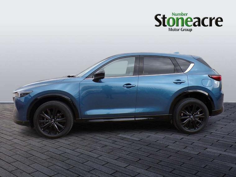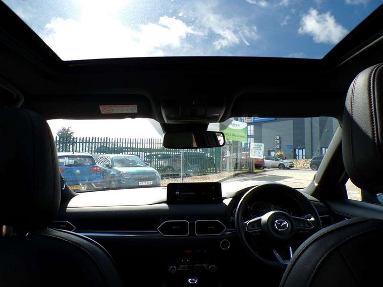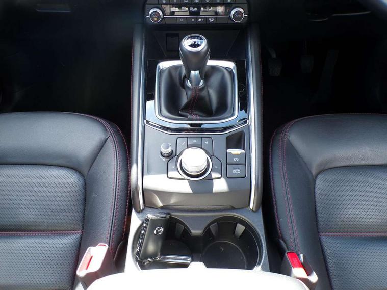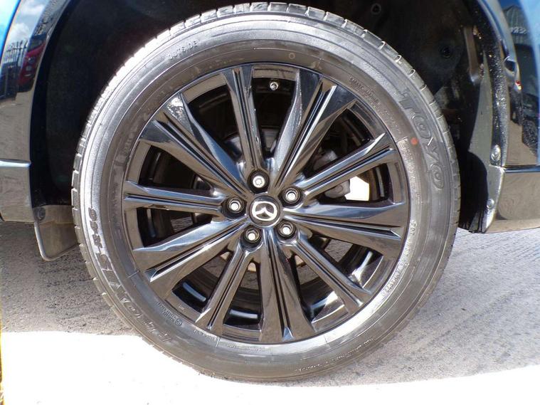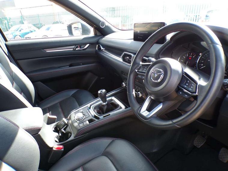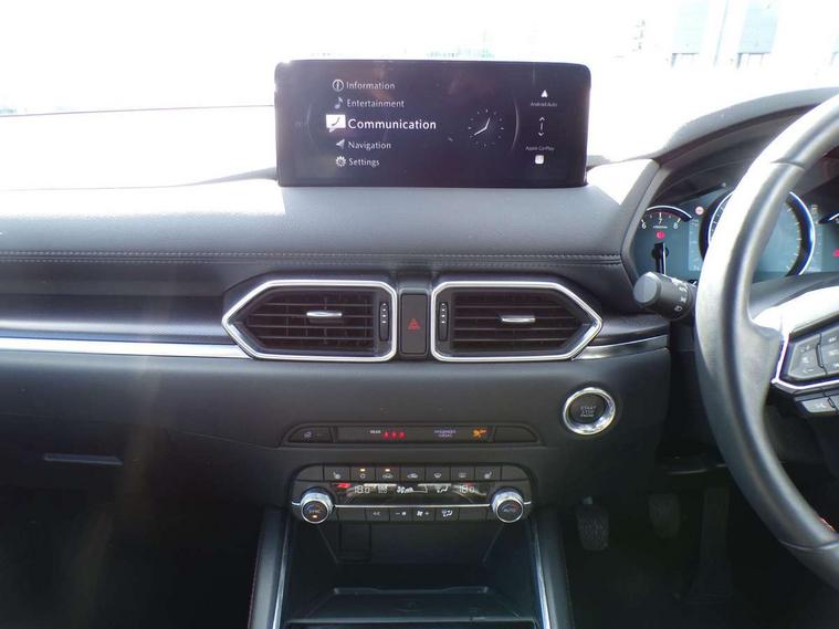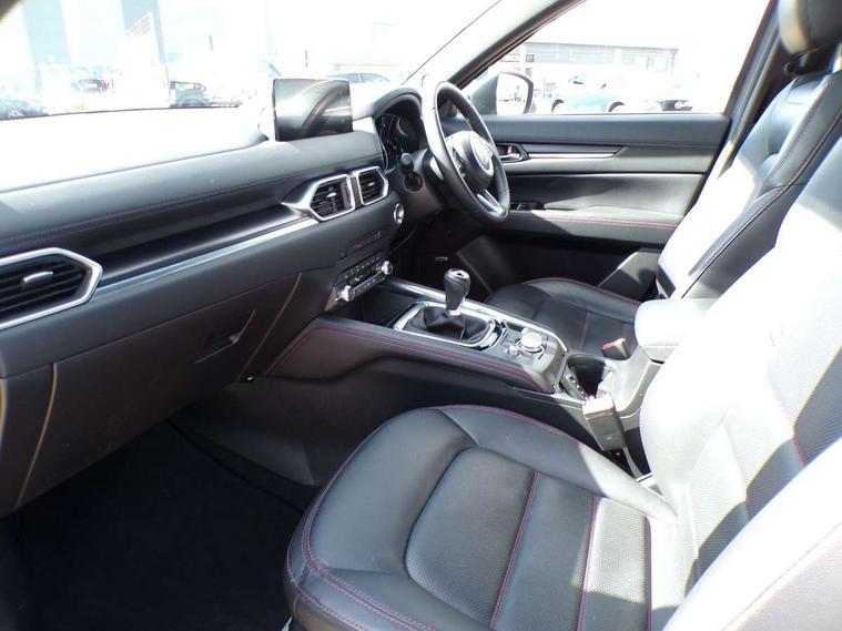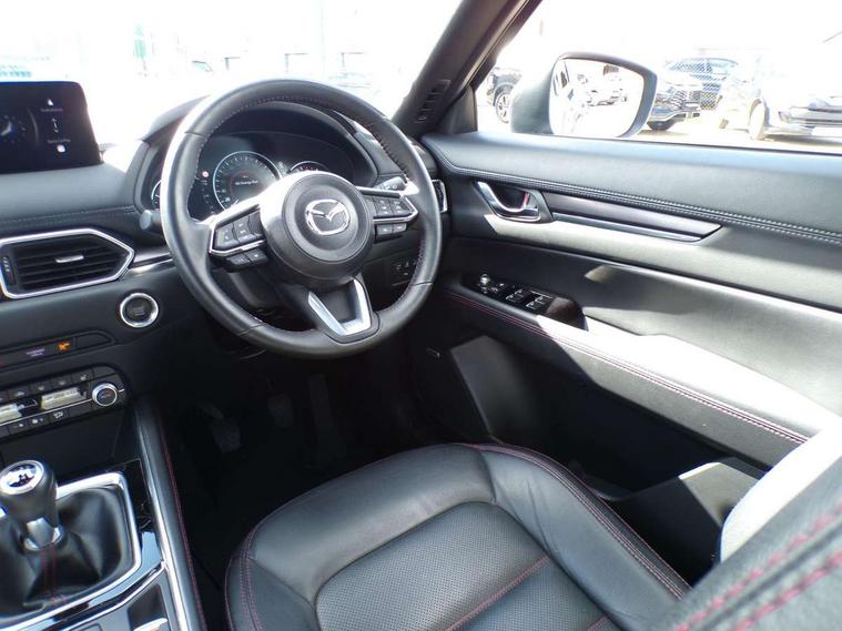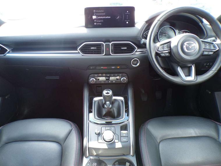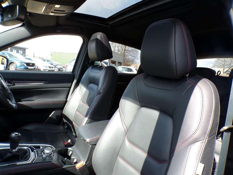 10.25" display with Mazda Connect infotainment, 7" colour TFT display, Advanced blind spot monitoring, Bluetooth connectivity with voice control, Collision prevention assist, Connected services, Cruising Traffic Support, Electric power steering, Emergency stop signalling system, Engine start/stop button, Forward collision warning, Front and rear parking sensors, Integrated navigation system, Intelligent speed assist, Lane departure warning system, Lane keep assist, Power liftgate, Qi wireless phone charging, Radar cruise control, Rear cross traffic alert, Reversing camera, Service indicator, Traffic sign recognition (TSR), Trip computer, Windscreen projected colour active driving display (HUD) with memory, Wireless apple car play/android Auto, Cylinder Deactivation, i-stop, AM/FM radio, Bluetooth audio streaming, Bose premium sound system with 10 speakers, DAB Digital radio, Multimedia Commander including separate volume dial, Steering wheel mounted audio controls, Adaptive front lighting system, Auto dimming rear view mirror, Automatic headlights, Black honeycomb door trim decoration panel, Black honeycomb interior decoration panel, Body colour roof spoiler, Coming/leaving home lighting function, Door mirror integrated indicators, Dual large chrome tailpipes, Dusk sensitive headlamps, Electric front/rear windows with one touch auto up/down, Front grille in gloss black finish, Front grille in gloss black with red accent + gloss black signature wing, Gloss black B and C pillars garnish, Gloss black door mirrors, Gloss black front and rear lower bumper mouldings, Gloss black tire arch and side mouldings, High beam assist, Intermittent rear wash/wipe, LED auto levelling, LED daytime running lights, LED front fog lights, LED Headlights, LED third brake light, Power folding and heated door mirrors, Power tilt/slide sunroof, Privacy glass (rear side windows only), Rain sensing front wipers, Rear side wing doors, Red front grille accent, Red stitching and accents on door trim, knee pad, console lid, steering wheel, shift boots, Scuff plates, Shark fin antenna, Signature LED rear combination lights, Variable intermittent front wash/wipe, Windscreen wiper de-icer, 12v electrical power outlet, 3 seat bench in 2nd row, 3 stage heated front seats, 40:20:40 Karakuri fold-flat seat system, 6 way electric adjustable passenger seat, 8 way electric driver seat with lumbar support + memory, Black roof lining, Cargo room flat floor board with waterproof undertray, Driver seat power slide, recline and height adjustment, Driver, Front passenger and two rear grab handles with coat hooks, Driver/passenger front seatback pockets, Driver/passenger sunvisors + illuminated vanity mirrors (drivers with ticket holder), Dual zone climate control, Folding centre armrest with 2 cup holders, Front and rear door pockets, Front centre storage with two cupholders, Front passenger seat power slide, recline and height adjustment, Gear shift indicator, Heated steering wheel, Humidity sensor, Illuminated glovebox, Interior dome light with integral spotlight, ISOFIX child seat anchorage points attached on outer rear seats, Karakuri tonneau cover, Leather upholstery, Leather wrapped steering wheel and gear knob, Luggage compartment LED lighting, Luggage compartment power outlet, Rear air vents, Rear headrests, Rear seat recline, Roof mounted sunglasses holder, Single front passenger seat, Three height adjustable head restraints, Tilt/height adjustable steering wheel, USB Connectivity (2x front Type-C, 2x rear Type-B), White interior LED illumination lighting, 3 point front seatbelts with pre-tensioners, 3 rear 3 point seatbelts, ABS, Advanced Smart City Brake Support - SCBS, Child locks on rear doors, Driver and front passenger side airbags, DSTC-Dynamic Stability and Traction Control, Dual front airbags, Electronic brake force distribution, Electronic parking brake with auto hold, ESP, Front and rear curtain airbags, Front passenger airbag deactivation, G-Vectoring control, Hill hold assist, Seatbelt reminder front and rear, Single stage passenger airbags, Smart brake support with forward obstruction warning, Tyre pressure monitoring system, Automatic door locking when moving off, Deadlock, Immobiliser, Power door locks, Remote central locking, Smart keyless entry, Thatcham Cat.1 alarm, 19" Black alloy wheels, Tyre repair kit,