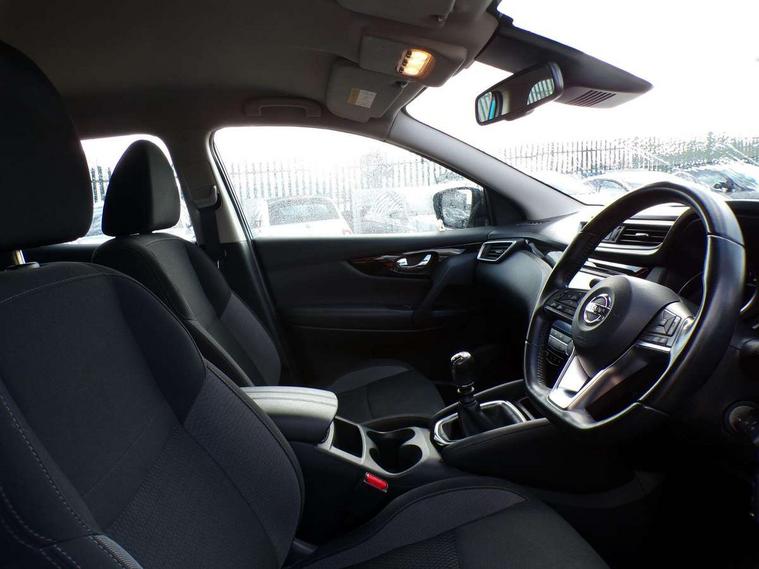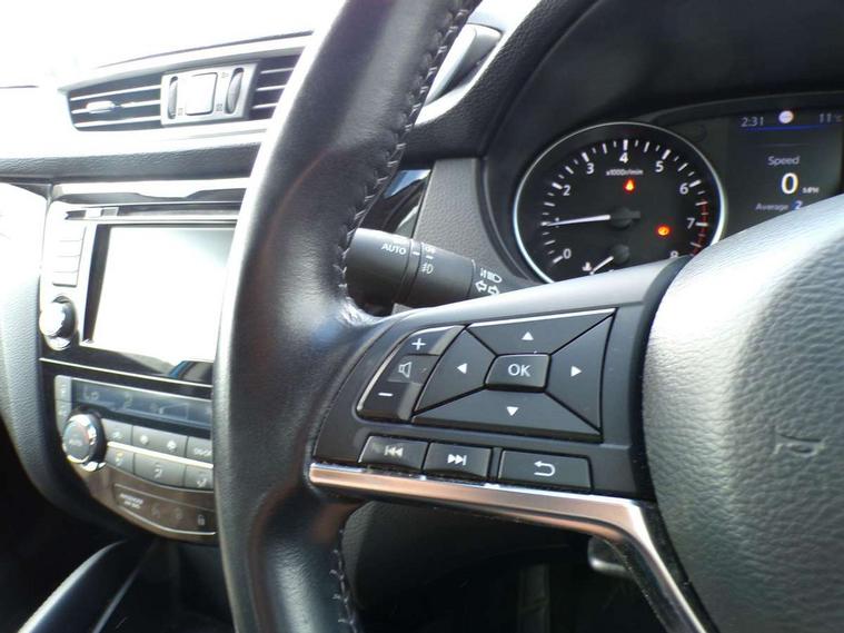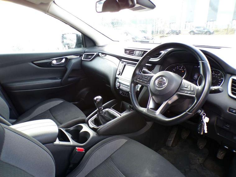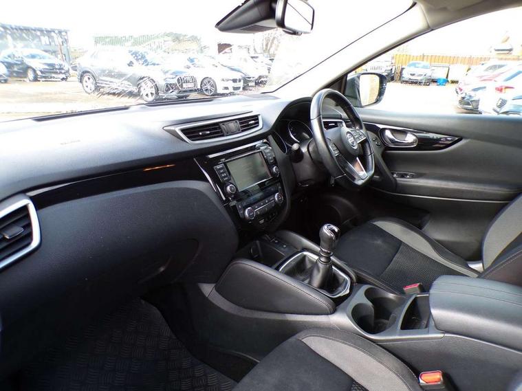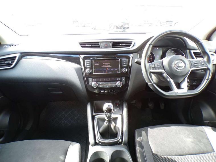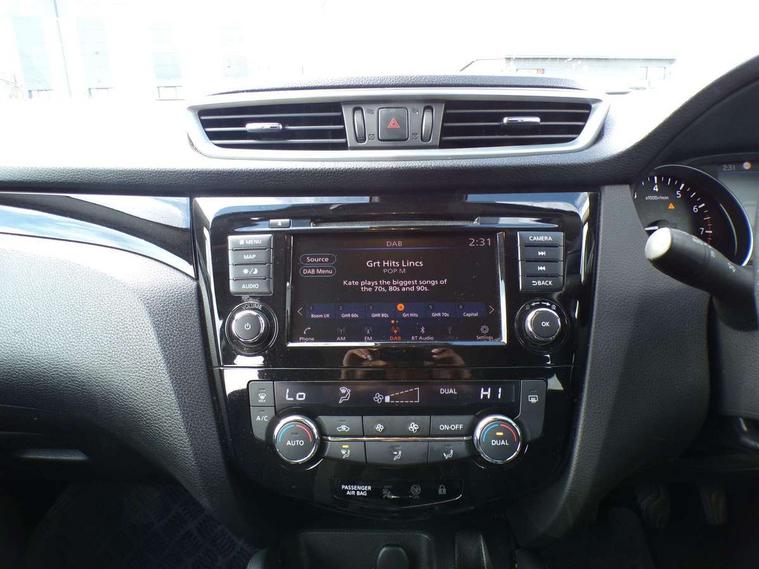 Advanced drive assist display 5'' TFT coloured screen, Android Auto, Apple CarPlay preparation, Bluetooth connectivity, Cruise control + speed limiter, Electric speed sensitive power steering, Front parking sensors, Lane departure warning system, Nissan connect evo 7" touchscreen navigation and entertainment system, Normal or sport selectable steering, Outside temperature sensor, Rear parking sensors, Rear view camera, Service interval indicator, Smartphone integration, Stop/start system, Tomtom connected services, Traffic sign recognition, Trip computer, Voice control system, Nissan chassis control (intelligent ride control, intelligent trace control, intelligent engine brake), 6 speakers, AM/FM radio, CD audio system, Aux-in socket, DAB Digital radio, Steering wheel mounted audio controls, USB port, Anti dazzle rear view mirror, Auto wipers, Body colour bumpers, Body coloured door handles, Body coloured door mirrors, Chrome window surround, Daytime running lights dip function when turn signal applied, Electric folding door mirrors, Electric front and rear windows with one touch illuminated window controls, Electric front/rear windows, Electrically adjustable door mirrors, Front fog lights, Halogen headlights, Heated door mirrors, High beam assist, Intelligent auto headlights, LED indicators in door mirrors, Rear roof spoiler, Rear wiper with reverse link, Shark fin antenna, Signature LED daytime running lights, Underbody vortex generators, 2 X front 12v power sockets, 3 height adjustable rear headrests, 60/40 split folding rear seat, Ambient lighting in centre console, Boot lighting, Centre console storage box/armrest, Chrome interior door handles, Cloth upholstery, Driver's seat manual height adjust, Dual zone climate control, Front and rear door pockets with bottle holders, Front and rear seat belt pre-tensioners with load limiters, Height adjustable front headrests, ISOFIX on outer rear seats, Leather D shaped steering wheel, Leather gear lever, Leather knee pad, Manual height adjustable front passenger seat, Manual lumbar support on driver seat, Parcel shelf stow function under luggage board, Pollen filter, Rear armrest with 2 cupholders, Tilt/telescopic adjustable steering wheel, 6 airbags - Driver, front passenger, curtain and side airbags, ABS, ESP, EBD and brake assist, Auto hold function, Child locks on rear doors, Electronic parking brake, Front and rear seat belt warning, Front passenger airbag deactivation, Height adjustable front seatbelts, Hill start assist, Intelligent emergency braking with pedestrian recognition, Three 3 point rear seatbelts, Tyre pressure monitoring system, Anti-theft immobiliser, Remote central locking, Thatcham Cat.1 alarm, Piano black dash trim, 17" Alloy wheels, Tyre puncture repair kit,
