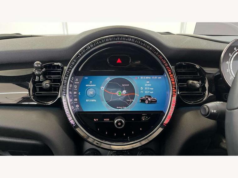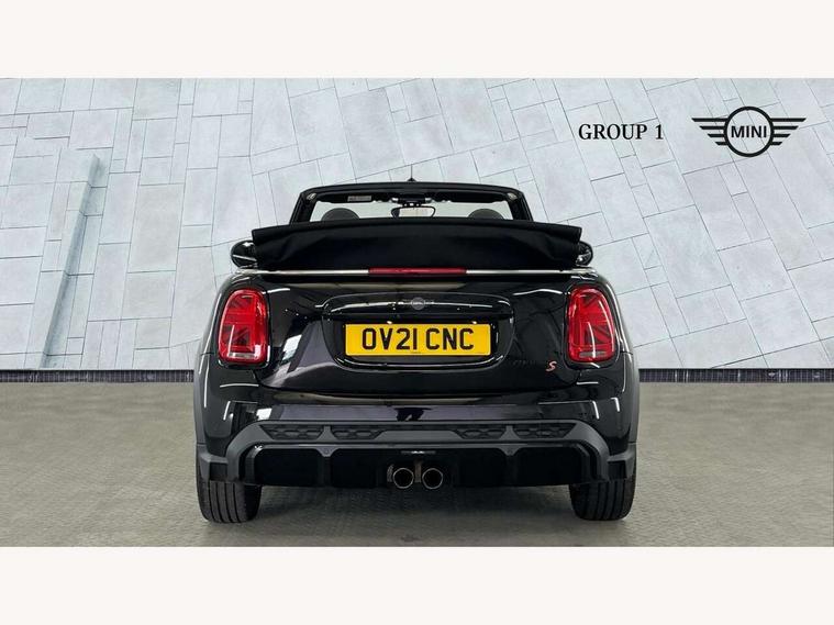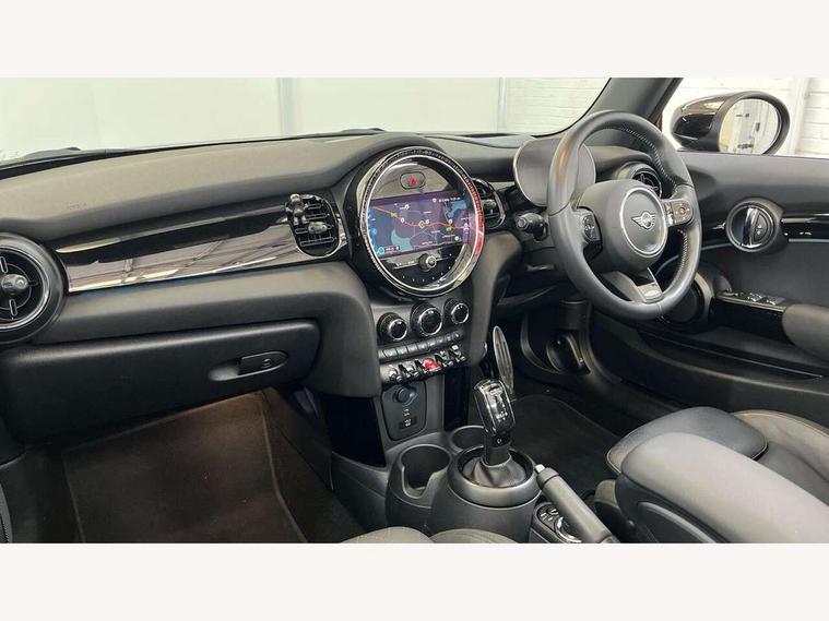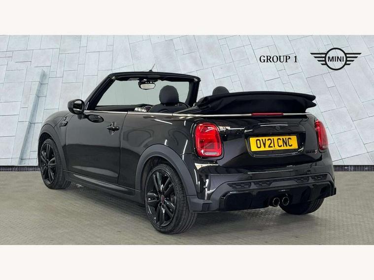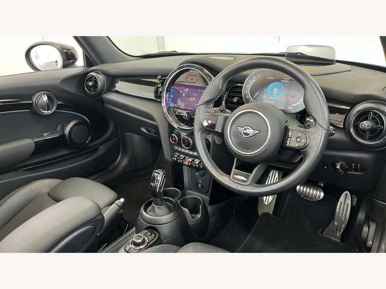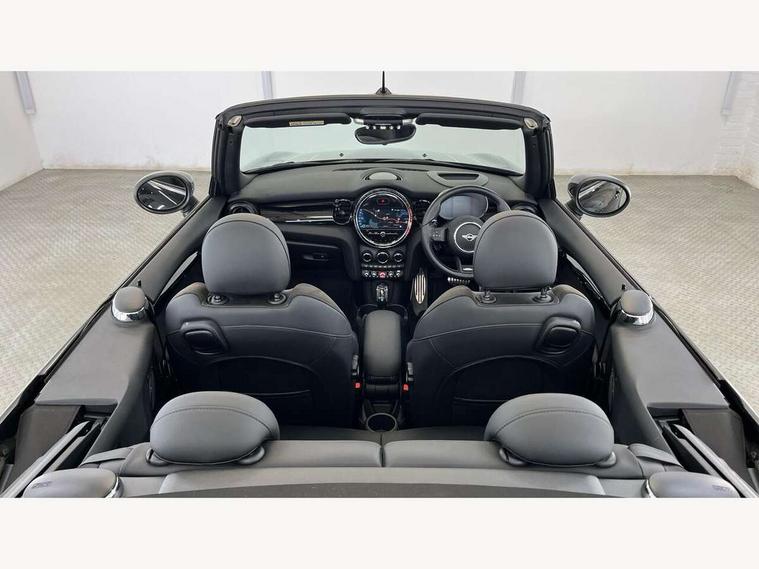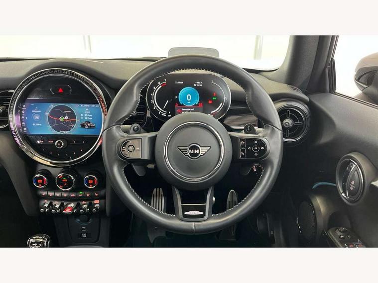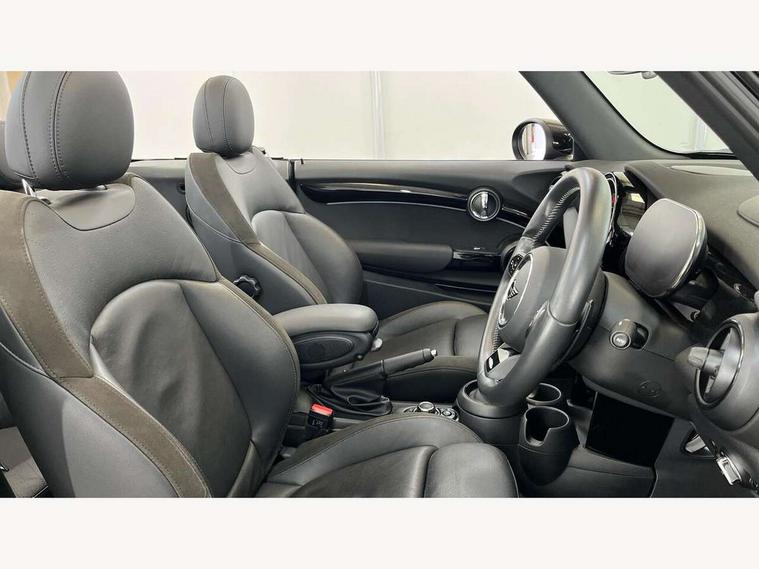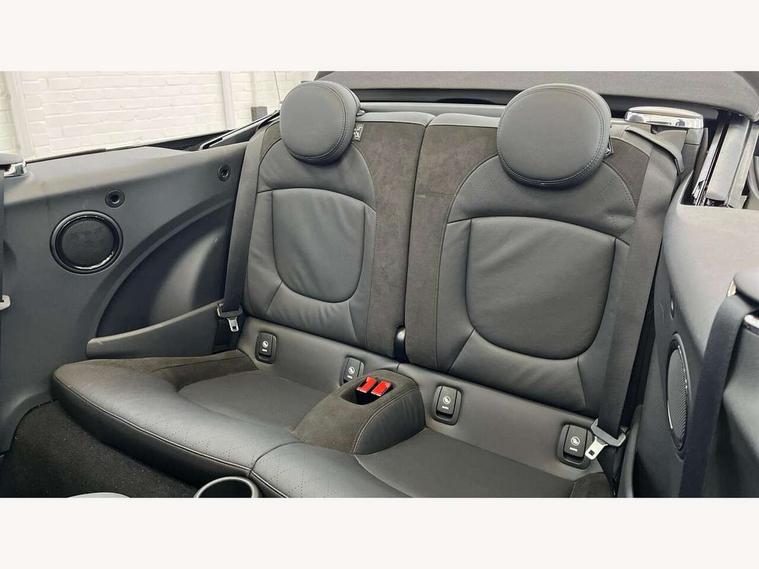 Automatic start/stop function with brake energy recuperation, Compatible mobile phone bluetooth with audio streaming, Digital instrument cluster, Electro-mechanical speed dependant steering assistance, MINI Driving Modes - centre toggle switch to control driving setting (sport, mid and green), Mini E-call, MINI TeleServices, On board computer, Rear park distance control, Service interval indicator, Adaptive suspension, Double Vanos system, Fully variable valve control, High precision injection, Performance Control, Steptronic sport transmission with double clutch and steering wheel paddles, 8.8" touchscreen with LED ring, FM tuner and DAB digital radio, Automatic headlight activation switch, Bonnet scoop, Chrome border honeycomb structure radiator grille with S badge, Dynamic brake lights, Electric windows, Fully electric black softtop with integrated sunroof functionality, Heated rear window, Heated windscreen washer jets, John Cooper Works - aerodynamic kit (front and rear apron, spoiler), front and rear sport bumpers and part-painted side sills with door sill finishers, LED headlight with closed ring and daytime driving lights, Metal door sill strips with Cooper S imprint, Model logo Cooper S on right of tailgate, Piano black exterior, Piano black fuel filler cap, Rain sensor window wipers, Rear fog lights, Rear LED lights with union jack design, Side scuttle panel with integrated indicator, Sun/heat protection glass, Two central exhaust tailpipes with chrome finisher, White indicator lenses, 12V Accessory socket in centre console, 4 lashing eyes in luggage compartment, 50/50 split folding rear seats, Chrome interior highlights, Colour line - Carbon black, Cupholders, Easy Load boot handles, Front and rear isofix with front passenger airbag deactivation, Front seatback storage pockets, Glove compartment, Height and length steering column adjustment, Interior lighting with 12 basic colours selectable via toggle switch in roof, John Cooper Works walk nappa leather steering wheel with grey seam and John Cooper Works badge on piano black lower steering wheel spoke, Leather gearshift lever and handbrake gaiters, Leatherette integrated headrest, adjustable thigh support with john cooper works logo, LED reading lights, vanity mirror lights, front foot well light and spotlight on front seats, Manual air conditioning, Mechanical seat adjustment, driver seat height adjust, forward/back and front seats backrest, Multifunction steering wheel, Rear head restraints, Storage compartments in doors, Sunvisors with vanity mirrors, Velour floor mats, Convertible pack with comfort access - Mini Convertible, 3 point seatbelts on all four seats, 6 Airbags - front, side and seat belt tensioners, Active rollover protection, Anti-lock braking system (ABS), DSC - Dynamic Stability Control, Front and rear disc brakes, Hill start assist, Two tone horn, Tyre pressure monitoring system, Alarm system with tilt sensor, monitoring doors, bonnet interior and tailgate, Electronic vehicle immobiliser, Keyless Go, Piano black interior trim, Tool kit,