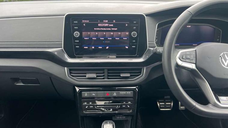 'Lights On' Reminder warning buzzer, 10.25" Digital cockpit pro, Adaptive cruise control including front assist, forward collision warning, autonomous emergency braking, speed limiter, Advanced driver attention and drowsiness monitor, Blind spot monitoring, Car information display, Driver profile selection including ECO function, Dynamic road sign display, E-Sim card for online connectivity, eCall emergency call system, Front and rear parking sensors, Low washer fluid warning light, Multifunction computer with visual gear change recommendation for fuel consumption, Multifunction front facing camera for distance control, Operating permit alteration, Power assisted steering, Preparation for navigation system with media and internet package, Preparation for We connect and We connect plus, Semi-automated driving assistance, travel assist including lane keeping system Lane Assist and emergency assisst, Speedo, rev counter, electronic odometer, trip, service interval display, exterior temperature and fuel gauge, Warning sound and light for doors and tailgate open, Warning sound and light for front seatbelts unfastened, Wireless Car net app connect with Apple CarPlay, combined functionality of Apple CarPlay/Android Auto and MirrorLink, Misfuel prevention device, Start-stop system with battery regeneration (recuperation - energy recovery during braking), 2 USB C ports in front, 2 USB charging sockets on the centre console in the rear charging capacity upto 45W, Diversity antenna for FM reception, Music playback - MP3, WMA and AAC files, Radio, Automatic dimming interior rear view mirror, Automatic hazard lights activation under emergency braking, Automatic headlight control with LED separate daytime running light and coming home and leaving home feature, Black roof rails, Body colour door handles, Body colour door mirrors, Body coloured bumpers, Dynamic headlight range control with self adjusting whilst driving, Electric folding door mirror, adjustable, heated with front passenger exterior mirror lowering function, Exterior mirrors convex on the left and aspherical on the right, Front and rear electric windows, Front door sill protectors with R-Line logo, Galvanised body, Heat insulating and laminated safety glass windshield, Heat insulating darkened glass in side and rear windows, High Beam Assist, automatic sensing for switching between dipped and main beam, LED rear combination lights, LED third brake light, Lower door sills and door pillars in black, Rain sensor, Rear fog light on one side, reversing light on both sides, Rear side wing doors, Rear tinted glass 65% approx light absorbing from B pillar backwards, Rear window aerial, Rear window wiper with intermittent control, Reflectors in all doors, Scuff plates, Tailgate with integrated roof spoiler, 12V Accessory socket in centre console, 2 Front and rear reading lights incorporating LED technology, 3 rear head restraints, 3 seat bench in 2nd row, 60/40 split folding rear seat backrest, Air care climatronic 2 zone air conditioning system, Ambient lighting, Brushed stainless steel pedals, Chrome plated radiator grille inserts, air vent surrounds and light switch surrounds, Cloth upholstery, Comfort front sport seats, Door and side trim panel, Drawer under drivers seat, Driver and front passenger sunvisor with vanity mirror, Dust and pollen filter, Front + rear carpet mats, Front centre armrest with storage compartment, Front footwell illumination, Front seat back storage pockets, Glove compartment door with light, Heated front seats, Heating and fresh air system with 4 stage blower, Height/reach adjust steering wheel, Instrument lighting white adjustable panel illumination, Interior light with switch off delay and dimmer, Isofix anchors for child seats on outer rear seats and front passenger seats, Leather gearshift handle, Leather wrapped multifunction steering wheel, Luggage compartment floor, Luggage compartment lighting, Manual front seats with height adjustment, Padded dashboard, Removable luggage compartment cover, Single front passenger seat, Storage compartment in drivers and front passengers door, Titanium black roof lining, Unsplit sliding rear seat bench, 3 point outer rear seat belts with ECE label, 3 Point seatbelt for centre rear seat, Anti-lock Braking System (ABS) with Hydraulic Brake Assist (HBA), Automatic post collision braking system, Disc brakes in front, Disc brakes in rear, Driver and front passenger safety-optimised head restraints, Drivers and Front Passengers airbags with front passengers airbag deactivation switch, ESC with EDL and ASR (traction control), Extended and predictive pedestrian/cyclist protection, Front and rear passenger curtain airbag system including front side airbags, Height adjustable front 3 point seatbelts + pretensioners, Hill start assist, Pre crash preventive occupant protection, Proactive passenger protection system in combination with front assist, Rear door child safety locks, Rigid safety cell with front and rear crumple zones, Single tone horn, Tyre pressure loss indicator, Volkswagen roadside assistance, Alarm with interior protection, Anti theft alarm system, Electronic engine immobiliser, Remote tailgate unlocking using key fob, Titanium Black Decorative inserts - R Line, Low rolling resistance tyres,