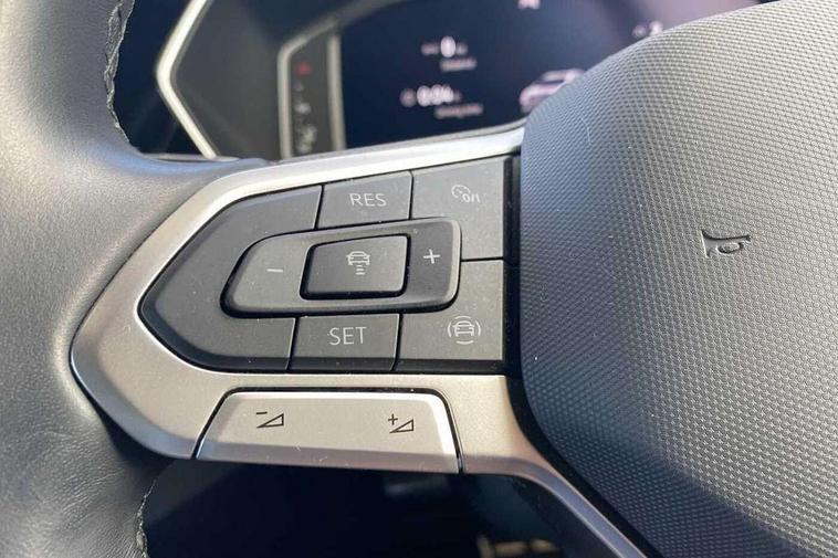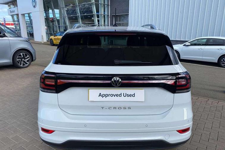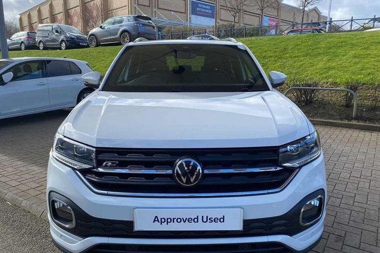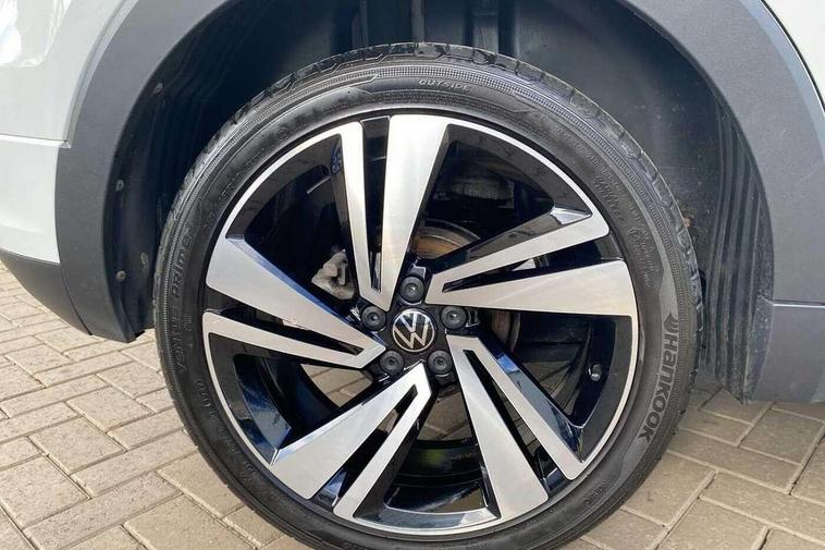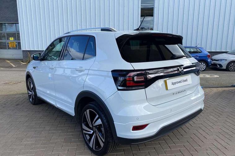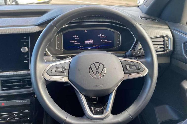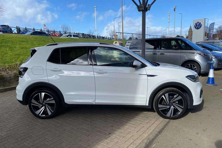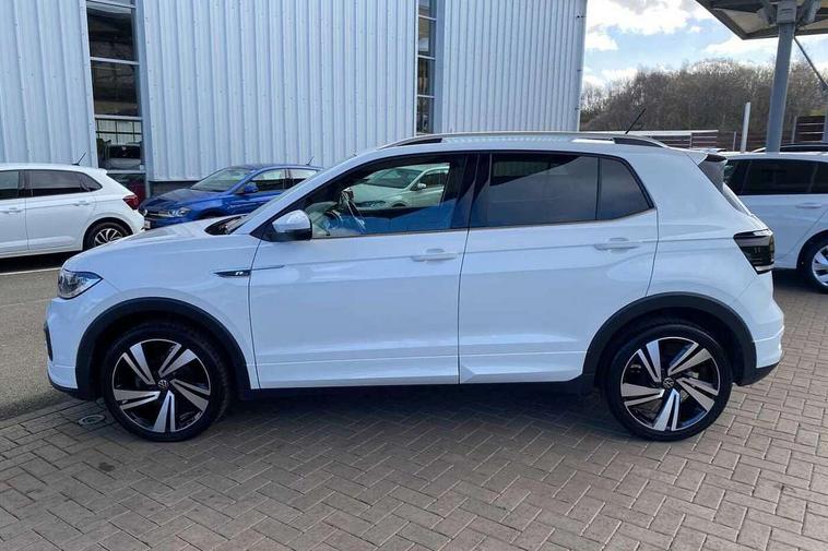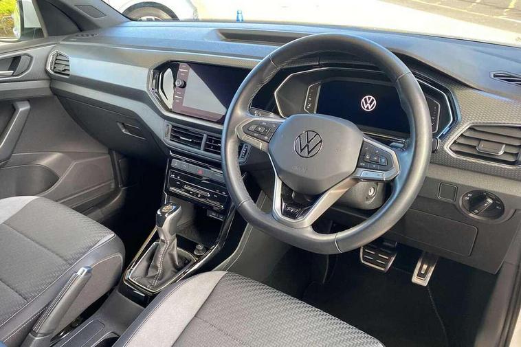 'Lights On' Reminder warning buzzer, 2D/3D map view, Active info display - 10.25" High resolution TFT dash display screen, Adaptive cruise control including front assist, forward collision warning, autonomous emergency braking, speed limiter, Blind spot monitoring, Bluetooth telephone and audio connection for compatible devices, Car information display, Driver alert system, eCall emergency call system, Lane assist, Low washer fluid warning light, Multifunction computer with visual gear change recommendation for fuel consumption, Operating permit alteration, Power assisted speed sensitive steering, Speed limit display, Speedo, rev counter, electronic odometer, trip, service interval display, exterior temperature and fuel gauge, Stop/start system, Tailgate, Warning sound and light for doors and tailgate open, Warning sound and light for front seatbelts unfastened, We connect plus preparation, Wireless Car net app connect with Apple CarPlay, combined functionality of Apple CarPlay/Android Auto and MirrorLink, Battery regeneration during braking, Misfuel prevention device, 2x USB connection with USB charging sockets and in rear centre console, DAB Digital radio receiver, Diversity antenna for FM reception, Multi device interface (MDI) with USB connection, Music playback - MP3, WMA and AAC files, Premium USB cable for Apple or Android smartphone compatibility, Simultaneous pairing of 2 compatible mobile devices, SMS Functionality, Three route options - Fast, Short, Eco, Title and cover art display, Automatic hazard lights activation under emergency braking, Body colour door handles, Body colour door mirrors with integrated indicators, Body colour rear roof spoiler, Body coloured bumpers, Dusk sensor + automatic driving lights, Electrically foldable, adjustable and heated door mirrors with reverse activated kerb view adjustment on passenger's side, Front and rear electric windows, Front fog lights with static cornering function, Galvanised body, Heated rear window, LED third brake light, Lower door sills and door pillars in black, Radiator grille with chrome trim and chrome bezel front fog lamp, Rear fog light on one side, reversing light on both sides, Rear lights incorporating LED technology, Rear side wing doors, Rear tinted glass 65% approx light absorbing from B pillar backwards, Rear window aerial, Rear windscreen washer and wiper with interval delay, Reflectors in all doors, Silver roof rails, Stainless steel door sill protection, Tailgate with integrated roof spoiler, Unique R Line badging, Windscreen wipers/ intermittent wipe + 4 position delay, 12V Accessory socket in centre console, 2 Front and rear reading lights incorporating LED technology, 2 Zone electronic climate control with automatic air recirculation, 3 rear head restraints and 3 rear three point seat belts with ECE label, 3 seat bench in 2nd row, 60/40 split folding rear seat backrest, Ambient lighting and sourround lighting, Black headlining, Branded points of interest, Brushed stainless steel pedals, Carbon flag cloth upholstery, Drawer under drivers seat, Driver and front passenger sunvisor with vanity mirror, Driver's sunvisor with ticket holder, Dust and pollen filter, Front and rear carpet mats with contrast stitching, Front centre armrest with storage compartment, Front footwell illumination, Front seat back storage pockets, Front seat R Line logo with rear seat backrest, Front sports seat with height and lumbar adjustment, Glovebox, Heating and fresh air system with 4 stage blower, Height/reach adjust steering wheel, Instrument lighting white adjustable panel illumination, Interior light with delay, Isofix child seat preparation for 2 rear child seats, Leather trimmed three spoke multifunction steering wheel with contrast stitching and aluminium inserts with R Line logo, Luggage compartment cover, Luggage compartment lighting, Moveable and foldable Rear bench seat, Scuff plates in door apertures, Steering wheel paddle shift, Storage compartment in drivers and front passengers door, R Line styling pack - T-cross, 3-point seat belts in front with electric tensioner + height adjustment, Anti-lock Braking System (ABS) with Hydraulic Brake Assist (HBA), Automatic post collision braking system, Driver and front passenger safety-optimised head restraints, Drivers and Front Passengers airbags with front passengers airbag deactivation switch, ESC with EDL, ASR, EDTC and trailer stabilisation function, Front and rear curtain airbags, Front seat side impact airbags, Hill start assist, Pre crash preventive occupant protection, Proactive passenger protection system in combination with front assist, Rear door child safety locks, Rigid safety cell with front and rear crumple zones, Single torn horn, Tyre pressure loss indicator, Volkswagen roadside assistance, Alarm with interior protection and deactivation via infotainment system, Child security locks in rear doors, Electronic engine immobiliser, Remote tailgate unlocking using key fob, Race decorative inserts in dash and doors, 18" Nevada black alloy wheels, Breakdown kit,