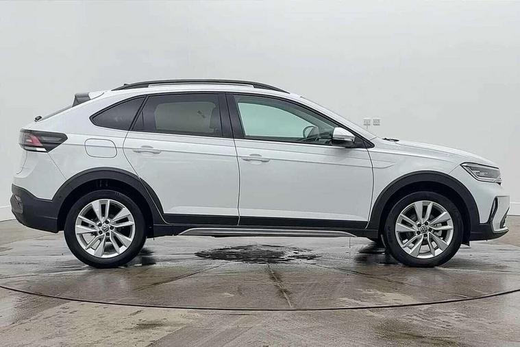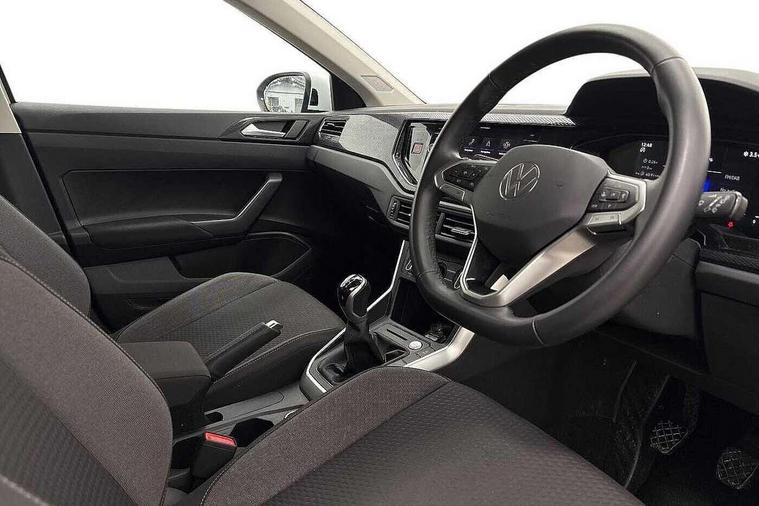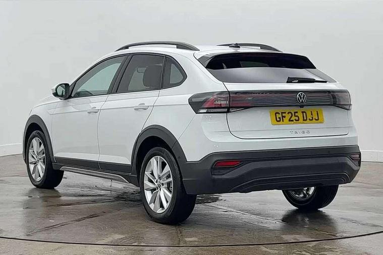 Advanced driver attention and drowsiness monitor, Dynamic road sign display, e-Call (emergency call), Power Steering, Predictive adaptive cruise control, Rear view camera, Travel assist including emergency assist, Washer fluid level indicator, Wireless Charging including Bluetooth, Start-stop system with battery regeneration (recuperation - energy recovery during braking), WeConnect plus, Ambient lighting with logo projection, Aspherical driver's exterior mirror, Body coloured bumpers, Body coloured exterior mirror housings and door handles, Electric windows, External USB type C socket and charging sockets, Heat insulating glass windscreen, LED rear combination lamp, LED third brake light, Left convex exterior mirror, Power folding adjustable/heated exterior mirrors and front passenger exterior mirror lowering function, Rear fog light on one side, reversing light on both sides, Rear side wing doors, Rear wash/wipe with intermittent wipe setting, Side windows in heat-insulating glass, from B-pillar and rear window dark tinted, 'Slash/ Austin' Cloth upholstery, 12V socket in centre console, 2 front reading lights, 3 rear head restraints, 3 seat bench in 2nd row, Black carpets, Ceramique headliner, Child seat anchor for child seat system i-Size, 2x top tether and child seat anchor in front on front passenger side, Door and side trim panels in titan black, Driver and front passenger seat height adjustment, Front centre armrest, Handbrake lever handle in leather, Height and reach adjustable steering wheel, Leather trimmed gear knob, Leather wrapped multifunction steering wheel, Luggage compartment floor, Luggage compartment light, Lumbar support for driver's and front passengers seat, Seat covers in titanium black, Single front passenger seat, Split folding backrest with centre armrest and unsplit rear seat bench, Storage compartment under front seats, Sun visors with illuminated vanity mirrors, Titanium black instrument panel, Chrome Package - Taigo, Drivers assistance package - Taigo, Light and sight pack - Taigo, 2 x 3-point seatbelts/outer rear seats with ECE label, 3-point seat belts in front with pretensioner and height adjustment, 3-point seatbelt for centre rear seat, Driver and front passenger airbag with front passenger airbag deactivation, Driver and front passenger safety-optimised head restraints, Electronic stability control, Extended and predictive pedestrian/ cyclist protection, Front and rear disc brakes, Front curtain and side airbags with center airbag, Hill start assist, Manual rear child locks, Single tone horn, Tyre pressure loss indicator, Anti-theft alarm system with interior monitoring, backup horn, and towing protection, Keyless locking and starting system keyless access with safelock, Black (slush) Dashboard, Lava stone black gloss/matt decorative inserts in dash and front door panels, Low rolling resistance tyres,