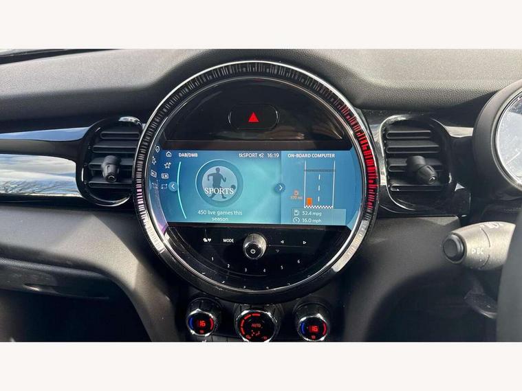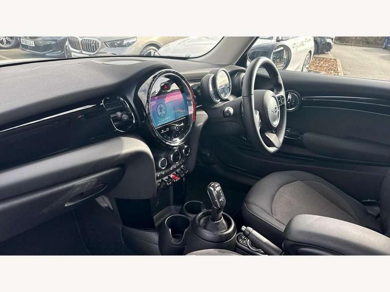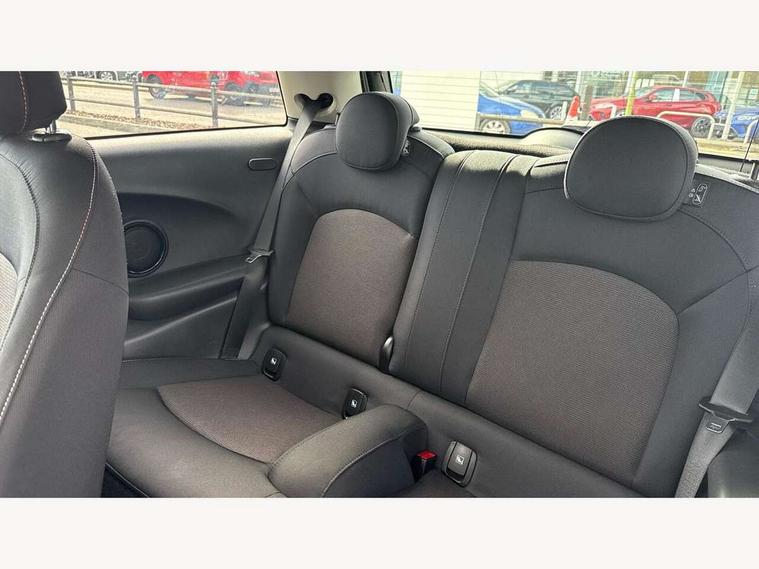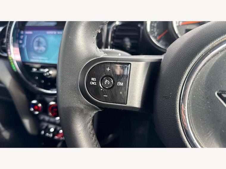 Apple CarPlay, Automatic start/stop function with brake energy recuperation, Compatible mobile phone bluetooth with audio streaming, Cruise control with brake assist, Electro-mechanical speed dependant steering assistance, Flexible car sharing preparation, Instrument cluster, Mini E-call, MINI TeleServices, On board computer, Service interval indicator, Double Vanos system, Fully variable valve control, High precision injection, Performance Control, Steptronic transmission with double clutch, 8.8" touchscreen with LED ring, FM tuner and DAB digital radio, 3rd brake light, Automatic headlight activation switch, Body colour fuel filler cap, Chrome border high gloss black slats radiator grille, Dynamic brake lights, Electric front windows, Exhaust tailpipe on left with chrome finisher, Heated rear window, Heated windscreen washer jets, LED headlight with closed ring and daytime driving lights, Metal door sill strips with MINI imprint, Model logo Cooper on right of tailgate, Rain sensor window wipers, Rear fog lights, Rear LED lights with union jack design, Rear window wiper, Side scuttle panel with integrated indicator, Sun/heat protection glass, White indicator lenses, 12V Accessory socket in centre console, 2 seat bench in 2nd row, 4 lashing eyes in luggage compartment, 60/40 split folding rear seat, Ambient lighting, Carbon black colour line - Knee roll and door armrest, Chrome interior highlights, Cupholders, Front and rear head restraints, Front and rear isofix with front passenger airbag deactivation, Front floor mats in velour, Glove compartment, Height and length steering column adjustment, Interior lighting with 12 different colours across the dashboard, underneath door bezel with illuminated laser-engraved design on central display, Leatherette gearshift lever and handbrake gaiters, LED reading lights, vanity mirror lights, front foot well light and spotlight on front seats, Manual air conditioning, Mechanical seat adjustment - forward/back & backrest for front seats and driver seat height adjust, Multifunction steering wheel, Passenger seat height adjuster, Satellite grey headlining including grab handles and clothes hooks, Single front passenger seat, Sport leather steering wheel with speed limiter and audio/communication controls, Storage compartments in doors, Sunvisors with vanity mirrors, 3 point seatbelts on all four seats, 6 Airbags - front, side, head and seat belt tensioners, Anti-lock braking system (ABS), DSC - Dynamic Stability Control, Front and rear disc brakes, Single tone fanfare horn, Tyre pressure monitoring system, Alarm system with tilt sensor, monitoring doors, bonnet interior and tailgate, Electronic vehicle immobiliser, Start/stop toggle with keyless go, Piano black interior trim, Tool kit, Tyre repair kit,