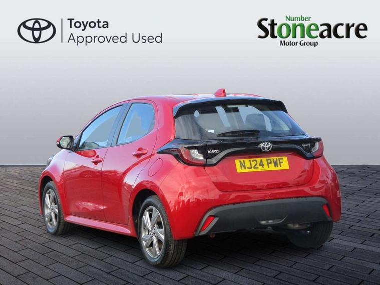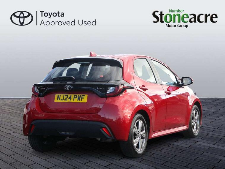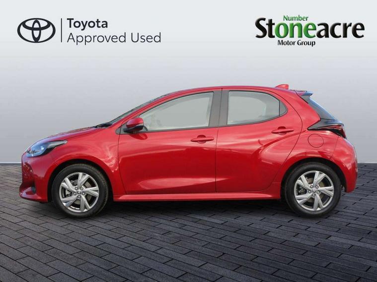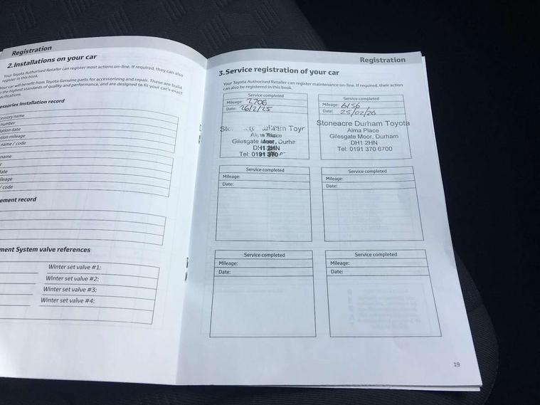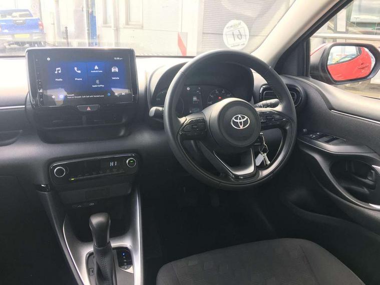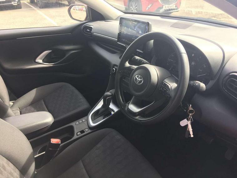 4.2" coloured TFT multi information display with analogue speedometer, Adaptive cruise control, Adjustable speed limit with speed warning, Bluetooth connectivity, E-call, Electric power steering, Hybrid energy display, Multi information display switches on steering wheel, Reversing camera, Smartphone integration with Apple CarPlay and Android auto, Smartphone integration with Apple CarPlay/Android Auto, Tailgate, Voice recognition, Vehicle Stability Control (VSC), 4 speakers, 9" Multimedia touch display, Toyota Touch 3 system with DAB radio, USB connection, Acoustic windscreen glass, Auto windscreen wipers, Automatic headlights, Body coloured door mirrors, Bulb indicators, Chequered front grille, Daytime running lights, Electric adjustable heated door mirrors, Follow me home headlights, Front auto power windows with anti jam protection, Front halogen fog lights, Halogen projector headlights, LED High mounted stop lamp, Manual headlight levelling, Rain sensor, Rear auto power windows with anti jam protection, Rear side wing doors, Rear spoiler, Rear wiper, Shark fin antenna, Turning signal integrated indicators in door mirrors, Variable front intermittent wipers, 3 adjustable rear headrests, 3 seat bench in 2nd row, 3 spoke leather steering wheel, 60/40 split folding rear seat, Active headrests, Adjustable boot height, Auto air conditioning, Coat hooks in rear grab handles, Cup holders (2 front & door), Data Communication Module (DCM) connected services, Fabric upholstery, Front armrest, Glovebox, Grey roof lining, Height adjustable driver's seat, Isofix seat fixing, Leather gearshift, Pollen filter, Shopping bag hooks, Single front passenger seat, Tilt/telescopic steering column, 3 point seatbelts on all rear seats, ABS+EBD+Brake assist, Electronic parking brake, Emergency brake light system (EBS), Front passenger airbag on/off switch, Front seatbelt reminder, Hill start assist control (HAC), Rear child proof door locks, Rear seat belt reminder, Supplemental Restraint System (SRS) 8 airbags: Driver & passenger's airbags, dual side curtain airbags, side impact airbags, front centre airbag, Toyota Safety Sense 3 with over the air updates, Tyre pressure warning system, 2x Master key, Alarm/immobiliser, Remote powered central double locking doors, Soft touch instrument panel, Space saver spare wheel,