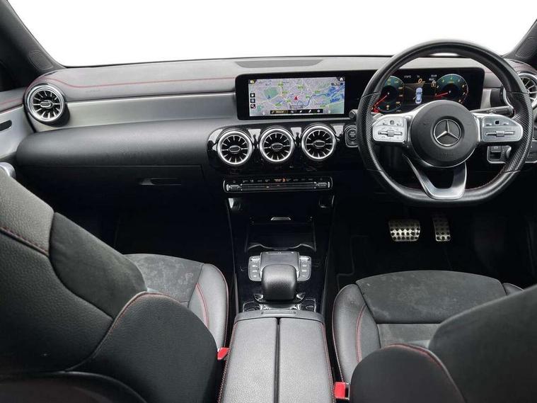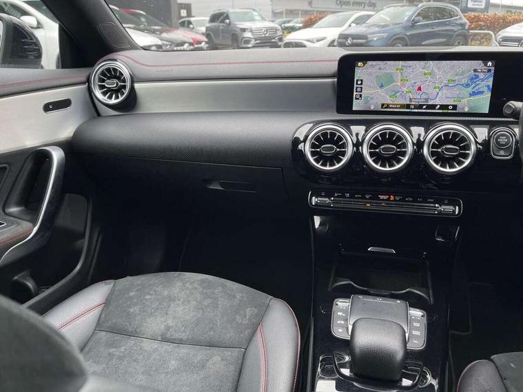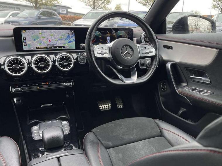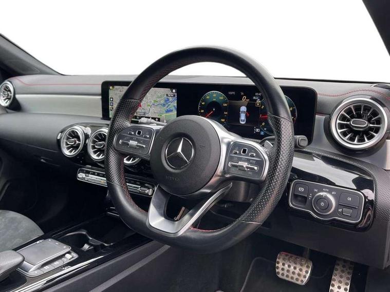 10.25 inch Instrument display with digital cockpit, 10.25 inch touchscreen central media display, Active lane keeping assist, Attention assist - Monitors steering behaviour and long journey fatigue, Bluetooth connection, Car wash mode, Cruise control with limiter, Direct steer system with speed sensitive power steering, DYNAMIC SELECT with a choice of driving modes (ECO, Comfort, Sport and Individual), ECO start/stop function, Fluid level warning indicator for fuel, oil, coolant and washer fluid, Hard-disk navigation, Hey Mercedes Voice activation, Lamp failure indicator, Mercedes me connect including emergency call system, accident recovery, breakdown and maintenance management, Mercedes me remote services, Outside temperature gauge, Owners manual and service booklet in English, Pre-installation of private car share, Preinstallation for Mercedes Benz link, Radio aerial integrated into front and rear windshields, Service indicator (ASSYST), Smartphone integration with Apple CarPlay and Android auto, Speed limit assist, Trip computer in multifunction display with current consumption indicator, Lowered comfort suspension, Rear axle multi-link, DAB digital radio tuner, MBUX multimedia system, Mid-range sound system, USB (type C) ports (2) in stowage compartment and 1 in front of centre console, Adaptive brake lights, AMG body styling with AMG front apron and rear apron and visible exhaust tailpipe in chrome trim elements, AMG bodystyling side skirts, Body colour bumpers, Body colour door handles, Chrome beltline strips, Diamond radiator grille pins in chrome, Electric windows, Electrically adjustable and heated door mirrors with integrated LED indicators, Exhaust system with 2 Visible tailpipe trim elements and rear apron with trim in chrome, Headlamp assist automatic headlamp activation, Heated glass rear windscreen + timer control, High level LED third brake light, Interior mirror with black reading lamps and frameless, LED high performance headlamps with integrated LED daytime running lights, LED tail lamp, Privacy glass with dark tinting on rear side windows and rear window, Rain sensing windscreen wipers with two sensitivity settings, Rear boot, Rear fog lamp, Rear side wing doors, Variable front intermittent wipers, Window line trim strip in chrome, 3 seat bench in 2nd row, 3 spoke flattened bottom nappa leather multifunction steering wheel with perforated leather in grip area, 40:20:40 split folding rear seat backrests, Air conditioning - Two zone thermotronic luxury automatic climate control with display, Air vents with surround in silver chrome, Artico man-made leather upholstery, Automatic child seat recognition sensor, Black roof lining, Brushed stainless steel sports pedals with rubber studs, Floor mats with stitched AMG lettering, Front centre armrest with stowage, Galvanished gear shift paddles on steering wheel, Heated front seats, Illuminated front door sills with changeable cover, Illuminated glove compartment stowage, Interior lighting - 64 colour Ambient lighting, Luggage net on driver/front passenger seat backrest, Manually adjustable front seats, Manually height and reach adjustable steering column, Rear armrest with two integral cup holders for drinks, Rear head restraints, Single front passenger seat, Sport seats with fixed head restraints, Stowage compartment in centre console with retractable cover, Sunvisors with illuminated vanity mirrors, Touchpad on center console, Twin front cupholders, Two outer rear seat isofix and top tether child seat fixing points, Keyless go comfort pack - CLA, Light and sight pack - CLA, Mirror pack - CLA, Night package - CLA, Parking package - CLA, Seat comfort pack - CLA, Active bonnet pedestrain safety measure which detects an impact and raises bonnet by 65mm, Active brake assist includes forward collision warning system with autonomous braking, Adaptive brake assist with hold function and hill start assist, Anti lock braking system (ABS) with brake assist, Black seat belts, Bonnet with power domes, Brake pad wear warning indicator, Childproof locks manually operated for rear doors and electrically operated for rear power windows, Crash responsive emergency lighting, Driver and front passenger head and sidebags, Driver and front passenger windowbags, Drivers knee airbag, Dual stage driver and front passenger airbags, Electric parking brake, Electronic stability programme with acceleration skid control, ESP curve dynamic assist, Front and rear seatbelt reminder, Front passenger seat occupancy sensor, Three point rear seat belts, Tyre pressure monitoring system, Warning triangle and first aid kit, Guard 360 degree guard vehicle protection system with immobiliser and interior protection, Remote central locking and crash sensor with emergency opening function, Light aluminium with longitudinal grain interior trim, 18" AMG 5 twin spoke light alloy wheels painted in black with high sheen finish, Summer tyres, Tirefit tyre sealant kit,
