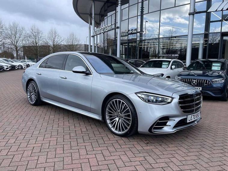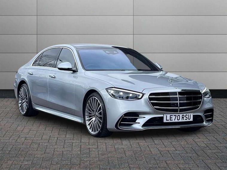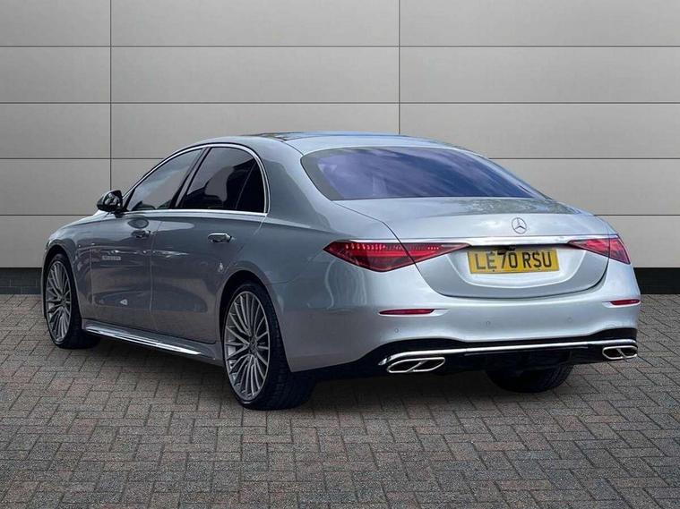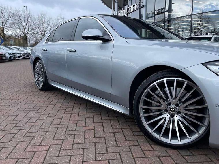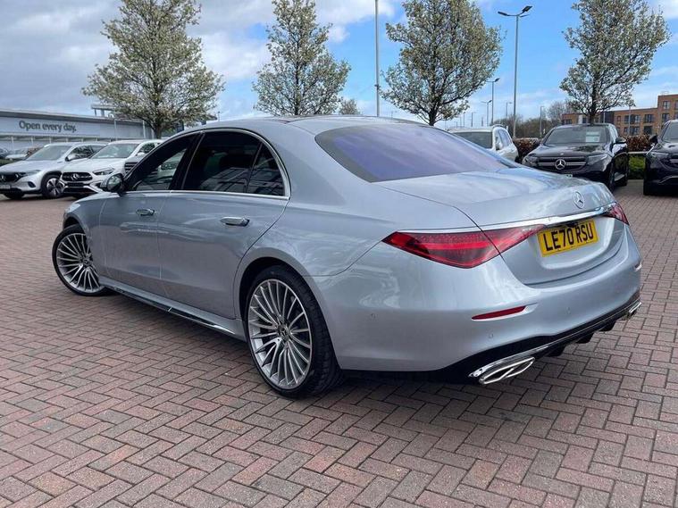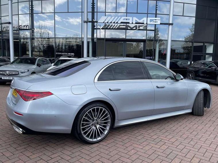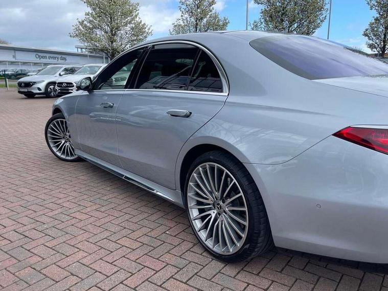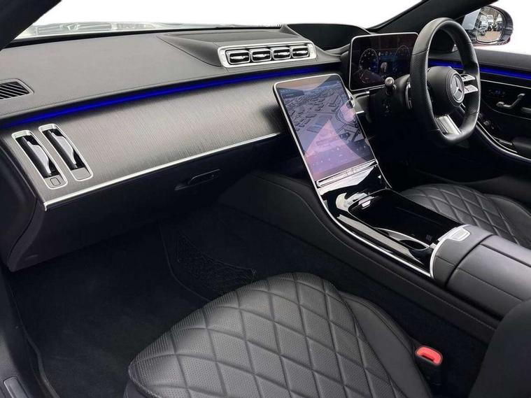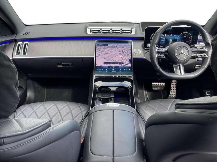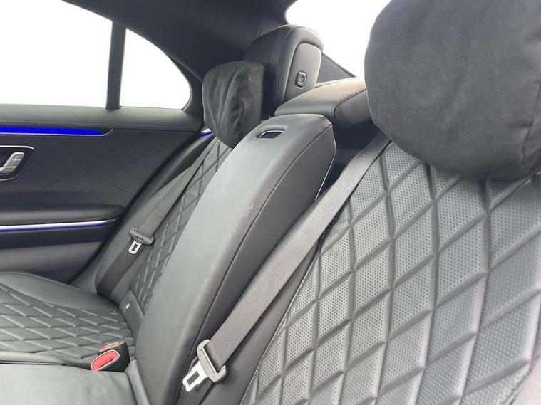 12.3" 3D driver display, 12.8" OLED central display, Attention assist, Bluetooth connection, Crosswind Assist, Direct steering, DYNAMIC SELECT with a choice of driving modes, ECO start/stop function, Extended MBUX functions, Fingerprint scanner, Hands-free access for boot lid, Hard disc navigation, Intelligent parking pilot, MBUX augmented reality for navigation, MBUX augmented reality head-up display, MBUX navigation premium, Mercedes-Benz emergency call, Power closing aid for doors and boot lid, Preinstallation for Navigation Services, Rear belt status indication in the instrument display, Remote boot lid release and closing, Service indicator (ASSYST), Soft closing aid for doors and boot lid, Wireless charging system for mobile devices in the front, Wireless smartphone integration, 76 litre fuel tank, 9G TRONIC 9 speed automatic transmission, Airmatic air suspension, EQ Boost starter-alternator (48V mild hybrid technology), Petrol Particulate Filter, Burmester 3D surround sound system, DAB Digital radio, Front 2x USB type-C ports, Rear 2x USB type-C ports, Sound personalisation, Adaptive brake lights, AMG body styling with chrome elements, AMG front apron in A-wing design with large air intakes and fins in chrome plus front splitter in chrome, AMG rear apron with diffuser and trim element in chrome, Automatically dimming rear view mirror, Digital light - LED headlight, adaptive highbeam, cornering and active light, enhanced fog light, city, country road mode, weather and LED rear lamp, Electrically adjustable, heated and automatic dimming driver side exterior mirrors with kerb/parking function, Front and rear electric windows, Heat insulating, dark tinted noise insulating and infrared reflecting laminated glass, Heated windscreen, Illuminated door sill panels with Mercedes-Benz lettering, LED daytime running lights, Magic vision control, Panoramic sliding sunroof, Privacy glass, Radiator grille with chrome surround and three horizontal cross struts in chrome with inserts in high-gloss black, Shoulderline trim strip in chrome, Side sill panels with chrome insert, Visible tailpipe trim elements in chrome, 12V socket in boot, 12V socket in rear centre console plus in the front passenger footwell, 3 twin spoke flattened bottom multifunction sports steering wheel in nappa leather with silver chrome shift paddles, 4 way lumbar support for driver and front passenger, Active ambient lighting 64 colours with 10 colour schemes, projection of brand logo, AMG floor mats, AMG pedals in brushed stainless steel with rubber studs, Automatic child seat recognition sensor, Centre console in black crystal look finish, Climatised front seats, Climatised rear seats, Driver and front passenger seat heating plus, EASY ADJUST luxury head restraints with additional cushion for driver and front passenger, Easy entry system for driver, Electrically adjustable rear seats including memory function, Fabric roof liner, Nappa leather upholstery, Rear centre armrest with double cup holder, Rear head restraints, Seat heating plus for outer rear seats, Steering column gear selector, Steering wheel gearshift paddles, Steering wheel heating, Thermotronic automatic 4 zone climate control, Through loading system, Two bag hooks, Umbrella holder, Active multicontour seat pack - S Class, Air-balance pack - S Class, Driving assistance package - S Class, Front energizing package - S Class, Memory pack - S Class, Parking package with 360 degree camera - S Class, USB pack plus - S Class, Warmth comfort package - S Class, Anti lock braking system (ABS) with brake assist, Brake pad wear indicator front brakes, Centre airbag, Driver/Front Passenger airbags, Electric parking brake, Electronic stability programme with acceleration skid control, First aid kit, Front large compound brake discs 390x36mm internally ventilated and perforated, Front side airbags, Grey painted brake callipers with Mercedes-Benz lettering at the front, grey logo badge at the rear, i-Size and ISOFIX rear child restraint system, Pedestrian protection, Pre-safe system including pre-safe sound, Rear larger compound brake discs 360x26mm internally ventilated and perforated, Three 3 point rear seatbelts, Tyre pressure loss warning system, Window airbags, Dashcam, Increased anti-theft protection, KEYLESS-GO starting function with seamless door handles, Locking wheel nuts, Urban guard vehicle protection plus, Anthracite open-pore poplar wood, 21" AMG multispoke alloy wheels in himalaya grey with high-sheen finish, Noise reduced tyre with foam absorber, Summer tyres, Tyrefit tyre sealant kit,
