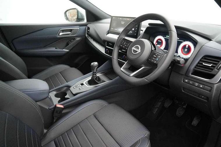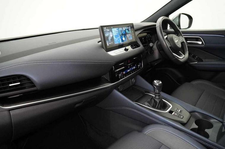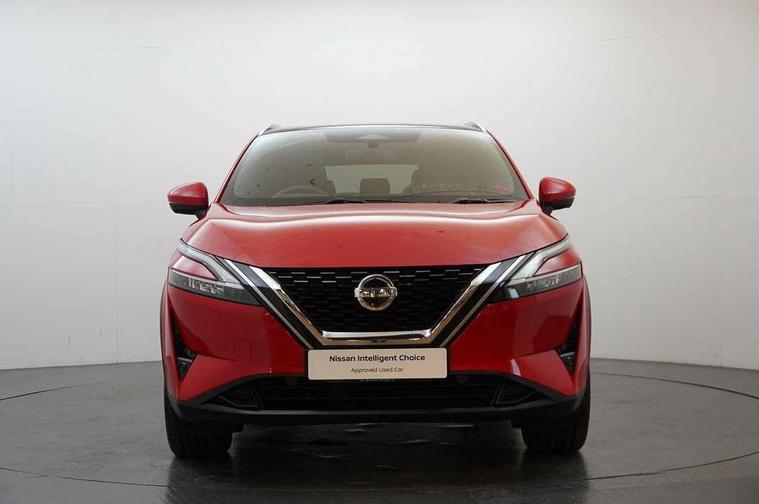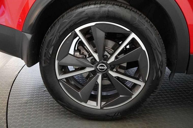 Advanced windscreen head up display, Android auto/Apple CarPlay (Wired), Blind spot warning, Drive assist, Drive modes (sport, normal, eco), Electric speed sensitive power steering, Emergency and breakdown call, Front and rear parking sensors, Full Digital 12.3" TFT Digital Combimeter, Google maps services - search, weather, 3D maps and Google street view, Hands free power tailgate, Idle stop/start system, Intelligent around view monitor, Intelligent Cruise control (ICC), Intelligent driver alert system, Intelligent forward collision warning, Intelligent lane intervention, Lane departure prevention, Lane departure warning system, Lane keep assist, Moving object detection, Nissan connect 12.3 inch touchscreen infotainment system, Nissan connect navigation, Push button starter, Rear cross traffic alert, Rear view camera, Remote control services - door locks, lights, horn and car locator, Telematics - notifications and connectivity services, TomTom live traffic services, Traffic sign recognition with legal speed adjustment, Trip computer, Virtual personal assistant and firmware over the air capability, Wireless apple carplay, Wireless charging pad, 6 speakers, AM/FM audio system with DAB, Bluetooth audio streaming, Front USB connections (Type-A and Type-C), Rear USB charging only ports (Type-A and Type-C), Auto dimming rear view mirror, Auto rear wiper when reversing, Automatic hazard signal with emergency stop signal, Body colour mirror caps, Body coloured door handles, Bodyside mouldings, Chrome side window finisher, Door handle with button, Electric auto folding door mirrors, Electrically adjustable and heated door mirrors with LED turn indicator, Follow me home headlights, Front and rear LED turning signals, Headlights auto levelling system, Intelligent auto headlights, LED daytime running lights, LED headlights with adaptive driving beam, LED rear lights, One touch front and rear electric windows with remote opening and closing, Partially body coloured bumpers, Privacy glass, Rear bumper with graphite insert, Rear reversing light (bulb lighting), Rear roof spoiler, Rear side wing doors, Rear styling plate, Shark fin antenna, Splash free rain sensing wipers, Super UV and infrared cut glass, Thermaclear heated windscreen, Three blink turn signal, 12v power socket in dashboard and luggage, 2x Rear coat hooks, 3 bench rear seats in 2nd row, 3 rear headrests, 4 folding assist grip, 6 Luggage hooks - 4 on floor, 2 on side, 60/40 split folding rear seat bench, Ambient lighting around centre console, Ambient lighting in front doors, Centre console storage tray, Chrome interior door handles, Cloth/syntech leather monoform upholstery, Dark black/blueish PVC wrapping, Dark headlining, Driver and front passenger sunvisors with illuminated vanity mirrors, Driver seat back pocket, Dual zone automatic climate control with pollen filter, Electrically adjustable driver seat, Electrically adjustable lumbar support for driver, Front and rear door storage, Front centre console and armrest, Front cupholders x 2, Front door with bottle holders, Glovebox with light, Hard trunk cover, Heated front seats, Heated steering wheel, Height adjustable driver's seat, Height adjustable front headrests, Height adjustable passenger seat, Leather shift knob, Leather steering wheel, Luggage board system, Luggage space lighting, Manual lumbar support on passenger seat, Manually adjustable passenger (slide recline + lifter), Multifunction steering wheel, Passenger seat back pocket, Rear armrest with 2 cupholders, Rear door bottle holders, Single front passenger seat, Soft PVC kneepad, Steering wheel switches, Tilt/telescopic adjustable steering wheel, Two rear isofix child seat anchorage points with top tether, Welcome light and doors with console tray ambient lighting, Glass roof pack with roof rails - Qashqai, 3x3 point rear seatbelt pretensioners + load limiters, ABS with EBD and brake assist, Active brake limited slip, Auto hold function, Child locks on rear doors, Curtain and front side, far side airbags, Driver and passenger airbags, Driver, passenger and 2nd row rear seat belt reminder, Electronic parking brake, Front seatbelt pretensioners + load limiters, Height adjustable front seatbelts, Hill start assist, Intelligent blind spot intervention, Intelligent front emergency braking with pedestrian, cyclist recognition and junction assist, Intelligent rear automatic braking, Tyre pressure monitoring system, Vehicle dynamic control, Capless fuel filler, Engine immobiliser, Intelligent Key, Remote central door locking with deadlocking, Thatcham Cat.1 alarm, Interior instrumental panel C finisher, 19" Alloy wheels, Tyre puncture repair kit,