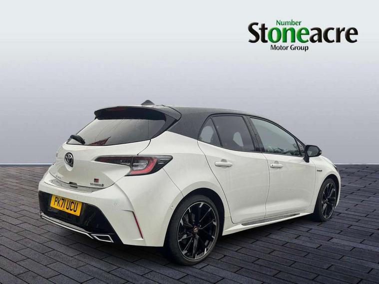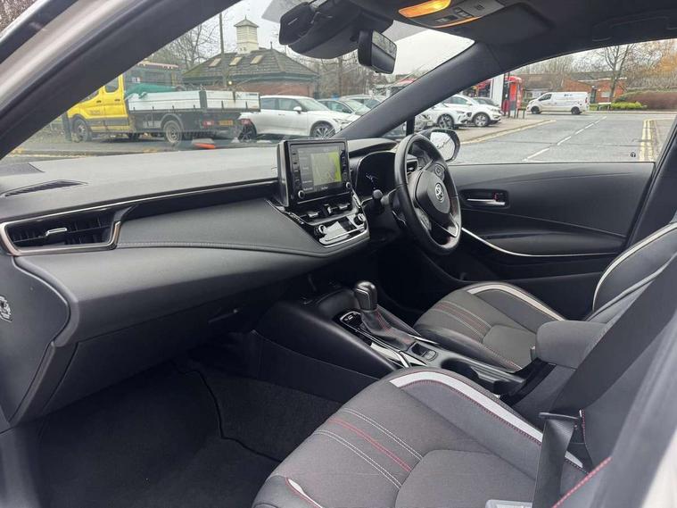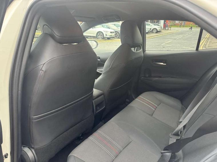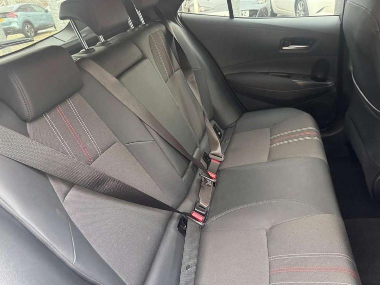 7" Multi information display screen, Bluetooth telephone connectivity, Connected car functionality upgrade, tracker, remote status and e-care, Dynamic radar cruise control (with RSA) including switch on steering wheel, E-call, Electrically assisted power steering, EV drive indicator, Head up Display, Intelligent park assist, Lane Departure Alert (LDA) switch on steering wheel, Memory on adjustable speed limiter, Push button start, Reversing camera, Smartphone integration with Apple CarPlay and Android auto, Gasoline particulate filter, Vehicle Stability Control (VSC), 6 speakers, 8" Touchscreen with MM19 Multimedia system and voice recognition, AM/FM radio, DAB Digital radio, Toyota touch 2 with go navigation system, USB and Aux in connectors + 12V front outlet, Anti-jam protection on power windows, Auto dimming inside rear view mirror, Auto up and down function on all power windows, Automatic folding mirrors, Automatic headlights with high beam assist, Black toyota logo in front, Black window frames, Body colour rear spoiler, Body coloured bumpers, Body coloured door mirrors, Body coloured outside door handles, Follow me home headlights, LED daytime running lights, LED front fog lights, LED Headlights, LED High mounted stop light, LED rear combi lights with LED lightguide, Piano black surround on lower front grille with dark chrome mesh effect, Power adjustable heated door mirrors, Power front windows, Power rear windows, Privacy glass, Rain sensing wipers, Rear bumper with satin chrome plated inserts, Rear window defogger, Rear window wiper, Reverse tilting door mirrors, Shark fin antenna, Time adjustment on intermittent wiper, Turning signal integrated indicators in door mirrors, Unique lower skirt, Unique side rocker with black insert, UV-filter on driver and passenger windows, 3 rear headrests, 3 spoke leather steering wheel + gear knob, 60/40 split folding rear seat, Adjustable speed limiter switch on steering wheel, Alcantara/partial leather upholstery, Audio, multimedia and telephone switches on steering wheel, Boot light, Centre room light, Clean air filter, Driver and front passenger personal light, Driver and passenger assist grip, Driver and passenger seatback pockets, Driver and passenger sun visor with mirror and light, Dual zone automatic air conditioning with ECO mode switch, Fabric armrests, Front and rear cup and bottle holders, Front door pockets, Front head restraints, Heated driver and front passenger seats, Illuminated entry system in room lamp, ISOFIX seat fixing (2 fixings on rear outer seats), Leather gear shift with satin chrome on gear shift console, Manual height adjustable for driver and front passenger seat, Paddle shifts, Parcel shelf, Pollen filter, Power adjustable lumbar support on driver seat, Power window switches with satin chrome inserts, Rear armrest with 2 cupholders, Rear passenger coat hooks (2), Satin chrome inside door handles, Shopping bag hooks in luggage compartment, Sliding armrest on centre console box, Slow opening glovebox with lights, Sports seats, Tilt/telescopic steering column, Voice recognition switch on steering wheel, Whiplash Injury Lessening (WIL) feature (active headrest) for seats, Parking pack - Corolla, Toyota safety sense 2 pack - Corolla, 3x3 point rear seatbelts, Adjustable driver and front passenger seat belt extender to top anchor point, Anti lock braking system + Electronic brake force distribution, Brake assist function, Downhill Assist Control (DAC), Electronic parking brake, Emergency brake light signal (EBS), Front passenger airbag on/off switch, Front seatbelt reminder, HAC - Hill start assist control, Rear seat belt reminder, Seatbelt pretensioners and force limiters, Supplemental restraint system (SRS) 7 airbags - dual driver, dual side curtain, side impact and driver knee airbags, Traction control, Tyre pressure warning system, Acoustic vehicle alert system (AVAS), Alarm with motion sensor and immobilizer, Remote central locking + deadlocks, Smart entry, Satin chrome dash trim, Soft touch texture on upper dashboard, Space saver spare wheel, Unique wheel finish with red wheel cap,