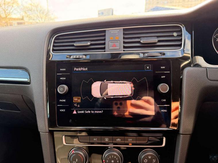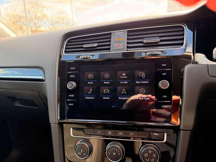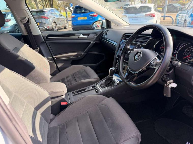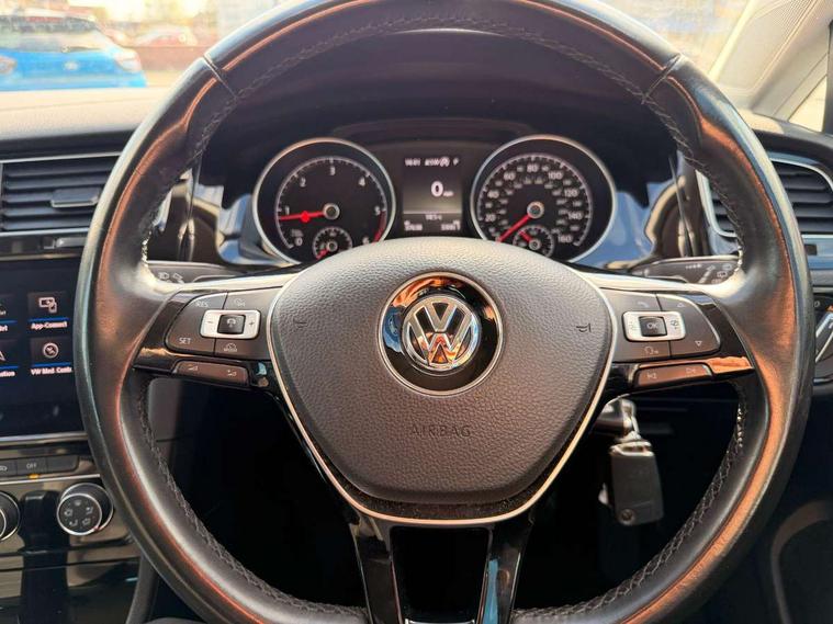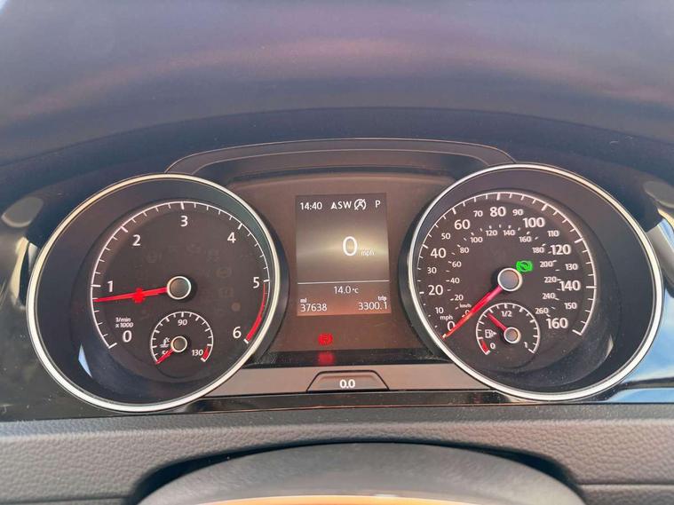 'Lights On' Reminder warning buzzer, 8" touch screen, Adaptive Cruise Control with pedestrian detection and speed limiter, App-Connect, Bluetooth hands free telephone connection, Brake pad wear indicator warning light, Drive mode selector, Driver alert system, Driver profile selection, Exterior temperature gauge, Instrument cluster in white, Multifunction computer, PAS - speed related, Rev counter, Trip and service interval display, Ultrasonic front and rear optical and audible parking sensors, Warning buzzer and light for front seatbelts unfastened, Diesel particulate filter, Lowered sports suspension, XDS electronic differential lock, CD/MP3/WMA, USB and SD card reader, aux-in, Composition media system, DAB Digital radio, Auto dimming rear view mirror, Automatic coming/leaving home lighting function, Automatic headlights, Black front air intake and radiator grille with chrome insert, Black rear diffuser, Body colour bumpers, Body colour door handles, Body colour door mirrors, Chrome grille surround, Electric front windows, Electric rear windows, Electrically adjustable and heated door mirrors, Heat insulated tinted glass 65% light absorbing from B pillar back, Heated rear windscreen, LED daytime running lights, LED front fog lights with static cornering light function, LED rear lights, Rain sensor, Rear roof spoiler, Rear windscreen washer and wiper with interval delay, Silver roof rails, 12V socket in luggage compartment, 3 rear headrests, 3 spoke steering wheel, 60/40 split folding rear seat, Bag hook in luggage compartment, Boot lashing points, Cooled glovebox, Courtesy light delay, Cover for storage compartment in centre, Dust/pollen filter, Front + rear carpet mats, Front centre armrest with storage box and rear air vents, Front passenger drawer stowage, Front passenger seat height adjust, Front seat back storage pockets, Gearshift paddles, Grab handles, Height/reach adjust steering wheel, Illuminated vanity mirrors, Isofix preparation for 2 rear child seats, Load through provision with rear centre armrest and cupholders x2, Luggage compartment cover, Luggage compartment lighting, Multifunction leather steering wheel with leather gear knob/handbrake grip, Overhead storage box, Pearl grey headlining, Storage compartments in doors, Sun visors, Variable boot floor, height adjustable and removable, Ambient lighting pack - Golf, Mirror pack - Golf, 3 point height adj front seatbelts + pretensioners, 3 rear 3 point seatbelts, ABS, Automatic post collision braking, Child locks on rear doors, Driver/Front Passenger airbags, Driver/Passenger whiplash optimised head restraints, Drivers knee airbag, Electronic parking brake with auto hold, ESP with EDL + ASR, Front and rear curtain airbags, Front assist including city emergency braking, Front passenger airbag deactivation, Front side airbags, Pre crash system, Tyre pressure monitor, Alarm with interior protection, Electronic engine immobiliser, Locking wheel bolts, Remote central locking with 2 remote folding keys, Chrome-plated light switch surround, Piano black centre console, Tumbler decorative inserts, Steel space saver spare wheel,
