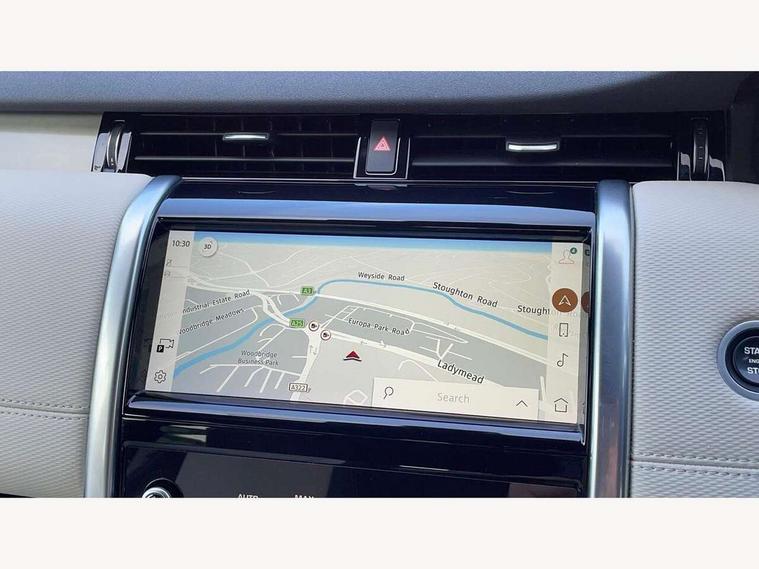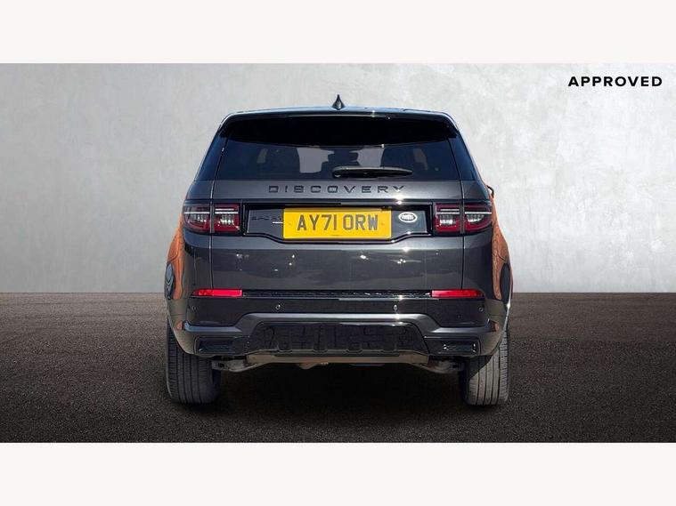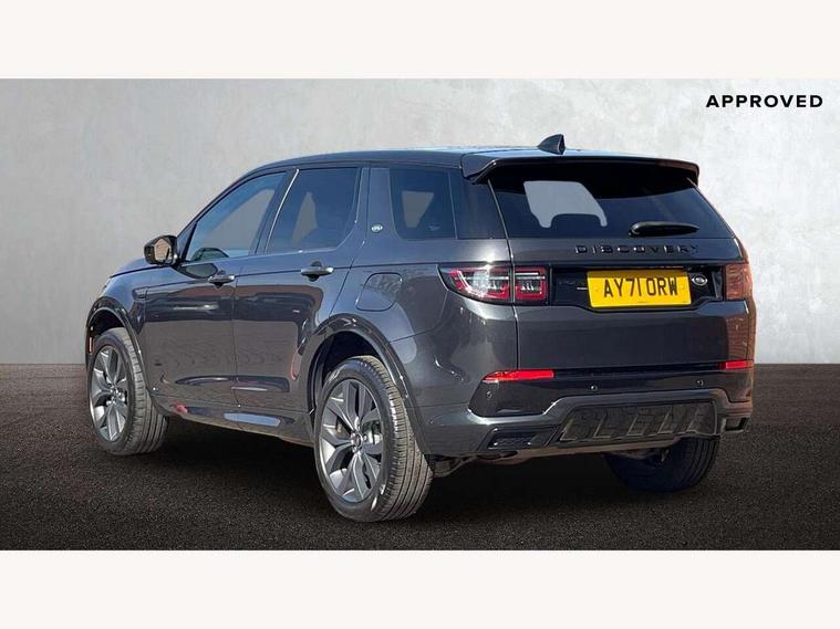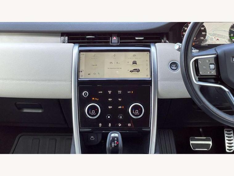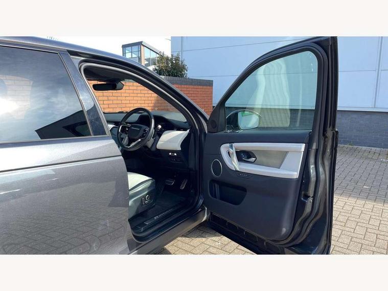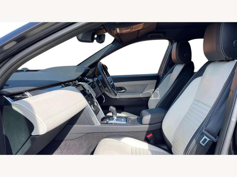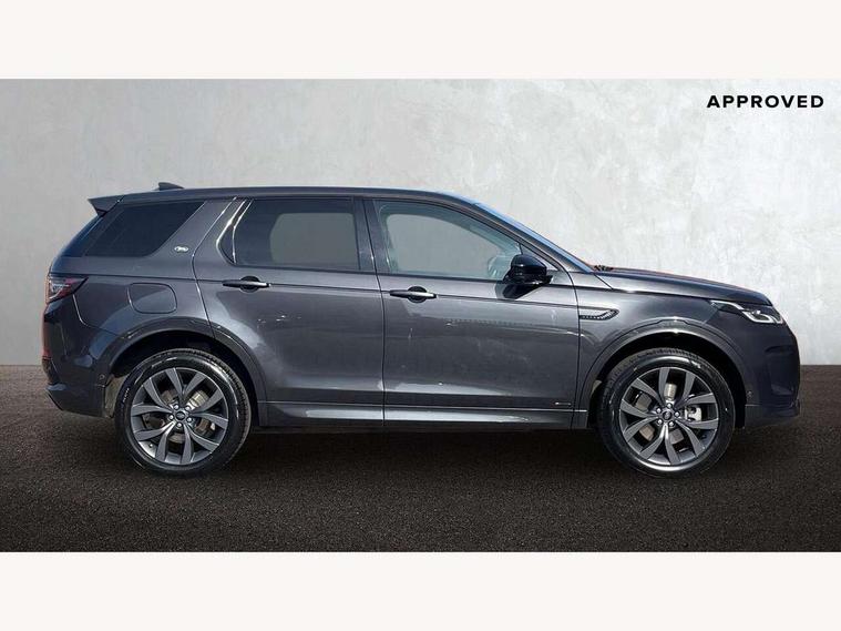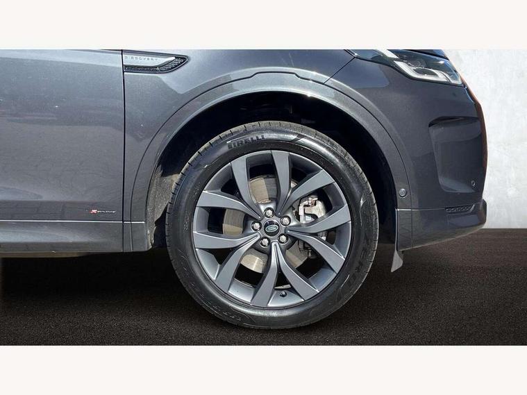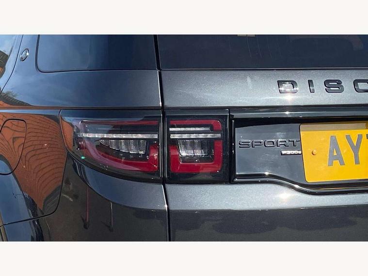 10" touch screen, Android Auto, Apple CarPlay, Blind spot assist, Clear exit monitor, Driver condition monitor, Front and rear parking aid, InControl remote premium, Interactive driver display, Lane keep assist, Locking fuel flap, PAS, Pivi Pro connected navigation system with upgraded Infotainment, Powered tailgate/boot lid, Push button start, Rear traffic monitor, Service interval indicator, Traffic sign recognition with adaptive speed limiter, Trip computer, Wade Sensing, 7 kW onboard charger, All terrain progress control, Coil suspension system, Dynamic stability control, Public charging cable, Terrain Response 2, Bluetooth connectivity including audio streaming, Digital Audio Broadcast radio-DAB, Steering wheel mounted audio controls, Automatic headlight levelling, Automatic headlights, Electric front/rear windows, Electric heated/power fold memory door mirrors with approach lights and auto dimming driver side, Fixed panoramic sunroof with powered sunblind, Front and rear recovery eyes, Heated rear window, Heated windscreen including heated washer jets, Privacy glass, R Dynamic badge, Rain sensing windscreen wipers, Rear fog lights, Rear side wing doors, Rear wiper, 5 seats, Bright metal pedals, Centre console with armrest, Footwell lights, Front and rear grab handles, Front passenger isofix child seat attachment, Loadspace cover, Loadspace light, Overhead lighting console, Overhead stowage for sunglasses, Rear headrests, Satin chrome gearshift paddles, Sunvisors with illuminated vanity mirrors, Tilt/reach adjustable steering wheel, Black exterior pack - Discovery sport, Online pack - Discovery sport, 3 point seatbelts on all seats, ABS, Brake hold function, Collision mitigation braking system, Cornering brake control (CBC), Driver/Front Passenger airbags, Drivers knee airbag, Electronic brake force distribution, Electronic parking brake, Emergency brake assist, ESP + traction control, Hill descent control, Hill launch assist, Pedestrian airbag system, Rear seat ISOFIX, Roll stability control, Side and curtain airbags for front and 2nd row seats, Trailer stability control, Tyre pressure monitoring system, Battery Back Up System (BBUS) with tilt sensor, Global lock and unlock switch on driver door, Intrusion sensor, Locking wheel nuts, Centre stack rails in noble chrome,