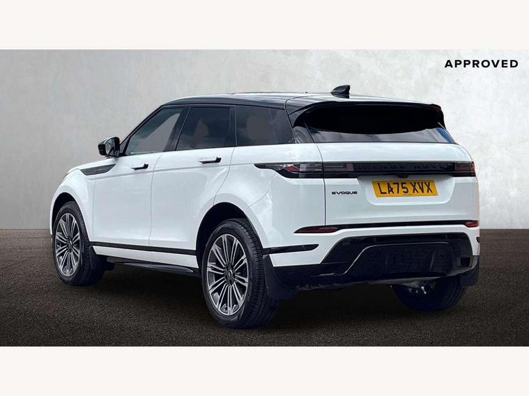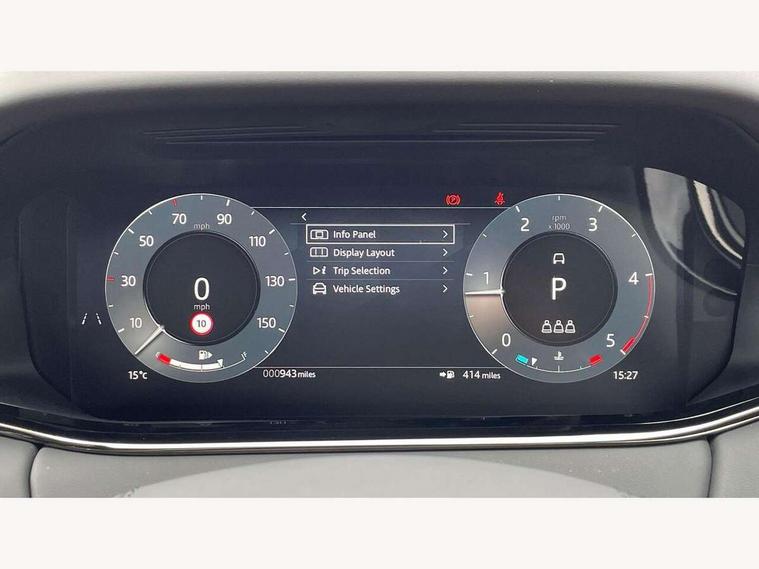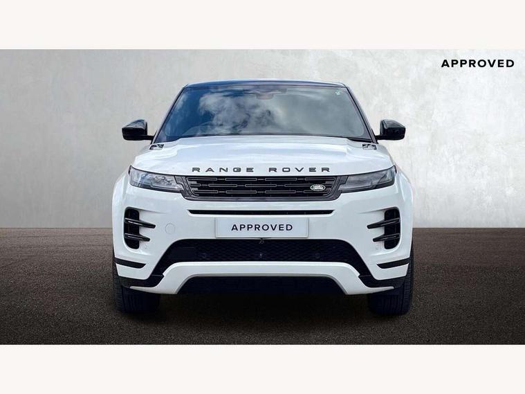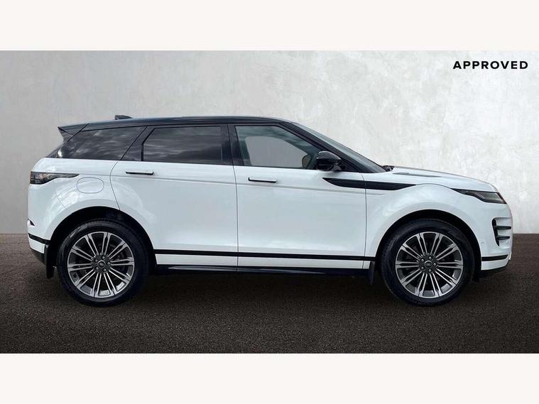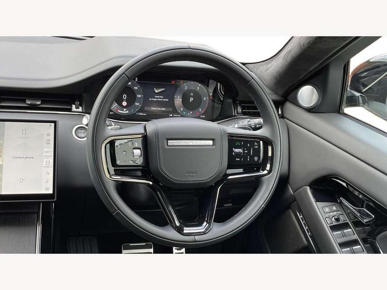 11.4" touch screen, 3D 360 degree surround camera with wade sensing, Adaptive cruise control, Android Auto, Apple car play, Blind spot assist, Bluetooth connectivity, Brake pad wear indicator warning light, Driver condition monitor, eCall emergency system, Eco mode, Electronic power assisted steering (EPAS), Front and rear parking sensors with auto brake, InControl remote, Interactive driver display, Land Rover InControl apps, Lane keep assist, Pivi pro connected includes diamond pivi variant, smart settings, connected navigation pro, nuance speech licence, Powered tailgate/boot lid, Rear collision monitor, Rear traffic monitor, Tailgate, Traffic sign recognition with adaptive speed limiter, Voice control system, Wireless device charging, All terrain progress control, Diesel exhaust fluid (DEF) large tank, Efficient Driveline, Large fuel tank, Terrain Response 2, Digital Audio Broadcast radio-DAB, Meridian surround sound system with 650W subwoofer and 14 speakers, Steering wheel mounted controls, Acoustic laminated windscreen, Auto headlights, Automatic headlight levelling, ClearSight interior rear view mirror, Electric windows with one touch open/close and anti trap, Flush deployable exterior door handles, Front and rear recovery eyes, Heated rear window with timer, Heated washer jets, Heated windscreen, Pixel LED headlights with signature DRL and LED tail Lights, Power fold, auto-dimming, heated door mirrors with approach lights and auto dimming driver side, Rain sensing windscreen wipers, Rear animated directional indicators, Rear fog lights, Rear side wing doors, Rear wiper, Side repeater indicators in mirror, Sliding panoramic roof with powered sunblind, Tailgate spoiler, Third brake light, Winter wiper park position, 14 way driver memory electric front seats with 2 way manual headrests + 4 way lumbar support, bolsters, 40:20:40 split folding rear seats with centre headrest and armrest, Ambient interior lighting, Bright metal pedals, Carpet mats, Customer configurable single point entry, Electrically adjustable steering column with memory function and easy entry/exit, Front and rear cupholders, Heated steering wheel, Isofix system on outer rear seats, Overhead lighting console, Overhead stowage for sunglasses, Passive front head restraints, Rear air vents, Rear head restraints, Satin chrome gearshift paddles, Single passenger seat, Sunvisors with illuminated vanity mirrors, Twin sliding front centre armrest, Power socket pack 2 - Evoque, 3 rear 3 point seatbelts, Anti-lock braking system (ABS), Brake hold function, Customer configurable autolock, DSC - Dynamic Stability Control, Electronic brake force distribution, Electronic parking brake, Electronic traction control, Emergency braking, Front and rear seatbelt reminder, Hill descent control, Hill launch assist, Low traction launch, Occupant protection assist, Passenger seat occupant detector, Power operated child locks, Roll stability control, Six airbags - Driver and passenger airbags/driver knee airbag/front side airbag and curtain airbags, Torque vectoring brake, Tyre pressure monitoring system, Alarm, Immobiliser, Intrusion sensor, Keyless entry, Locking wheel nuts, All season tyres,