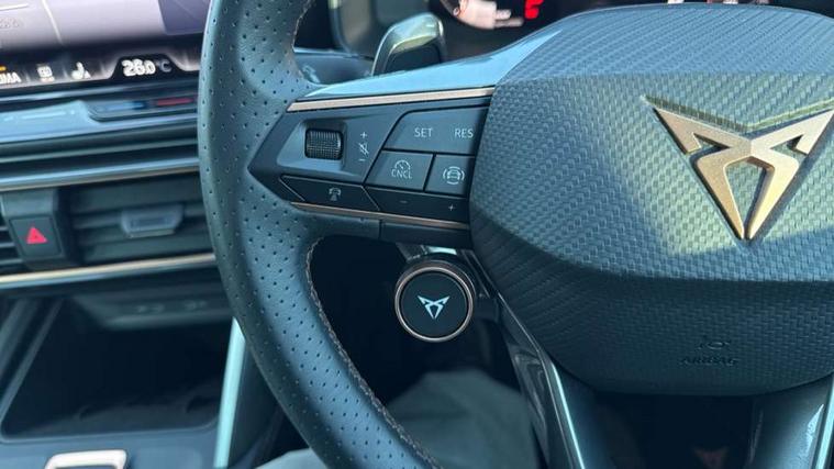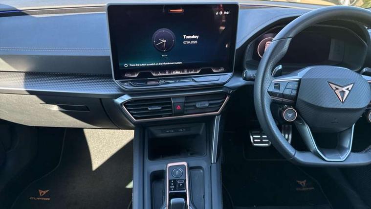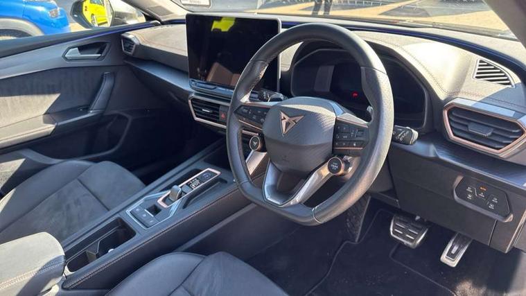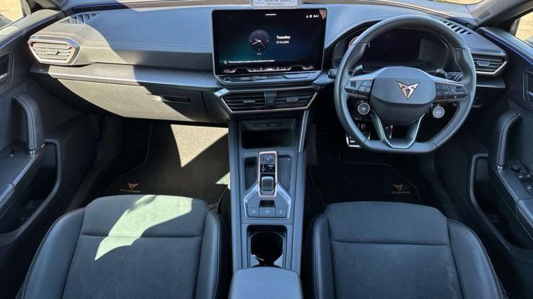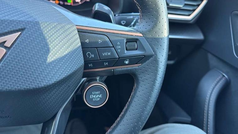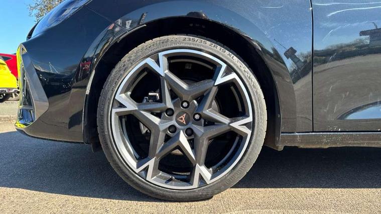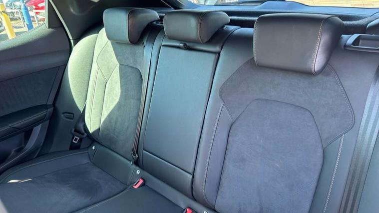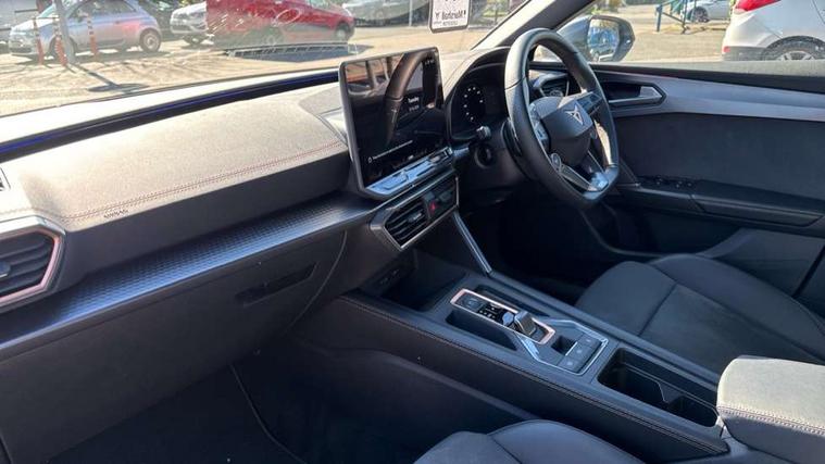 Adaptive cruise control with follow-to-stop and speed limiter, CUPRA drive profile selection with (Comfort/Sport/Individual), throttle response and gearshift mode, Digital cockpit, Dynamic road sign display, E-call, Front and rear parking sensors, Front assist with forward collision warning braking reaction to vehicles, pedestrians and cyclists, Full link smartphone integration with Mirror Link, wireless Apple CarPlay and wired Google Android Auto, Lane assist, Lockable tailgate, Rear view camera, RPM, trip computer, outside temp gauge, instrument light brightness, low fuel warning light, lights on reminder, gearshift indicator, Service interval indicator, Start/stop system with regenerative braking, Wireless phone charger, Auxiliary input socket, Auto dimming rear view mirror, Body colour door handles, Body coloured bumpers, Cupra sports bumpers, Dark tinted rear windows, Electric front/rear windows, Electrically adjustable, heated and folding door mirrors, High beam assist, LED front fog lamps with cornering function, LED headlights with dynamic turn signals, tail lights, rear fog lights with rear coast to coast lighting, LED rear fog lamp, Rain sensing wipers, Rear side wing doors, Rear wash/wipe, Separate daytime running light with automatic headlight control and coming home feature, Third brake light, Welcome light with logo projector in door mirrors, 12v power supply in centre console, 3 seat bench in 2nd row, 5 headrests, 60/40 split rear bench seat with armrest, Ambient lighting (glovebox, footwell, ambient lighting multicoloured), Black headlining, Cupra sports pedals, CUPRA Supersports, heated steering wheel with satellite buttons, Dinamica cloth upholstery, Electrically adjustable driver seat and lumbar support with memory function + manually adjustable passenger seat, Folding boot cover, Four x USB Type C ports (2 in front and 2 in rear), Front and rear reading lights X 4, Front centre armrest, Heated front seats, Height/reach adjust steering wheel, Illuminated interior front door sills, Interior wraparound lighting, ISOFIX points in outer rear seats with top tether anchorage points, Single front passenger seat, Storage pockets on rear of front seats, Sunvisors with illuminated mirror, Three zone climate control, Dynamic and comfort pack - Leon Cupra, Media system plus with 12.9" display + navigation pack - Leon Cupra, 3 point seatbelts on all rear seats, ABS, Brake control system - ESC and brake booster, Child proof door locks, Cupra black brake calipers, Driver and front passenger airbags with front passenger airbag de-activation, front side and curtain airbags, Electronic parking brake, Hill hold control, Rear disc brakes, Seat belt reminder for front and rear seats, Tiredness recognition system, Tyre pressure monitoring system, Anti theft alarm system with interior monitoring in cab, backup horn and towing protection, KESSY Advanced - Keyless start, keyless entry, Locking wheel bolts, Chrome and copper interior detailing, 19" Polar machined sport black and silver alloy wheel with 91Y tyres, Tool kit,