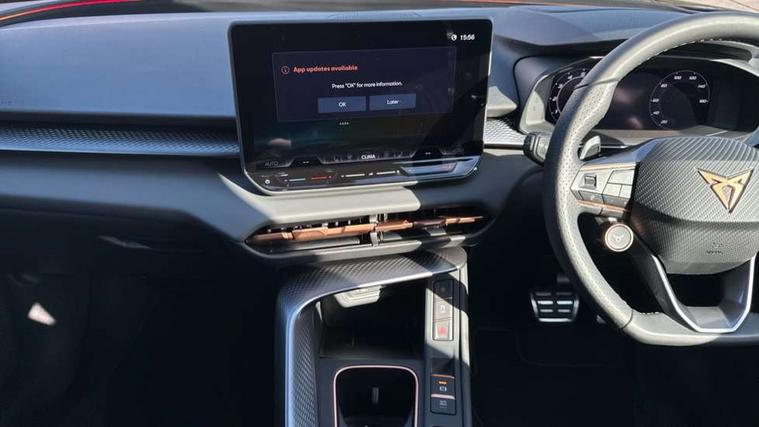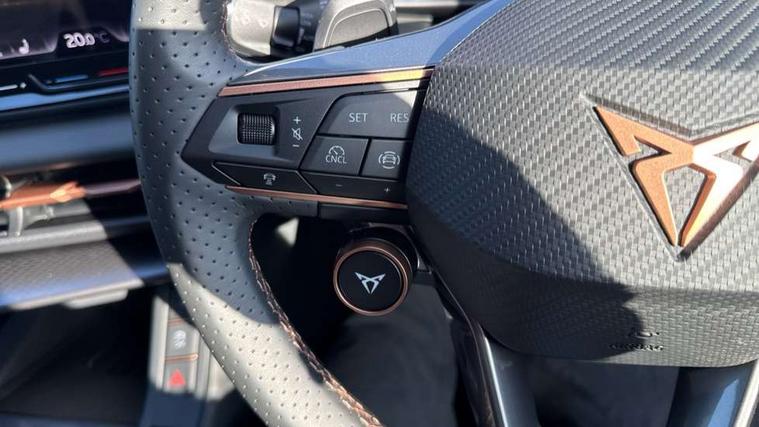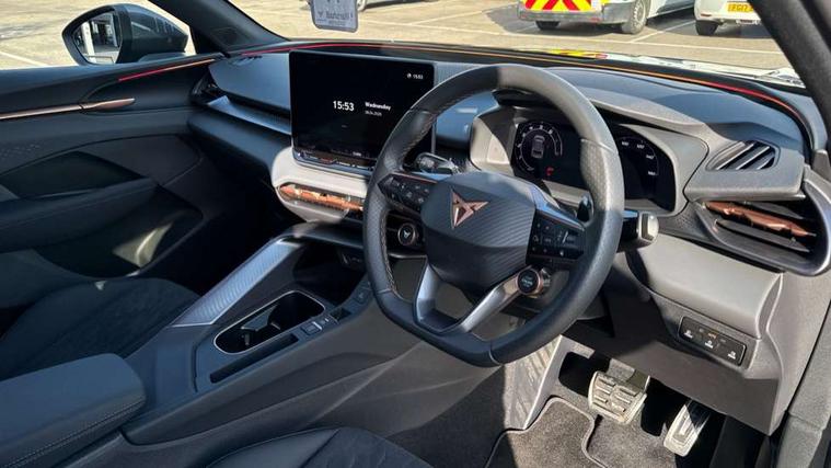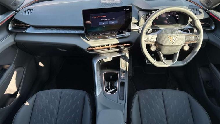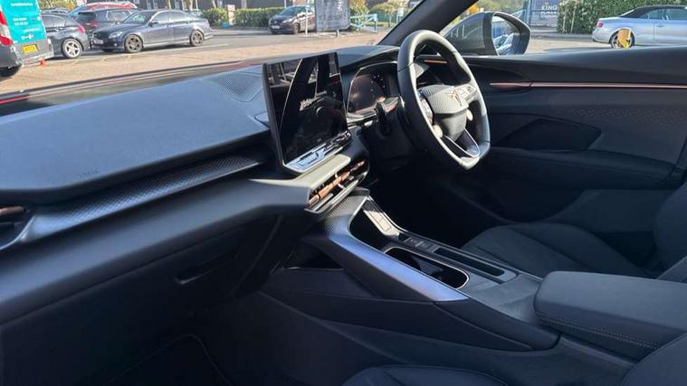 10.25" digital cockpit and configurable dashboard, Adaptive cruise control with follow-to-stop and speed limiter, Advanced driver alert system, Advanced lane assist with semi-automatic vehicle control in a medical emergency and traffic jam assist, Driving profile selection and conventional shock absorber, Dynamic road sign display, E-call, Electric tailgate with virtual pedal, Emergency steering support with turn assist, Front and rear parking sensors, Front assist (Forward collision warning with automatic braking) with multifunction camera and front cross traffic assist, Head up Display, Intelligent park assist, Media system with Nav - 12.9" touch display, voice control, full link phone (wired/wireless), DAB and Steering wheel mounted controls, Rear traffic assist, Side and exit assist, Speed sensitive power steering, Start/stop system with regenerative braking, Top view camera (front camera, rear camera, 2 side cameras), Wireless phone charger, Auto dimming rear view mirror, Black roof rails, CUPRA 3D rear lights with ceremony & swiping indicator and illuminated logo, Dark tinted rear windows, Daytime running lights with automatic headlight control and Coming and Leaving home function, Door mirrors with memory function and lowing function on passenger mirror, Dynamic headlight range control, Electric front/rear windows, Electrically adjustable, heated and folding door mirrors, Front fog lamps with cornering function, Heat reflecting windscreen, High beam assist, LED headlamps with signature "CUPRA LED", Rain sensing wipers, Rear fog light on one side, back up light on both sides, Rear side wing doors, Rear wash/wipe, Third brake light, Welcome lights (within exterior mirror housing), 3 seat bench in 2nd row, Black roof lining, Cupra sports pedals, Dinamica cloth upholstery, Driver seat memory function, Electrically adjustable front seats including lumbar support, Four x USB Type C ports (2 in front and 2 in rear), Front and rear head restraints, Front and rear reading lights X 4, Front centre armrest, Heated front seats, Heated leather wrapped multi function sports steering wheel with tiptronic, Illuminated interior front door sills, Isofix, Operating voltage 12V, Single front passenger seat, Smart wraparound interior lighting, Sunvisors with illuminated mirror, Three zone climate control with control panel in rear, Unsplit rear seat bench, split folding backrest, with centre armrest, Variable luggage/load compartment floor, 3 point seatbelts in front with pretensioner and electric height adjustment, 3 point seatbelts on all rear seats, Brake control system - ESC and brake booster, Child proof door locks, Driver and front passenger airbags, Electronic parking brake, Front and rear disc brakes, Front interaction airbag, Front passenger airbag deactivation switch, Front side airbags with curtain airbags, Pre-crash front and rear seat belt tensioner, window closure and hazard lights, Tyre pressure monitoring system, Visual and acoustic seat belt reminder, electric contact in front and rear, Anti theft alarm, Keyless locking and starting system with keyless access, Locking wheel bolts, Black decorative trims, Chrome interior detailing, 19" Spectrum exclusive machine alloy wheels, Tool kit,