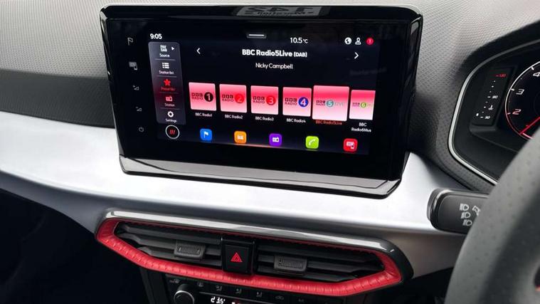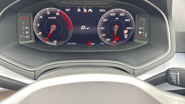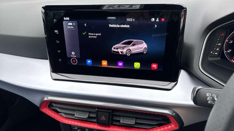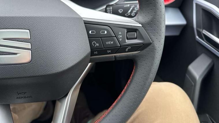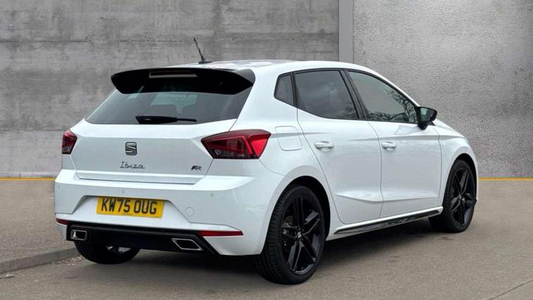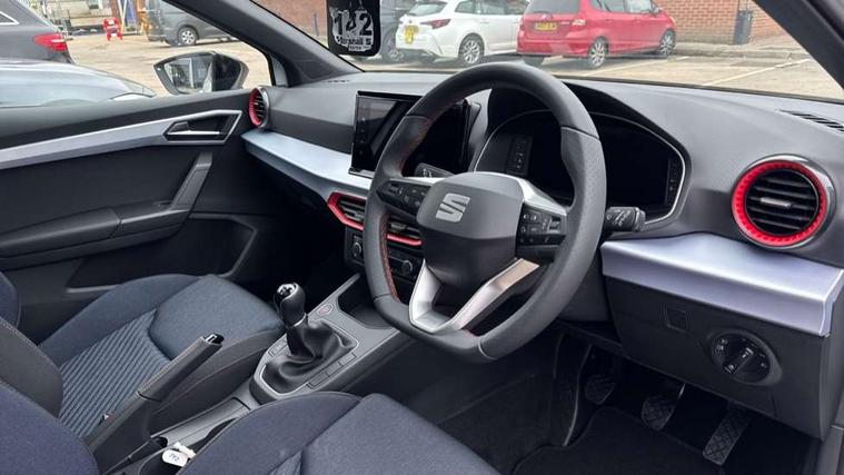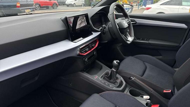 'Lights On' Reminder warning buzzer, 10" Digital cockpit, 9.2" touchscreen navigation system with type C USB socket, Voice control and DAB/AM/FM radio, Auto start and stop system, Bluetooth audio streaming with handsfree system, Digital clock, E-call, Full link smartphone integration with mirror link, wireless apple carplay, Google android auto + USB Type C cable for apple and android devices, Lane assist, Low fuel warning light, Outside temperature gauge, Power Steering, Rear parking sensor, Seat connect plus with safety, service, remote and online, SEAT drive profiles and ECO function, SEAT logo boot release, Speed limiter, Traffic sign recognition, Trip computer, Sports suspension, Auxiliary input socket, Radio/MP3 player, SD card slot, Steering wheel mounted controls, Anti theft roof antenna, Auto dimming rear view mirror, Automatic rain sensing wipers, Black door mirror caps, Black roof spoiler, Black side skirts, Body colour bumpers, Body colour door handles, Brilliant black window surrounds, Dark tinted rear windows, Electric adjustable/heated/folding door mirrors, Electric front windows, Electric headlight adjustment, Electric panoramic sunroof, Electric rear windows, Front/rear fog lights, FULL LED automatic headlights with dynamic headlight range control, coming and leaving home, LED daytime running lights, LED 3rd brake light, LED tail lights, Rear roof spoiler with FR twin exhausts, Rear side wing doors, Rear wiper, 3 seat bench in 2nd row, 60/40 split folding rear seat, Ambient interior lighting, Chrome detailing and black headlining, Dual zone climate control with combination filter, Front courtesy lights, Front cupholders x 2, Front reading lights, Front sport bucket seats, Gear shift indicator, Glovebox, Heated front seats, Height adjustable front and rear headrests (five), Height adjustable front seats, Height/reach adjust steering wheel, Illuminated air vent surrounds, Illuminated boot, Instrument lighting with brightness control, Isofix, Leather multifunction flat bottomed sports steering wheel, Microsuede cloth upholstery, Passenger sunvisor, Single front passenger seat, Storage pockets on back of front seats, Sunvisors with mirror and driver side card holder, Safety and driving pack (S) - Ibiza, ABS, Active front headrests, Child locks on rear doors, Electronic stability control, Energy recovery system, Front driver and passenger side airbags with curtain airbag and front passenger airbag deactivation, Hill hold control, Multi-Collision braking, Seat belt reminder for front and rear seats, Tiredness recognition system, Tyre pressure monitoring system, KESSY Keyless entry and go, Locking wheel bolts, Perimeter alarm and interior monitoring with backup horn and tow away protection, Remote central locking + deadlocks, 18" Performance alloy wheels in glossy black,