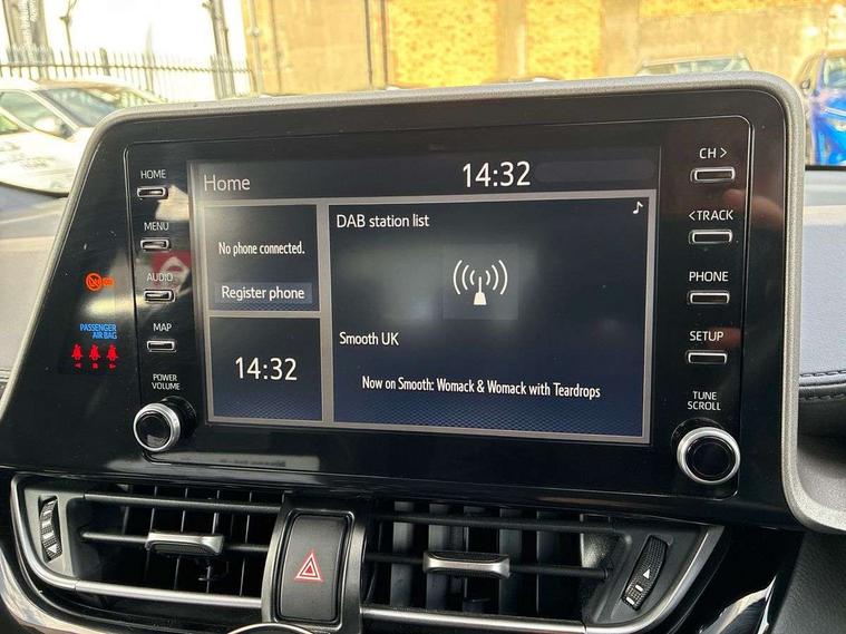 4.2" coloured TFT screen for multi-information display, Adaptive cruise control, Apple car play and Android auto, Bluetooth connectivity, E-call, Electric power steering, Hybrid system indicator, Lane departure alert with steering control, Lane trace assist, Push button start, Push button tailgate release, Remote boot door release in cabin, Remote boot door release in key, Reversing camera, Road sign assist - RSA, Smart voice assist, Trip computer, Voice recognition, Vehicle Stability Control (VSC), 6 speakers, AM/FM radio, DAB Radio (Digital Audio Broadcasting), Toyota touch 2 multimedia system with 8" display, USB connector, Wi-fi connectivity, Anti-jam protection on power windows, Auto high beam, Auto up and down function on all power windows, Automatic headlights, Automatic headlights cut-off, Black and body coloured rear bumper, Black lower front grille, Black upper front grille, Body colour door handles, Body colour door mirrors, Body colour front spoiler lip, Body coloured front bumper, Boot door release with push button, Electric heated door mirrors, Follow me home headlights, Front and rear power windows, Front fog lights, Headlight cut off reminder, Honeycomb lower front grille, LED daytime running lights, LED High mounted stop light, LED rear brake lights, LED rear combination lights, Manual headlight levelling, Manually retractable door mirrors, Noise reduction layer on front windows and windscreen, Power adjustable door mirrors, Rear side wing doors, Rear spoiler, Rear tailgate, Rear window defogger, Rear window wiper, Reflective LED headlights, Shark fin antenna, UV-filter on driver and passenger windows, UV-filter on rear windows, Variable front intermittent wipers, 12v power outlet - front, 3 rear headrests, 3 seat bench in 2nd row, 3 spoke leather steering wheel, 60/40 split folding 2nd row rear seats, Adjustable rear headrests, Adjustable speed limiter switch on steering wheel, Assist grips front and centre pillar, Audio and telephone switches on steering wheel, Black front door assist grips, Boot light, Chrome interior door handles, Cloth upholstery, Driver and front passenger personal light, Driver and front passenger Whiplash Injury Lessening seats, Dual zone automatic air conditioning, Floor mats, Front cupholders, Front head restraints, Front sports seats, Glovebox with internal light, Hard tonneau cover, Hooks for luggage holding net, Humidifying Nanoe air purifier, Illuminated entry system, Isofix attachments on outer rear seats, Leather gearshift, Light on driver sun visor, Light on passenger sun visor, Manual telescopic steering wheel, Manual tilt steering wheel, Manually adjustable lumbar support on driver seat, Manually height adjustable driver seat, Manually height adjustable front passenger seat, Manually reclining driver seat, Manually reclining front passenger seat, Manually sliding driver seat, Manually sliding front passenger seat, Microphone on front personal light, Mirror on driver sun visor, Mirror on passenger sun visor, Multimedia switches on steering wheel, Pollen filter, Shopping bag hooks, Single front passenger seat, Slow opening on lower glovebox, Voice recognition switch on steering wheel, 16 Disk front wheel brake, 3x3 point rear seatbelts, ABS+EBD+Brake assist, Electronic parking brake, Front and rear seatbelt reminder, Front passenger airbag on/off switch, Hill start assist control (HAC), Pre collision system with pedestrian detection, Pre-tensioners and force limiters, Rear door child safety locks, SRS Airbags - Driver + Front passenger, front side, front and rear curtain and driver's knee airbags, Toyota safety sense, Tyre pressure monitoring system, Tyre pressure warning system, Acoustic vehicle alert system (AVAS), Glass-breaking alarm sensors, Immobiliser, Intrusion alarm, Intrusion sensor, Motion sensor alarm, Power door locks, Power passenger window lock, Remote central locking, Black lower dashboard, Black upper dashboard, Grey deco line on upper dashboard, Matte black centre console, Tyre repair kit,