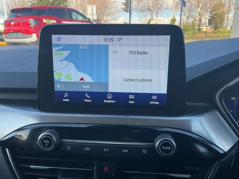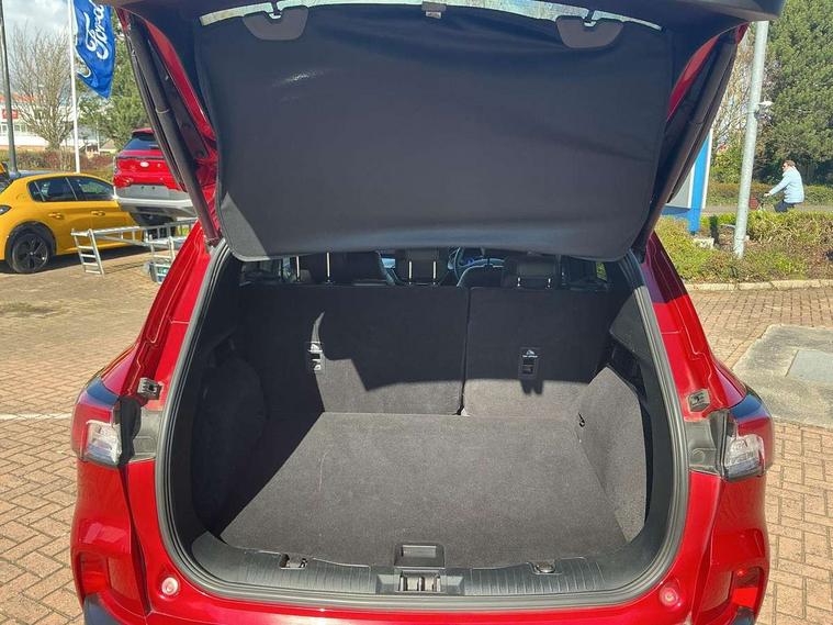 12.3" digital colour instrument cluster, Ford easy fuel, Ford SYNC 3 with 8" TFT LCD touchscreen, App Link, andriod auto/apple carPlay, emergency assistance and navigation with Ford pass connect, Front and rear parking sensors, Hands free power tailgate, Lane keeping aid with lane departure warning, Power assist steering, Rear view camera, Selectable drive modes, Service interval indicator, Standard suspension, Twist beam rear suspension, B&O premium audio system with 10 speakers and subwoofer, 2 USB ports, DAB radio/CD, Auto dimming rear view mirror, Auto headlamps with high and low beam, Auto wipers, Front LED fog lamps, LED daytime running lights, LED rear lights, Power folding heated door mirrors with puddle lights, Power front/rear windows with global close, Privacy glass, Quickclear heated windscreen, Rear side wing doors, Rear spoiler, Rear wiper, Silver roof rails, Third brake light, Twin exhausts, 10 way power adjustable drivers seat, 2nd row sliding seats with 60:40 split, 8 way manual passenger seat including lumbar support and height adjust, Ambient lighting, Centre console with electronic parking brake, Electronic automatic temperature control (EATC), Front and rear floor mats, Front and rear head restraints, Partial premium touch sensico leather upholstery with black cloth inserts, Rear charging point, Single front passenger seat, Sports seats, 3x3 point rear seatbelts, Airbags - front driver/passenger, front and rear curtain, Drivers knee airbag, Electronic stability control (ESC) and ABS, Ford MyKey Gen 2 safety system, Manual child proof rear door locks, Post collision braking, Pre collision assist with autonomous emergency braking, Rear seat Occupancy alert, Tyre pressure monitoring system, Engine immobiliser, Keyless entry and Ford power start button (Keyless start), Locking wheel nuts, Remote powered central double locking doors, Thatcham category 1 alarm, 18" 5x2 spoke magnetic and machined finish alloy wheels,