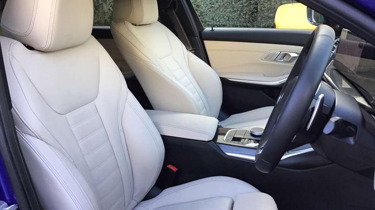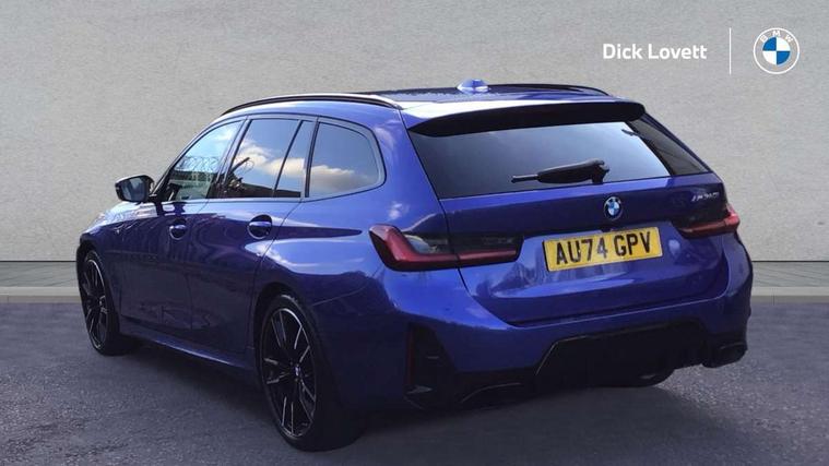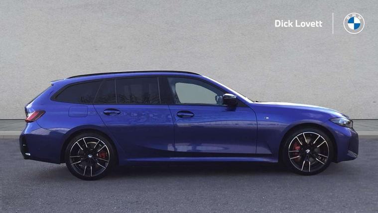 Active guard plus, Attentiveness assist, Automatic Start/stop button, BMW iDrive, BMW Teleservices, Condition based service, ConnectedDrive Services, Driving experience switch, Electric bootlid, Oil sensor for level and grade, PAS, Preparation for driver assistance, Shifting point display, Variable sport steering, 48V Mild hybrid technology, Double joint spring strut front axle, Fuel tank breather system, M Sport differential, Sport automatic transmission with steering-wheel mounted gearshift paddles and launch control, DAB tuner, 3rd brake light, Auto dimming rear view mirror, Auto dimming with folding wing mirrors, Automated High beam assist, Automatic headlight beam throw control with load dependent regulating reaction, dynamic compensation of braking dive and acceleration squat, BMW emblem, engine compartment lid and tailgate, BMW individual lights shadow line, BMW M Individual high gloss shadow line with extended contents, Body colour roof fin, Door sill strips, Electric windows - front and rear, with open/close fingertip control, anti-trap facility and comfort closing, Follow me home headlight function, Front and rear bumper system with replaceable deformation elements, Front apron plastic in body colour, Fuel filler flap - right rear in body colour, Heated washer jets, High gloss shadow line exterior trim, High gloss shadow line roof rails, Illuminated bow type door handles in body colour drivers side with door lock, Interior rear view electrochromatic mirror with automatic anti dazzle function, LED rear lights, Licence plate panel integrated into front bumper and tailgate, Matt black B-pillar finsher, Matt black window recess cover, Model designation on right side of tailgate, One piece front bumper cover including towing eye cover in body colour, Rain sensor with automatic headlight activation, Rear side wing doors, Rear wiper, Reversing lights, Side frame decorative moulding black matt, Sun protection glass, Visible exhaust tailpipe finisher, Welcome lights in interior and door handle area, 12V power socket in front storage compartment, 2 front cupholder in centre console with clamping elements and matt black inlay, 3 seat bench in 2nd row, 3 zone automatic air conditioning, 40:20:40 split folding rear seat with loading system, Ambient inside door handle light, Ambient light design projected onto the left and right entering and exiting area, Ambient lighting front and rear with 9 selectable colours, Ambient storage compartment lighting in the centre console, Anthracite headlining, Armrest integrated in front and rear door trim + front centre console armrest, BMW ID, Contour lighting in instrument panel and door trim panel, Cruise control operation in steering wheel, Driving experience mode switch, Electric memory seats, Extended storage, Folding rear centre armrest with 2 cupholders, Front and rear ambient footwell lighting, Front and rear door exit lighting (left / right), Front and rear headrests, Front and rear reading lights, Front and rear velour floor mats, Heated front seats, Height adjustable mechanically and infinitely variable steering column, Illuminated armrest storage compartment, Illuminated glove compartment, Illuminated luggage compartment, Lashing eyelets in luggage compartment, M Sport multifunction leather steering wheel, Make-up mirror lights, Single front passenger seat, Standard seat for driver and passenger with manual adjustment, Sunvisors with illuminated vanity mirrors and ticket pocket, Toolkit located in luggage compartment, Connected pack professional - 3 Series Saloon/Touring, Interior and exterior mirror pack - 3 Series Touring/Saloon, M Aerodynamics package - 3 Series Saloon/Touring, M sport exterior styling pack - 3 Series Saloon/Touring, Storage compartment pack - 3 Series Saloon/Touring, 3x3 point rear seatbelts, BMW emergency call, Child locks on rear doors, Crash sensor activating of airbags, Unlocking doors, hazard warning lights, fuel cut off, interior lighting+activation of safety battery terminal clamp, Driver and front passenger with seat occupancy detection for driver's and passenger side, Driver and passenger side airbags, body protection at side and airbags deploy from seat backrests, Dynamic brake control, Dynamic stability control + (DSC+) - Anti-lock Braking System (ABS) with brake assist and cornering brake control + Automatic Stability Control (ASC), Dynamic Traction Control - DTC, Electric parking brake including automatic hold function and automatic release of the parking brake when driving off, Electronic differential lock control (EDLC), Front airbag deactivation, Head airbags in 1st and 2nd row, head protection at side, curtain airbags open from headliner above 1st and 2nd row, M sport seatbelt, Plastic fuel tank, Side impact protection, Tyre pressure monitoring with three level warning strategy, Ventilated front and rear disc brakes, Warning triangle and first aid kit, Alarm system, Centre lock switch, Closing system with central locking, Electronic vehicle immobiliser, Locking wheel bolts, Tyre repair kit,