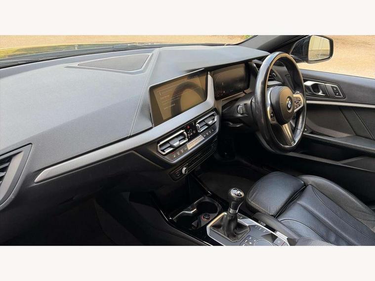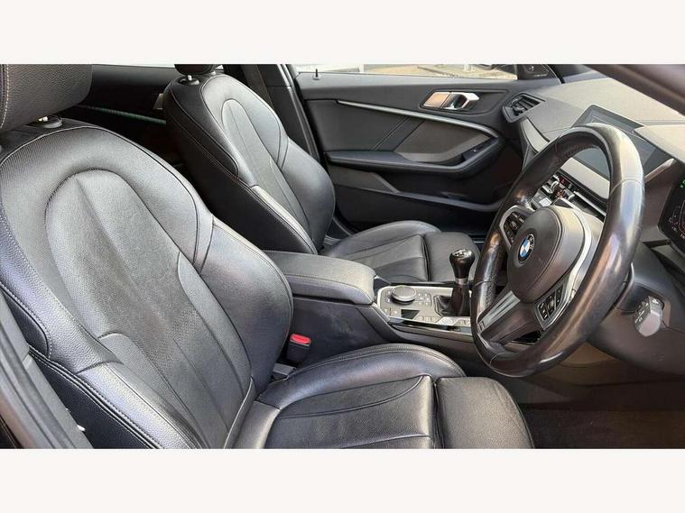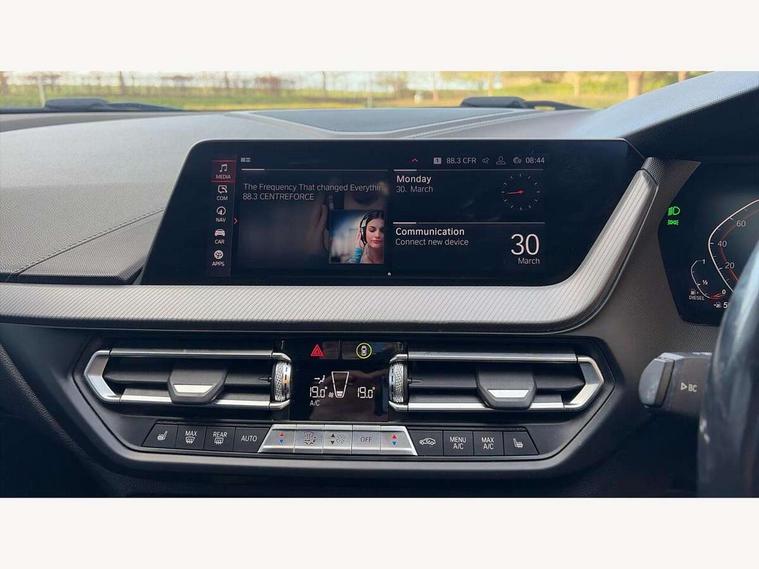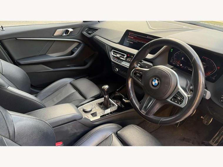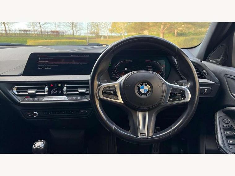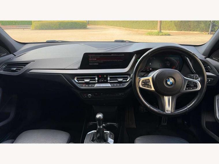 Active guard plus, Attentiveness assist, BMW Online services, BMW Teleservices, Check Control warning system for monitoring of lights and door/luggage compartment open warning, Connected eDrive Services, Cruise control with brake assist, Eco pro mode, Electric power steering, Integrated owners handbook, Lane departure warning system, On board computer, Optimum shift indicator, Personal Profile, Pull away assistant, Speed limiter, Anti roll bar front and rear, Balancer shaft, Diesel particulate filter, Drive Performance Control, Electronic differential lock, Bluetooth audio streaming, DAB Digital radio, Auto dimming rear view mirror, Body colour door handles, Body colour mirror caps, Chrome 'M' logo side designation, Chrome exhaust tailpipe in single, round (Exhaust tailpipe, stainless steel - single, round), Chrome kidney grille frame with Satin Aluminium struts, Direction indicator side lights in exterior mirrors, Electric folding and anti dazzle exterior mirrors, Fading support, Follow me home headlights, Front and rear electric windows with open and close fingertip control, anti trap facility and comfort closing, Front door sill finishers in black plastic with BMW designation, Green tinted heat protection glazing, Headlight beam throw control, High gloss shadow line exterior trim, High level third brake light, LED daytime running lights, LED front fog lights, Lightweight engineering, Matt black air guide grilles, Matt black roof moulding, B pillar finisher and wheel arch trim, Matt black window frame, Model designation on right side of tailgate, Nearside reverse light in rear light cluster, Rain sensor including auto headlights activation, Rear fog lights, Rear window wiper, Shark fin antenna, Visible VIN plate, Welcome lighting, Windscreen wipers with integrated washing jets, 12V power socket in centre console, 2 cupholders in front centre console, 3 rear seat head restraints, 3 spoke M sports design leather steering wheel finished in nappa leather with specific M badge, Anthracite headlining, Anthracite Velour floor mats, Child seat ISOFIX attachment for two outer rear seats and front passenger seat with anchorage points, Conditioned based service, Dakota leather upholstery with perforation and contrast stitching, Driver and front passenger seat heating, Driver side folding compartment in instrument panel, Folding rear clothes hook, Folding rear seats, Four grab handles integrated in roof lining, Front and rear door pockets, Front and rear side armrest integrated into door trim, Front armrest foldable with integrated storage compartment, Front sports seats with electric side bolster adjustment, Gearshift lever with M designation, Glove compartment, Height adjustable front head restraints, Manual adjust steering wheel, Multi-function controls for steering wheel, Rear seat backrest with manual 60:40 split folding with 3 top tether clips integrated on rear of seat panels, Storage compartment in centre console, Sun visors with vanity mirrors and insert tab, Two zone automatic air conditioning, Extended Lighting pack - 1 Series, Extended storage pack - 1 Series, Interior lights pack - 1 Series, Luggage compartment pack - 1 Series, M Sport exterior styling aerodynamics pack - 1 Series, 2 tone horn, 3 point seatbelts on all seats, front pyrotechnic belt tensioners, stopper and belt force limiters, rear coded belt buckles, Airbags - Front driver and passenger, front and rear head, front side, curtain head protection, Anti lock braking system (ABS) with brake assist, BMW emergency call, Brake drying, Braking readiness, City braking function, Crash sensor activating central locking release, hazard warning lights, fuel cut off, interior lighting + activation of safety battery terminal clamp, Driver and front passenger seat belt security check, Dynamic stability control + (DSC+), Dynamic Traction Control - DTC, Electrically operated hand brake, Front passenger manual airbag deactivation, Rear child proof door locks, Seatbelt warning, Side impact protection, Tyre pressure monitoring system, Warning triangle and first aid kit, Automatic drive away locking facility, Central locking switch for all doors, fuel filler cap and luggage compartment, Deadlocking function system to all doors, Incorrect fuel protection system, Locking wheel bolts, Remote control with integrated key with High-gloss Black inlay and M designation and 1 button for open/ close lock, window, open luggage compartment, Start/stop button with comfort go keyless engine start and auto start stop deactivation button, Thatcham Cat.1 alarm and immobiliser, Contrast stitching on instrument panel, Reduced rolling resistance tyres,