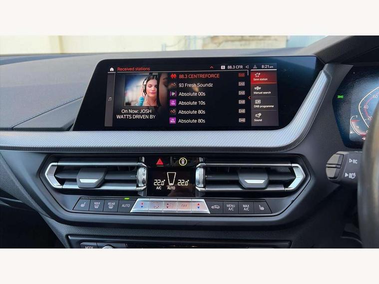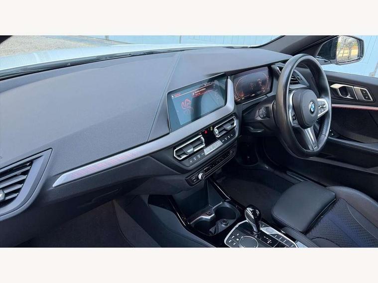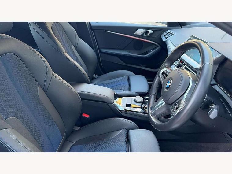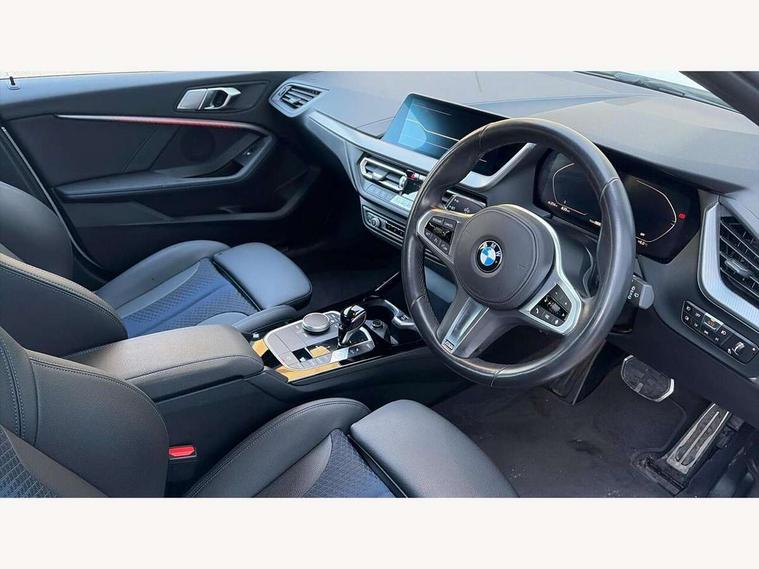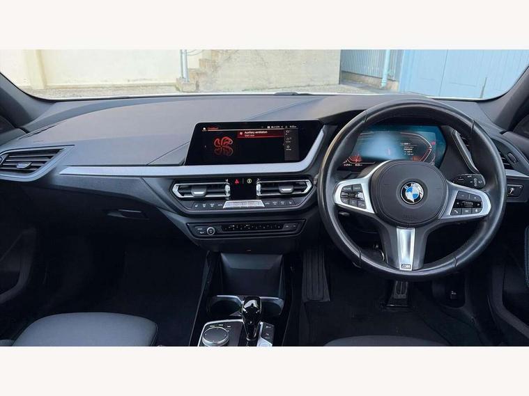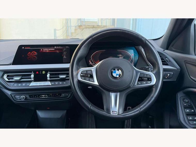 Active guard plus, Attentiveness assist, BMW ConnectedDrive online services, BMW Teleservices, Check Control warning system for monitoring of lights and door/luggage compartment open warning, Cruise control with brake assist, Eco pro mode, Front axle single joint with specific axle kinematics to minimise drive influences on steering + provide increased rigidity agile driving behaviour, Integrated owners handbook, Lane departure warning system, Oil sensor for level and grade, On board computer, Optimum shift indicator, Personal Profile, Pull away assistant, Rigidly mounted rear subframe - Multi link construction with separate spring / damper configuration and excellent driving characteristics, Speed limit Info including no-overtaking indicator, Speed limiter, Aluminium lightweight construction, Anti roll bar front and rear, Balancer shaft, Double VANOS twin scroll turbocharging system, Drive Performance Control, Electronic differential lock, High precision injection, M sport suspension, Petrol Particulate Filter, Twin tube gas filled shock absorbers with degressive characteristic curve, VALVETRONIC engine management, DAB Digital radio, Auto dimming rear view mirror, Automatic headlight beam throw control, Automatic windscreen wipers and automatic headlight, Body colour door handles, Body colour mirror caps, Body colour roof trims, Chrome 'M' logo side designation, Chrome exhaust twin tailpipes round 90mm in left, Chrome kidney grille frame with Satin Aluminium struts, Direction indicator side lights in exterior mirrors, Fading support, Folding side mirrors with auto dimming/folding wing mirrors with auto dimming, Follow me home headlights, Front and rear bumper system with replaceable deformation elements, Front and rear electric windows with open and close fingertip control, anti trap facility and comfort closing, Front door sill finishers in black plastic with M designation in metallic look, Green tinted heat protection glazing, Heated, electrically adjustable exterior mirror aspheric on driver side, convex on passenger side, High gloss shadowline window frame, Recess cover mirror frames and B/C pillar embelisher trim, High level third brake light, Integrated front windscreen with washer jets, LED daytime running lights, LED eyebrow turn indicators, LED front fog lights, LED Headlights, Lightweight engineering, Matt black air guide grilles, Matt black wheel arch trim, Model designation on electric bootlid, Nearside reverse light in rear light cluster, Preparation for high beam assistant, Rear fog lights, Rear side wing doors, Rear window wiper, Shark fin antenna, Trailer stabilisation logic, Visible VIN plate, Welcome lighting, 12V power socket in front centre console with blanking plug, 3 rear seat head restraints, 3 seat bench in 2nd row, 3 spoke sports leather steering wheel with black leather and stitching, pearl chrome decorative finish, specific M Badge, Anthracite headlining, Black boot net with lashing eyes, Cargo function on 2nd seat row, Child seat ISOFIX attachment for two outer rear seats and front passenger seat with anchorage points, Conditioned based service, Driver and front passenger seat heating, Folding rear clothes hook, Four grab handles integrated in roof lining, Front and rear door pockets with bottle holders, Front and rear side armrest integrated into door trim, Front armrest, Front sports seats, Glove compartment, Height adjustable front head restraints, Luggage compartment for bag hooks on left and right, foldable luggage compartment liner and four lashing eyelets, Manual adjust steering wheel, Multi-function controls for steering wheel, Single front passenger seat, Storage compartment in centre console, Sun visors with vanity mirrors and insert tab, Two front centre console cupholders, Two zone automatic air conditioning, Velour floor mats, Additional interior lighting pack - 1 Series, BMW live cockpit professional pack- 1 Series, Connected pack professional - 1 Series, Interior lights pack - 1 Series, M Sport exterior styling aerodynamics pack - 1 Series, 2 tone horn, 3 point seatbelts on all seats, front pyrotechnic belt tensioners, stopper and belt force limiters, rear coded belt buckles, Airbags - Front driver/passenger, front and rear curtain head protection, front side, manual deactivation of front passenger airbag, Anti lock braking system (ABS) with brake assist, BMW emergency call, Brake drying, Braking readiness, Child proof locking system in rear door, City braking function, Comfort modes, Cornering brake control, Crash sensor activating central locking release, hazard warning lights, fuel cut off, interior lighting + activation of safety battery terminal clamp, Driver and front passenger seat belt security check, Dynamic stability control + (DSC+), Dynamic Traction Control - DTC, Electrically operated hand brake including automatic hold function, Front and rear disc brakes, Seatbelt warning, Side impact protection, Tyre pressure monitoring system, Warning triangle and first aid kit, Central locking switch for all doors, fuel filler cap and luggage compartment, Deadlocking function system to all doors, Drive away locking system on all doors and luggage compartment with de-activated in iDrive settings, Locking wheel bolts, Remote control with integrated key with High-gloss Black inlay and M designation and 1 button for open/ close lock, window, open luggage compartment, Start/stop button illuminated in centre console with keyless engine start and auto start stop deactivation button, Thatcham Cat.1 alarm and immobiliser, Wheel slip limitation close to the actuator (ARB), Contrast stitching on instrument panel, Electrically powered 12V compressor, Reduced rolling resistance tyres,