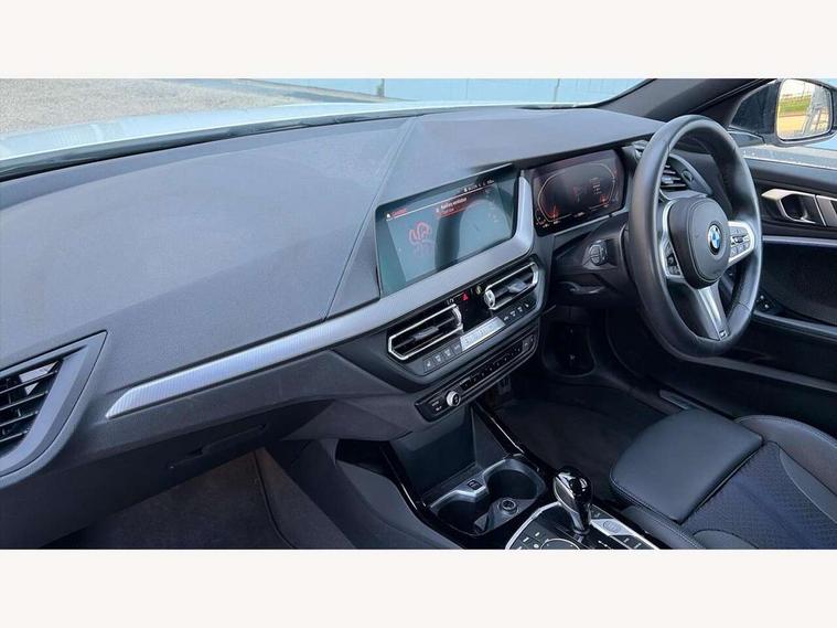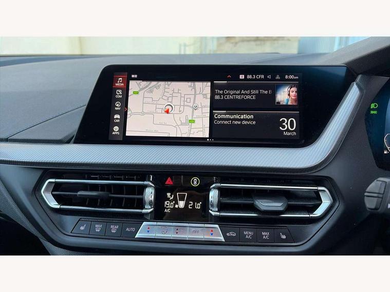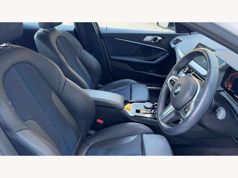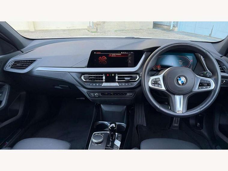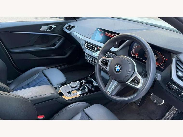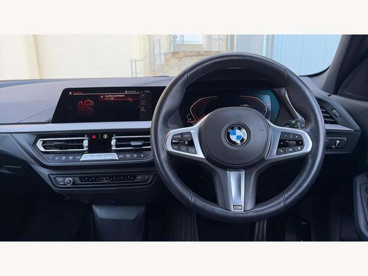 Active guard plus, Attentiveness assist, BMW ConnectedDrive online services, BMW Teleservices, Check Control warning system for monitoring of lights and door/luggage compartment open warning, Cruise control with brake assist, Eco pro mode, Front axle single joint with specific axle kinematics to minimise drive influences on steering + provide increased rigidity agile driving behaviour, Integrated owners handbook, Lane departure warning system, Oil sensor for level and grade, On board computer, Optimum shift indicator, Personal Profile, Pull away assistant, Rigidly mounted rear subframe - Multi link construction with separate spring / damper configuration and excellent driving characteristics, Speed limit Info including no-overtaking indicator, Speed limiter, Aluminium lightweight construction, Anti roll bar front and rear, Balancer shaft, Double VANOS twin scroll turbocharging system, Drive Performance Control, Electronic differential lock, High precision injection, M sport suspension, Petrol Particulate Filter, Twin tube gas filled shock absorbers with degressive characteristic curve, VALVETRONIC engine management, DAB Digital radio, Auto dimming rear view mirror, Automatic headlight beam throw control, Automatic windscreen wipers and automatic headlight, Body colour door handles, Body colour mirror caps, Body colour roof trims, Chrome 'M' logo side designation, Chrome exhaust twin tailpipes round 90mm in left, Chrome kidney grille frame with Satin Aluminium struts, Direction indicator side lights in exterior mirrors, Fading support, Folding side mirrors with auto dimming/folding wing mirrors with auto dimming, Follow me home headlights, Front and rear bumper system with replaceable deformation elements, Front and rear electric windows with open and close fingertip control, anti trap facility and comfort closing, Front door sill finishers in black plastic with M designation in metallic look, Green tinted heat protection glazing, Heated, electrically adjustable exterior mirror aspheric on driver side, convex on passenger side, High gloss shadowline window frame, Recess cover mirror frames and B/C pillar embelisher trim, High level third brake light, Integrated front windscreen with washer jets, LED daytime running lights, LED eyebrow turn indicators, LED front fog lights, LED Headlights, Lightweight engineering, Matt black air guide grilles, Matt black wheel arch trim, Model designation on electric bootlid, Nearside reverse light in rear light cluster, Preparation for high beam assistant, Rear fog lights, Rear side wing doors, Rear window wiper, Shark fin antenna, Trailer stabilisation logic, Visible VIN plate, Welcome lighting, 12V power socket in front centre console with blanking plug, 3 rear seat head restraints, 3 seat bench in 2nd row, 3 spoke sports leather steering wheel with black leather and stitching, pearl chrome decorative finish, specific M Badge, Anthracite headlining, Black boot net with lashing eyes, Cargo function on 2nd seat row, Child seat ISOFIX attachment for two outer rear seats and front passenger seat with anchorage points, Conditioned based service, Driver and front passenger seat heating, Folding rear clothes hook, Four grab handles integrated in roof lining, Front and rear door pockets with bottle holders, Front and rear side armrest integrated into door trim, Front armrest, Front sports seats, Glove compartment, Height adjustable front head restraints, Luggage compartment for bag hooks on left and right, foldable luggage compartment liner and four lashing eyelets, Manual adjust steering wheel, Multi-function controls for steering wheel, Single front passenger seat, Storage compartment in centre console, Sun visors with vanity mirrors and insert tab, Two front centre console cupholders, Two zone automatic air conditioning, Velour floor mats, Additional interior lighting pack - 1 Series, BMW live cockpit professional pack- 1 Series, Connected pack professional - 1 Series, Interior lights pack - 1 Series, M Sport exterior styling aerodynamics pack - 1 Series, 2 tone horn, 3 point seatbelts on all seats, front pyrotechnic belt tensioners, stopper and belt force limiters, rear coded belt buckles, Airbags - Front driver/passenger, front and rear curtain head protection, front side, manual deactivation of front passenger airbag, Anti lock braking system (ABS) with brake assist, BMW emergency call, Brake drying, Braking readiness, Child proof locking system in rear door, City braking function, Comfort modes, Cornering brake control, Crash sensor activating central locking release, hazard warning lights, fuel cut off, interior lighting + activation of safety battery terminal clamp, Driver and front passenger seat belt security check, Dynamic stability control + (DSC+), Dynamic Traction Control - DTC, Electrically operated hand brake including automatic hold function, Front and rear disc brakes, Seatbelt warning, Side impact protection, Tyre pressure monitoring system, Warning triangle and first aid kit, Central locking switch for all doors, fuel filler cap and luggage compartment, Deadlocking function system to all doors, Drive away locking system on all doors and luggage compartment with de-activated in iDrive settings, Locking wheel bolts, Remote control with integrated key with High-gloss Black inlay and M designation and 1 button for open/ close lock, window, open luggage compartment, Start/stop button illuminated in centre console with keyless engine start and auto start stop deactivation button, Thatcham Cat.1 alarm and immobiliser, Wheel slip limitation close to the actuator (ARB), Contrast stitching on instrument panel, Electrically powered 12V compressor, Reduced rolling resistance tyres,
