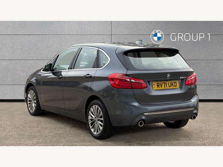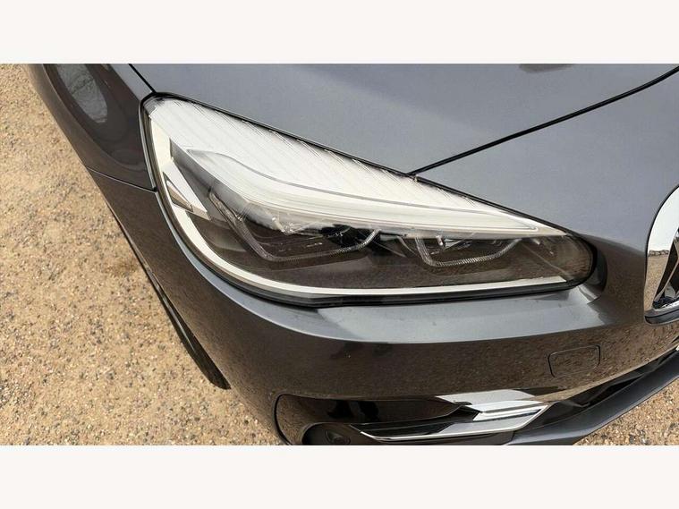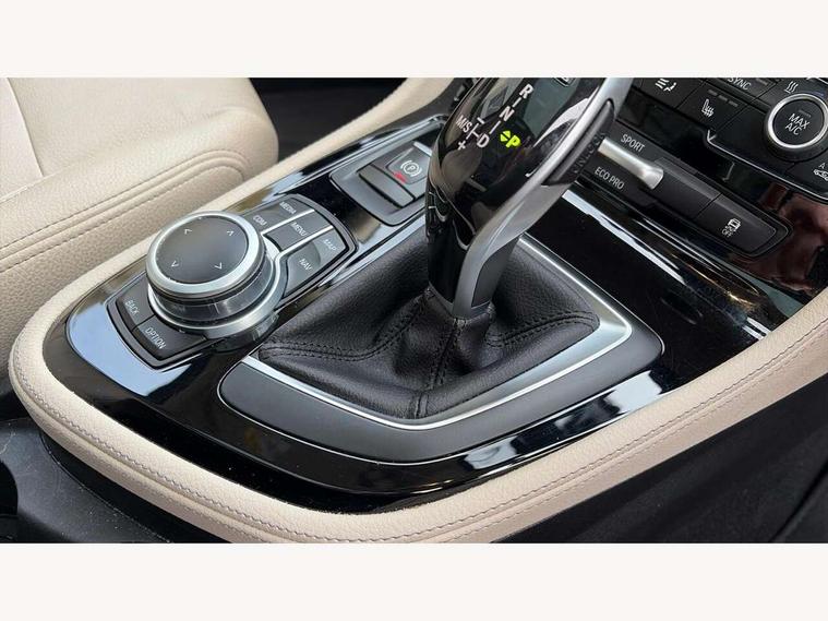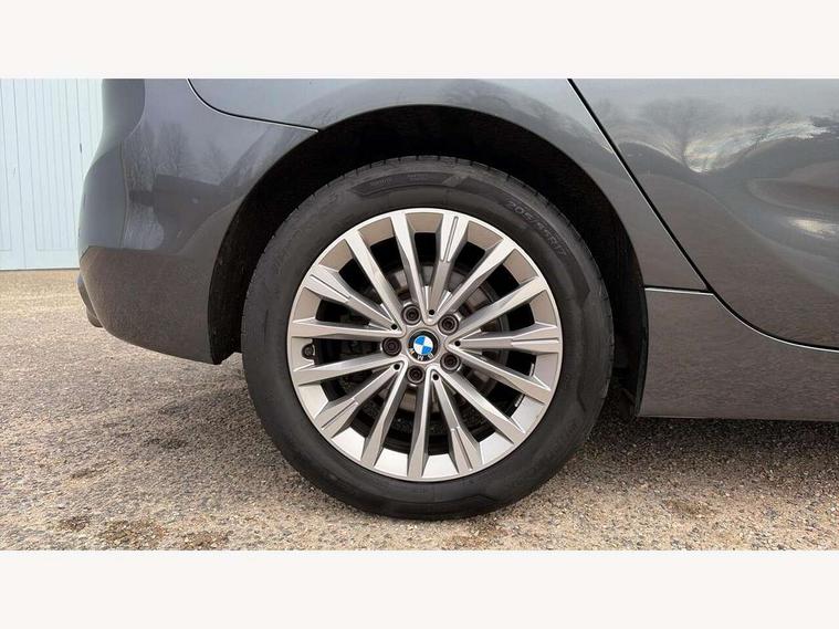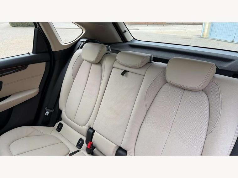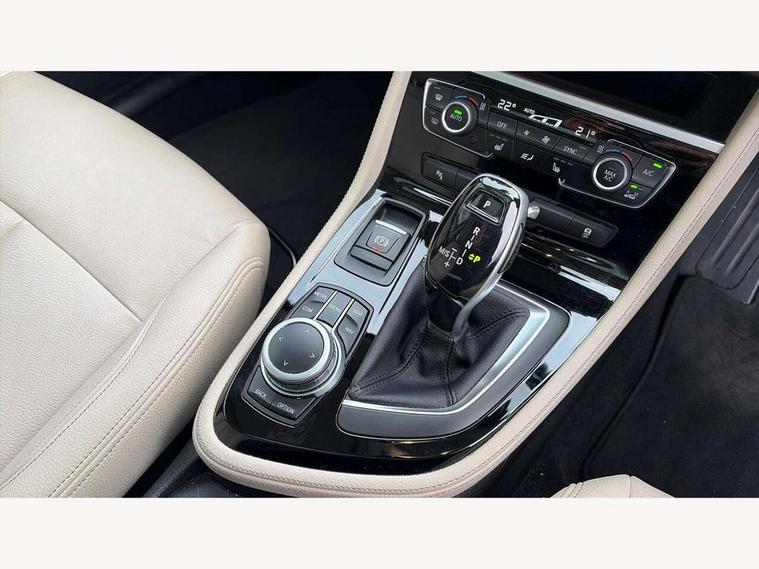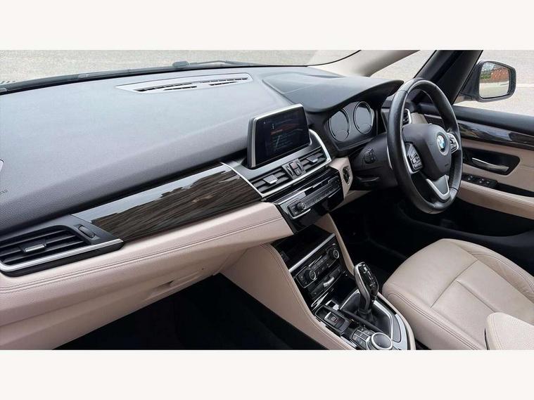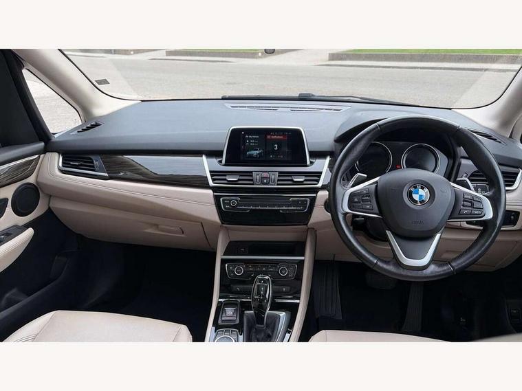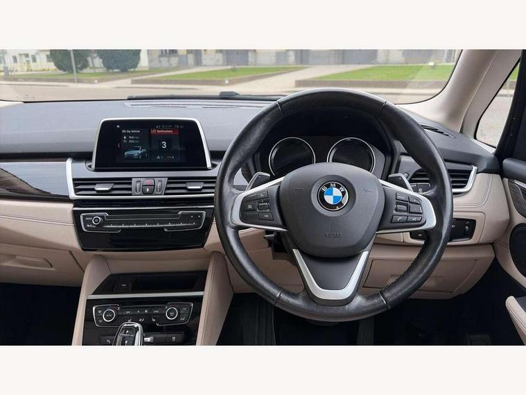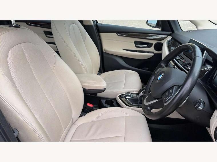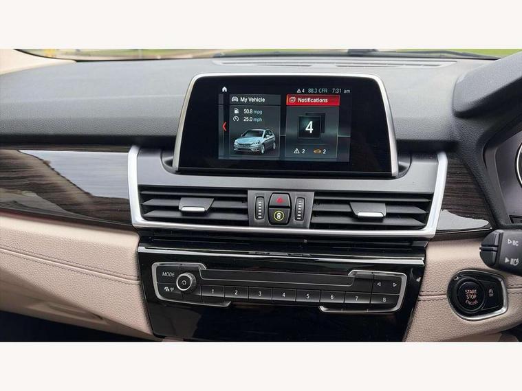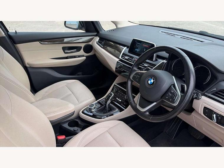 Active Guard incl speed limiting and lane departure functions with auto steering, and front collision warning with brake intervention, Apple car play, Attentiveness assist, BMW Online services, BMW remote services, BMW Teleservices, Brake pad wear indicator in front and rear, Check Control warning system for monitoring of lights and door/luggage compartment open warning, Electric bootlid, Front/rear park distance control (PDC), Instrument cluster with speedometer with miles per hour read out, tachometer and fuel gauge, Lights on warning by audio warning signal when ignition is switched off, On board computer - average speed+fuel consumption, service interval, clock/date, odometer/trip meter, outside temperature display and ice warning, Optimum shift indicator, Park assist system with steering assist, Personal Profile - automatic lock when driving away selectable, Real time traffic information, Servotronic variable electric power steering (EPS), Diesel particulate filter, Double VANOS twin scroll turbocharging system, Drive performance control with ECO PRO comfort + sport mode, Electronic differential lock, Incorrect fuelling protection, Intervention on the front axle when DSC deactivated, Sport automatic transmission, VALVETRONIC engine management, 6 speakers, BMW professional radio/CD/MP3, DAB Digital radio, Auto dimming rear view mirror, Automatic windscreen wipers and automatic headlight, Body colour - front and rear bumpers, door handles, mirror caps, roof mouldings, Chrome line exterior trim, Clear lenses direction indicator lights, Direction indicator side lights integrated exterior mirrors, Dynamic brake lights, Electric windows - front and rear, with open/close fingertip control, anti-trap facility and comfort closing, Electrically adjustable door mirrors with aspheric on driver side, convex on passenger side with integrated indicators, Exclusive front door sill finishers with BMW designation, Front air inlet with chrome finish, Green tinted heat protection glazing, Heated windscreen washer jets, High level third brake light, Kidney grille with 12 Chrome fronted vertical slats, LED front fog lights, Lightweight engineering, Model designation, Rear bumper with chrome finisher, Rear fog lights, Rear window aerial, Rear window wiper integrated under roof spoiler, Reversing light in rear light cluster, Shark fin antenna, Twin chrome exhaust tailpipes, Visible VIN plate, Welcome lighting, 12V power socket in centre console + front with blanking plug, Automatic two zone climate control air conditioning, Central locking switches for door, fuel filler cap and luggage compartment, Child seat ISOFIX attachment for two outer rear seats and front passenger seat with anchorage points, Conditioned based service, Dakota leather upholstery with perforation and contrast stitching, Folding rear seats, Four grab handles integrated in roof lining, Front and rear side armrest integrated into door trim, Front armrest, Front head restraints, Glovebox with light, Interior lighting, front centre over interior mirror and rear centre automatic interior light activation when door is opened, LED ambient lighting in door trim, Luggage compartment access via BMW roundel, Luggage compartment lighting, Multi-function controls for steering wheel, Rear centre armrest, Steering wheel column manual adjustment, Sunvisors with vanity mirrors and ticket pocket, Three rear headrests, Three spoke sport leather steering wheel, Two cupholders, Velour floor mats, Extended storage pack - 2 Series Active/Gran Tourer, Non-smoker package, 3 point seatbelts on all seats, front pyrotechnic belt tensioners, stopper and belt force limiters, rear coded belt buckles, Airbag - Front driver and passenger, front and rear head, front side, curtain head protection, manual deactivation of front passenger airbag possible, Anti lock braking system (ABS) with brake assist, Battery safety cut-off, BMW emergency call, Brake drying, Brake energy regeneration, Braking lock, Braking readiness, Child proof locking system in rear door, Crash Sensor - activates hazard/interior lighting + unlocks doors, Dynamic stability control + (DSC+), Dynamic Traction Control - DTC, Electrically operated hand brake, Front ventilated disc brakes, Hill start assist, Rear disc brakes, Seat belt security check for driver and front passenger, Side impact protection, Twin horns, Tyre pressure monitoring system, Warning triangle and first aid kit, Locking wheel bolts, Remote control with integrated key with silver highlight, Thatcham 1 alarm system with remote control and engine immobiliser, Contrast stitching on instrument panel, Reduced rolling resistance tyres,
