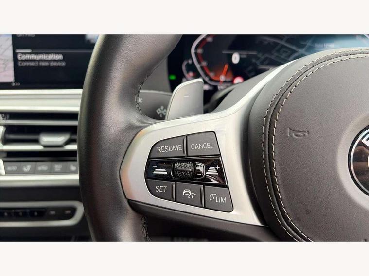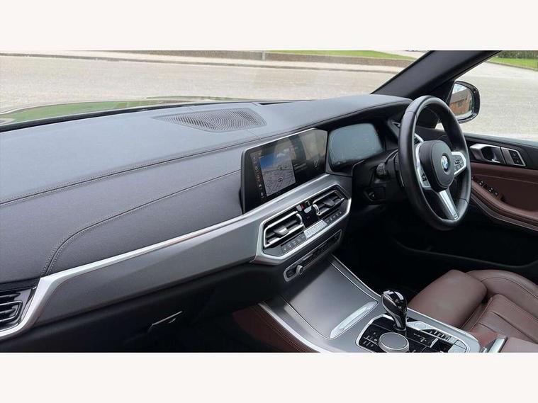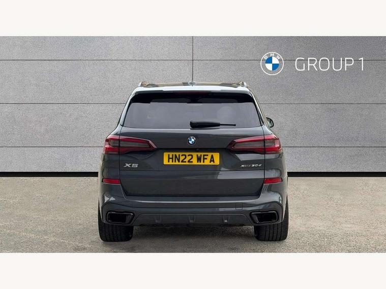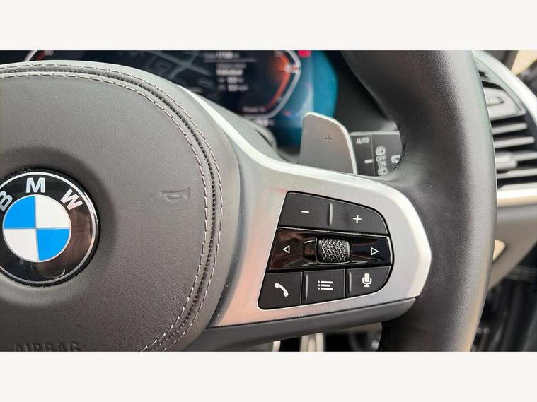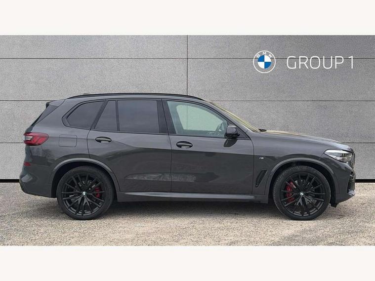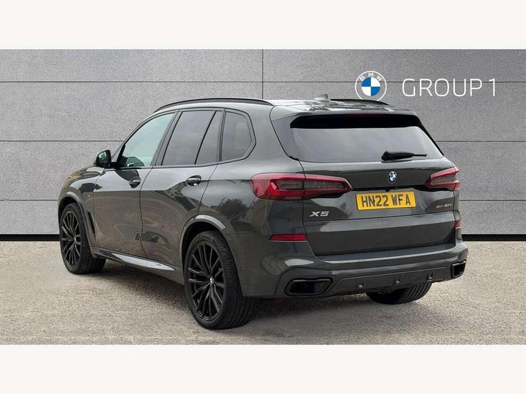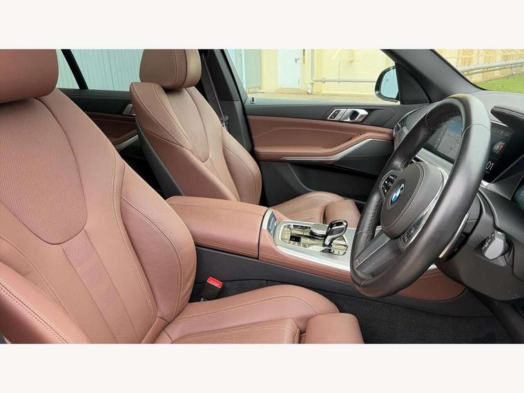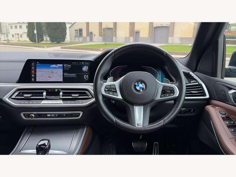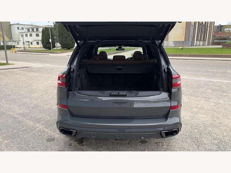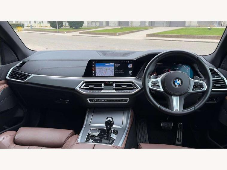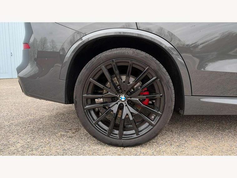 20GB hard disc drive (HDD) memory, Active guard plus, Attentiveness assist, Automatic tailgate with top hinged section open and manual bottom hinged section, BMW ConnectedDrive online services, BMW digital live cockpit professional - 12.3" digital instrument panel and 12.3" CID, with touch/voice command, BMW legal emergency call, BMW Teleservices, Brake force display, Brake pad wear indicator warning light, Cruise control with brake assist, Enhanced bluetooth with wireless charging, Front/rear park distance control, iDrive controller with shortcut buttons, Lights on warning, Oil sensor for level and grade, On board computer inc. average speed, fuel consumption, liquid crystal Info display, journey computer, outside temperature display, personal profile, Service interval indicator, Speed limit info display, Speed limiting function, Wi-Fi hotspot, 48V Mild hybrid technology, Adaptive 2-axle air suspension, Common rail technology, Diesel particulate filter, Double wishbone front axle, Drive performance control with ECO PRO comfort + sport mode, Eight speed steptronic sport automatic transmission and gearshift paddles on the steering wheel, Safety battery terminal clamp, Variable vane geometry, DAB Tuner enables digital radio reception, Favourite buttons, Hi-Fi loudspeaker system, USB connection, USB type A 1.5A in cupholder, USB Type C 3A in centre armrest, Active Air Stream kidney grille with high-gloss chrome, Adaptive air flap control bar in high-gloss black, Automatically dimming rear view mirror, BMW Individual high gloss black shadow line roof rails, BMW Individual high gloss shadow line, Body colour bumpers, Body colour door handles, Dynamic brake lights with LED technology, Exhaust tailpipes - single, left and right with Chrome finisher, Follow me home headlight function, Front and rear electric windows with open and close fingertip control, anti trap facility and comfort closing, Heated windscreen washer jets, High beam assistant, High gloss black outer and central air intakes on front bumper with pearlescent chrome finish, High gloss black Side elements, LED daytime running lights, LED rear lights, M aerodynamic body styling, M designation on left and right front side panels, Pearlescent chrome front grille bars, Rain sensor with automatic headlight activation and windscreen wiper control, Rear side wing doors, Satin aluminium side window graphic, Third brake light in rear spoiler, Variable intermittent rear wash/wipe, Welcome light carpet, X5 on left tailgate, xDrive designation on right tailgate, 12V - Power sockets with 2x centre console and 1x luggage compartment, 3 seat bench in 2nd row, 40:20:40 split folding rear seats, Ambient interior lighting with 6 pre-designed selectable lights including dynamic function, Centre and rear interior light, Child seat ISOFIX attachment with rear outer seats includes top tether, Compartment in front of cupholder, Electric front seat adjustment with driver and front passenger memory function, Electrical steering column with adjustable height and length with activation and control on the steering column, Foldable rear centre armrest with 2 cupholders and storage compartment, Front and rear cupholders x 2, Front and rear door pockets, Front and rear door sill inlays with illuminated BMW M designation, Front and rear side armrest integrated into door trim, Front footwell lights, Front reading lights, Light inside glove compartment, Lockable glove compartment, Luggage compartment floor panel with integral storage tray, Luggage compartment lighting, M leather steering wheel, M specific key, M specific steering wheel, Make-up mirror lights, Multifunction controls for leather steering wheel, Multifunctional hooks, Rear head restraints, Seat back with flap pocket, Securing rings in luggage compartment, Single front passenger seat, Storage bins on all doors, Storage tray and compartment with cover in centre console, Sunvisors with illuminated vanity mirrors, Toolkit located in luggage compartment, Velour floormats, Connected Package Professional - X5, Expanded exterior mirror pack - X5/X5 M, Non-smokers pack - X5, Airbags - driver/front passenger, rear and side, first and second row seats head airbags, front passenger seat airbag deactivation + knee airbag, Anti-lock braking system (ABS), Automatic Stability Control (ASC), Brake drying, Brake energy regeneration, Brake fade compensation, Braking pre-tensioning, Cornering brake control (CBC), Crash sensor activating central locking release, hazard warning lights, fuel cut off, interior lighting + activation of safety battery terminal clamp, Deformation zones - front and rear with door reinforcements and bumpers up to 2.5 mph, DSC - Dynamic Stability Control, Dynamic brake control, Dynamic Traction Control - DTC, Electromechanical parking brake with automatic drive away release and auto hold function, Electronic brake force distribution, Front and rear seatbelts with seatbelt stopper, seatbelt tensioner for front and outer rear seats and belt force limiter, Front head restraints with anti-whiplash, Height adjustable front seatbelts, Hill start assistant, Integrated brake system, M Sport braking system in blue high gloss + blue painted brake calipers with M designation, Mechanical child proof lock on rear doors, Passive protection for pedestrians, Seat occupancy detection for driver and passenger side, Side impact protection, Three 3 point inertia reel seatbelts, Two tone horn, Tyre pressure monitoring system, Ventilated front and rear disc brakes, Warning triangle and first aid kit, Closing system with central locking, Driver and front passenger door centre lock switch, Locking wheel bolts, Thatcham 1 alarm system with remote control and engine immobiliser, Start/stop toggle diamond shaped trim finisher in pearl chrome,