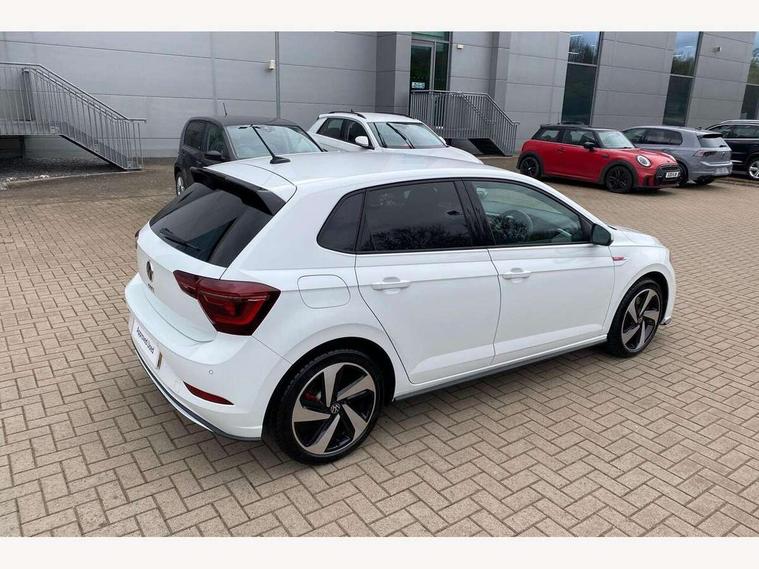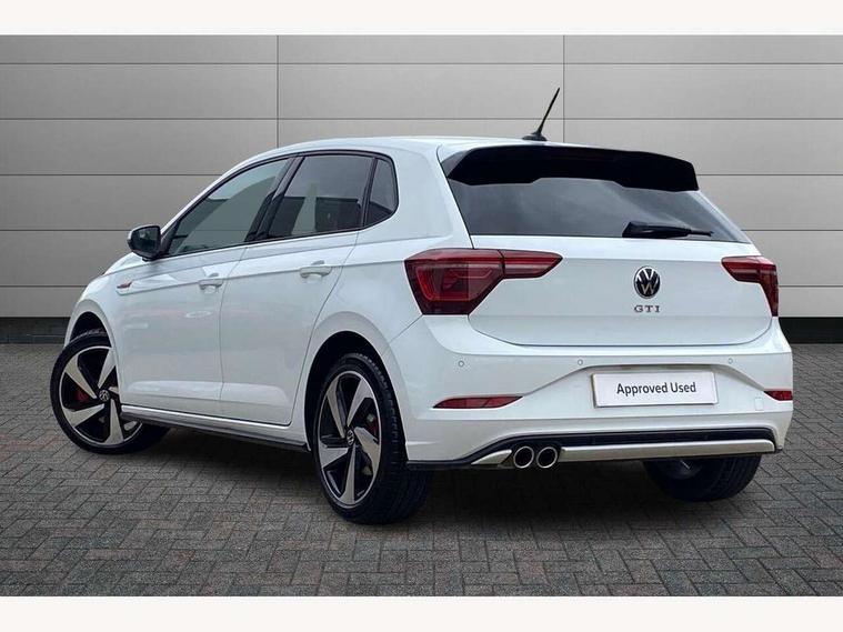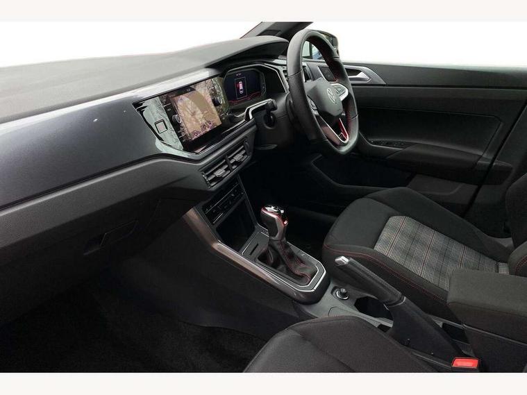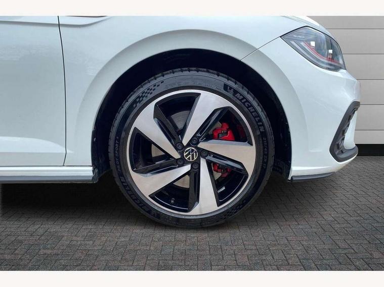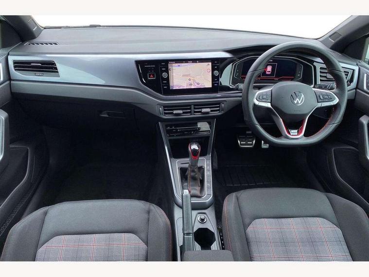 Adaptive cruise control with follow-to-stop and speed limiter, Advanced driver attention and drowsiness monitor, Bluetooth mobile phone interface, Digital Cockpit Pro with 10.25" Display, Dynamic road sign display, Eco mode, Emergency call service, Multifunction camera, Power assisted speed sensitive steering, Preparation for We connect and We connect plus, Speedo and rev counter, electronic odometer, trip, service interval display and fuel gauge, Travel Assist - Lane keeping system and traffic jam assist, Travel assist including emergency assist, Trip computer, Warning signal and warning light for front and rear seatbelts not fastened, Washer fluid level indicator, Wireless app connect, Adaptive chassis control, Front wheel drive, Heavy duty rear axle, Rear shock absorpion sports version, Sports select suspension lowered by 15mm, Start-stop system with battery regeneration (recuperation - energy recovery during braking), DAB Digital radio, Diversity antenna for FM reception, Front and rear 6 speakers, Body colour bumpers, Body colour door handles, Electric front windows, Front scuff plates in aluminium with GTI logo, Heat insulating glass windscreen, Power folding adjustable/heated exterior mirrors and front passenger exterior mirror lowering function, Rain sensor, Rear electric windows, Rear fog light, Rear side wing doors, Rear windscreen washer and wiper with interval delay, Sport bumpers with air intakes with honeycomb structure, Third brake light, Twin chrome exhaust tailpipes, 12V power socket in centre console, 2 USB-C ports in the front, 2 USB-C charging sockets on the center console in the rear, 3 rear head restraints, 60/40 split folding rear seat and rear seat bench not split, Air care climatronic air conditoning system with active combination filter and 2-zone temperature control, Black roof lining, Carpet mats, front and rear, Chrome plated radiator grille inserts, air vent surrounds and light switch surrounds, Door and side trim panel, Driver and front passenger seat height adjustment, Driver/passenger sunvisors with illuminated vanity mirrors, Front centre armrest, Front footwell illumination, Front seat backrest storage pockets, GTI sports gearshift knob in aluminium leather, Handbrake lever handle in leather, Headliner in recycled material, Isofix child seat preparation easy-fit (for two outer rear seats, and front passenger seat) compatible with I-size, LED interior light with switch off delay and dimmer, 2 reading lights front and rear, Luggage compartment cover, Luggage compartment floor, Luggage compartment lighting, Lumbar adjustment for front seats, Single front passenger seat, Stainless steel pedals, Standard pedal cluster, Three spoke leather wrapped multifunction sports steering wheel with shifting paddles, IQ LED matrix headlights pack - Polo, Light and sight pack - Polo GTI, 3 point height adj front seatbelts + pretensioners, 3x3 point rear seatbelts, ABS, Driver and front passenger airbag with front passenger airbag deactivation, Drivers and front passengers safety optimised head restraints, ESC (Electronic stability control) + EDL (Electronic Differntial lock) and ASR (Traction control), Extended and predictive pedestrian/ cyclist protection, Front and rear disc brakes with red brake calipers, Front curtain and side airbags with center airbag, Hill hold control, Manual child lock in rear doors, Two tone horn, Tyre pressure loss indicator, Alarm with interior protection, Anti-theft alarm system with interior monitoring, backup horn, and towing protection, Anti-theft wheel bolts, Electronic engine immobiliser, Chrome applications on rotary light, mirror adjustment, window regulator switches, outlet with frame in black, Low rolling resistance tyres,