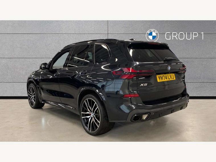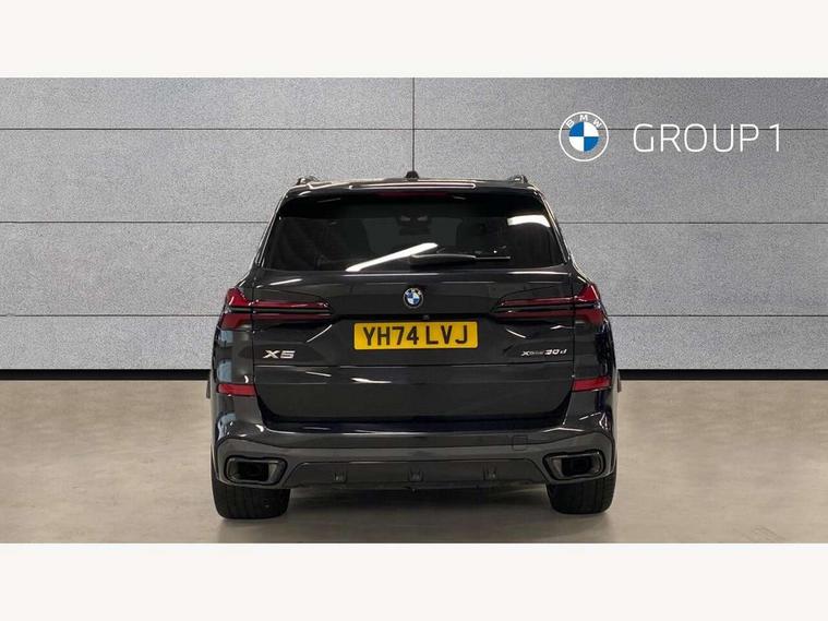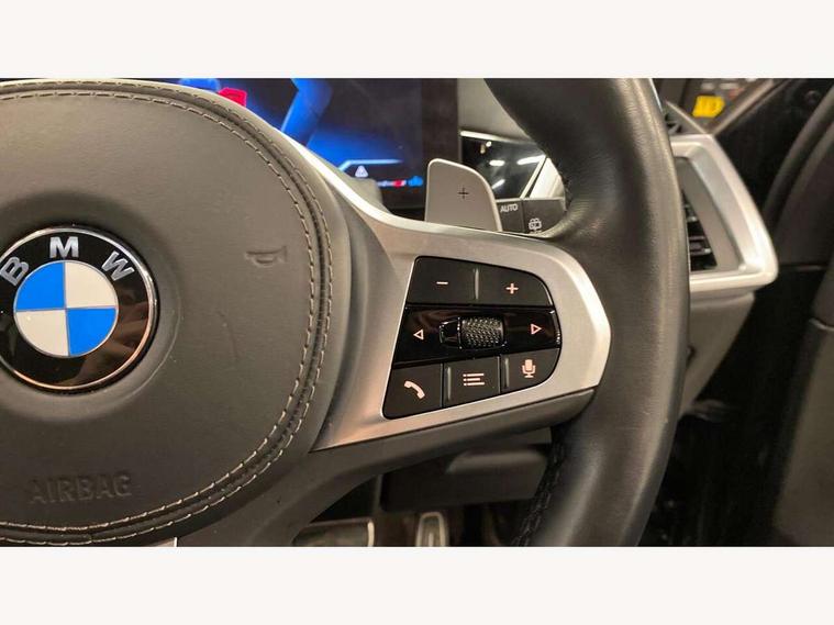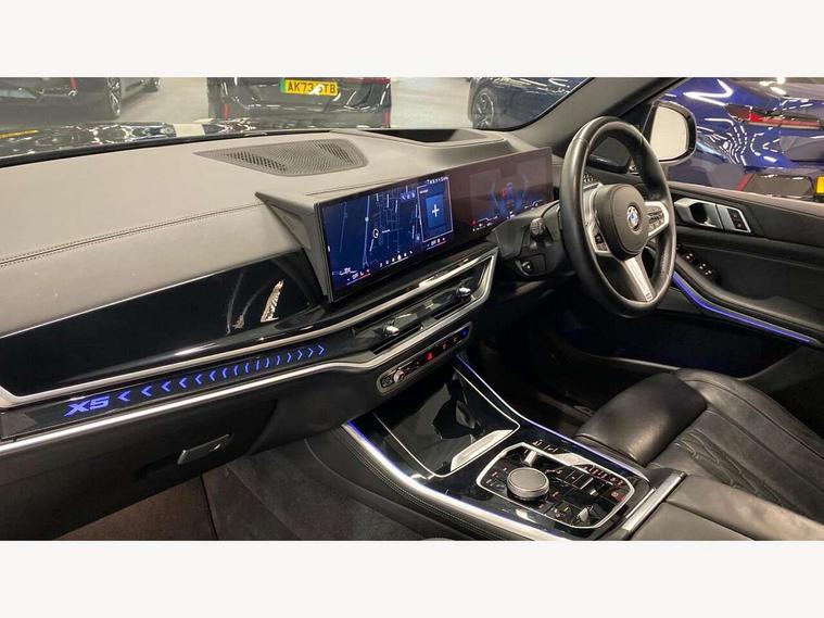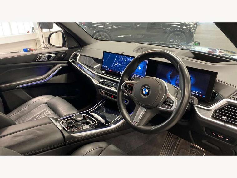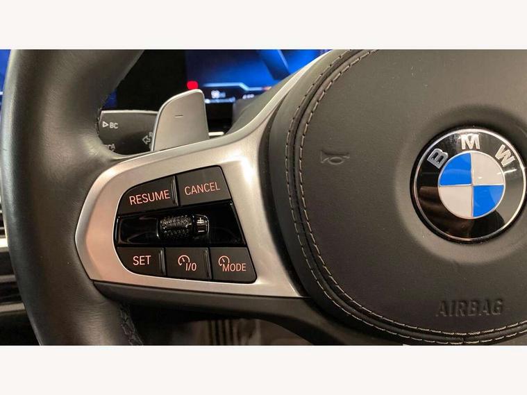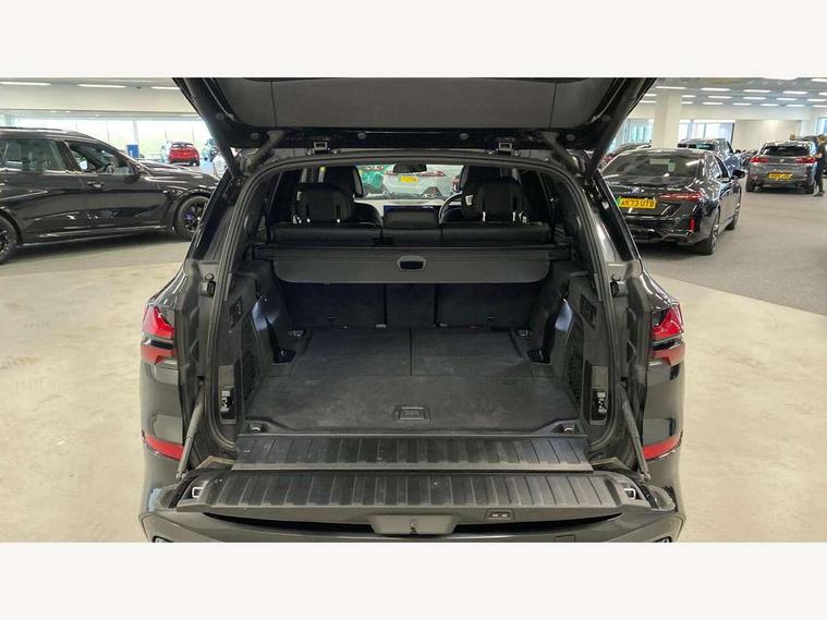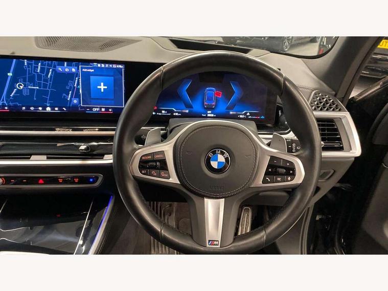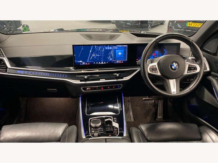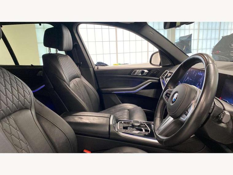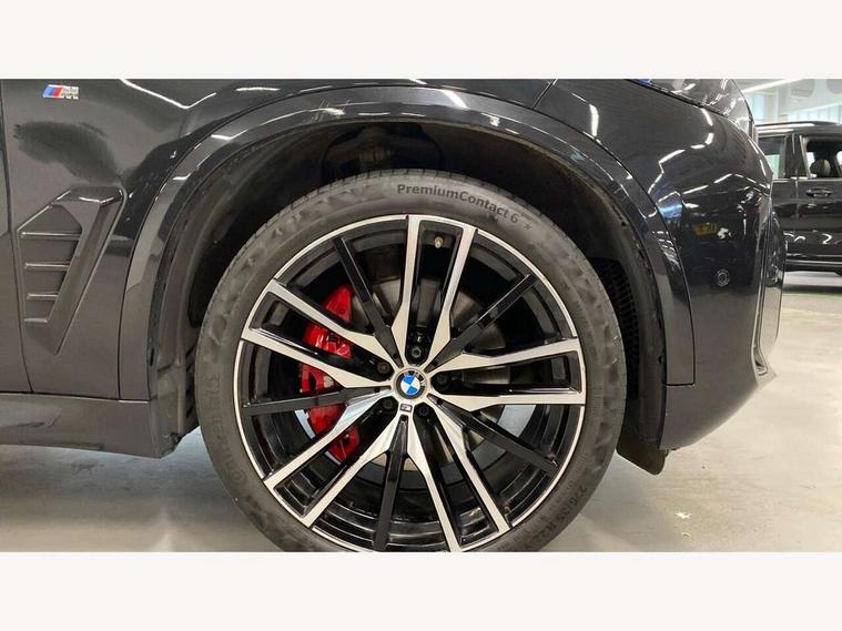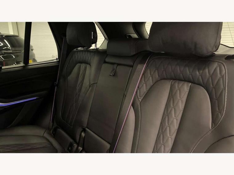 Attentiveness assist, Automatic tailgate operation, BMW ConnectedDrive online services, BMW live cockpit + with curved 12.3 instrument cluster/14.9 central display, nav/Tuner with diversity reception, RDS/4GLTE/remote software upgrade, BMW Recovery system, BMW Teleservices, Condition based service, Cruise control with brake assist, eCall emergency call system, Enhanced bluetooth with wireless charging, Integrated owner's handbook, PAS, Speed limiter, Wi-Fi hotspot, Adaptive 2-axle Front and rear air suspension, Drive performance control with ECO PRO comfort + sport mode, Eight speed steptronic sport automatic transmission and gearshift paddles on the steering wheel, Hi-Fi loudspeaker system, Adaptive LED Headlights, Front and rear electric windows, High beam assistant, High gloss black shadow line roof rails, LED daytime running lights, Rain sensor, Rear side wing doors, Third brake light in rear spoiler, Variable intermittent rear wash/wipe, 12V - Power sockets with 2x centre console and 1x luggage compartment, 2 individual folding 3rd row seats, 3 seat bench in 2nd row, Foldable rear centre armrest with 2 cupholders and storage compartment, Front and rear side armrest integrated into door trim, Headrests for all seats, Luggage compartment separating net, Single front passenger seat, Three spoke sport M leather steering wheel, Velour floormats, Ambient light interior pack in combination with third row seating - X5, Driving assistant pack with radar based driver assistance system - X5, Expanded exterior mirror pack - X5/X5 M, Luggage compartment pack for 7 seater - X5, M aerodynamics pack - X5, 3 rear seatbelts, Active protection, Airbags - driver/front passenger, rear and side, first and second row seats head airbags, front passenger seat airbag deactivation + knee airbag, Anti-lock braking system (ABS), Automatic Stability Control (ASC), Brake energy regeneration, Cornering brake control (CBC), Crash sensor activating central locking release, hazard warning lights, fuel cut off, interior lighting + activation of safety battery terminal clamp, DSC - Dynamic Stability Control, Dynamic Traction Control - DTC, Electromechanical parking brake with automatic drive away release and auto hold function, Electronic brake force distribution, Hill start assistant, M Sport blue painted brake calipers with 'M' designation, Mechanical child proof lock on rear doors, Tyre pressure monitoring system, Tyre pressure sensors, Ventilated front and rear disc brakes, Warning triangle and first aid kit, Alarm system, Closing system with central locking, Comfort access system, Locking wheel bolts,