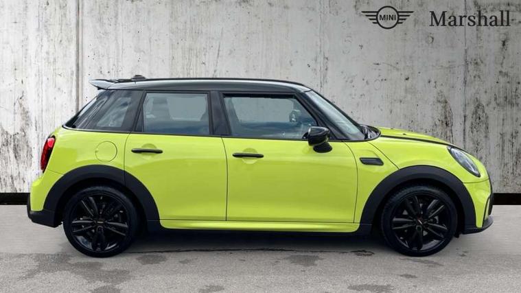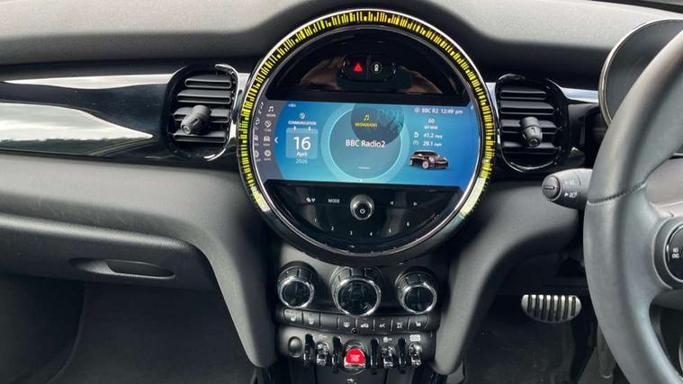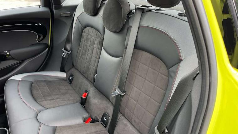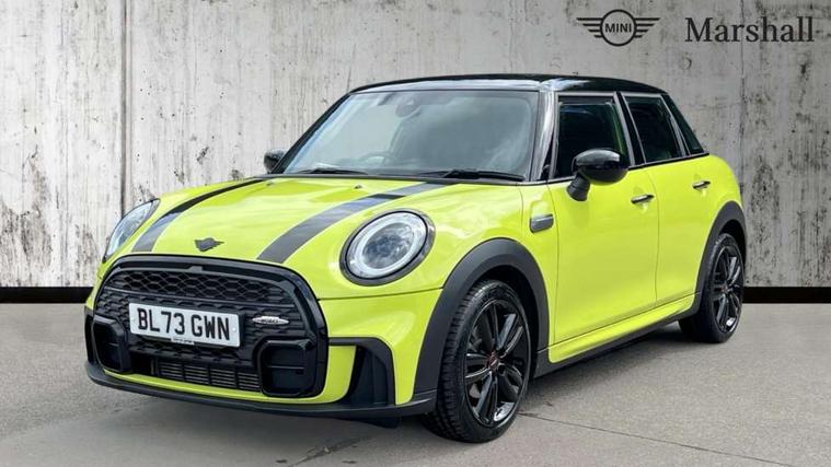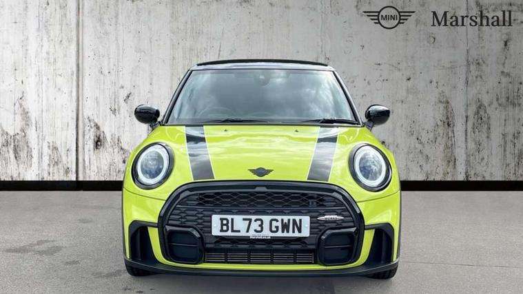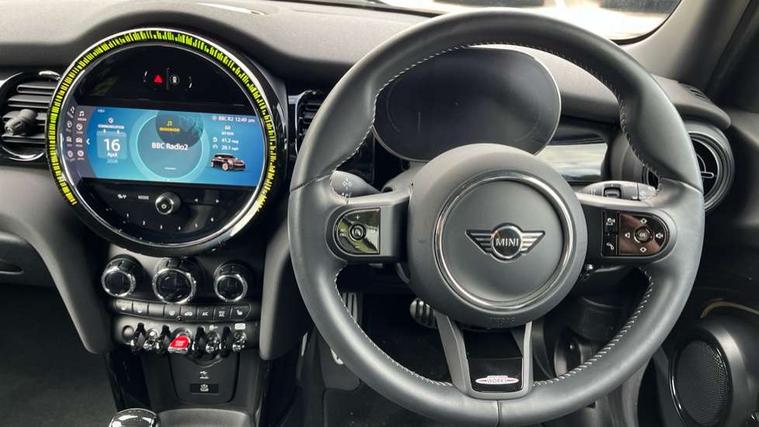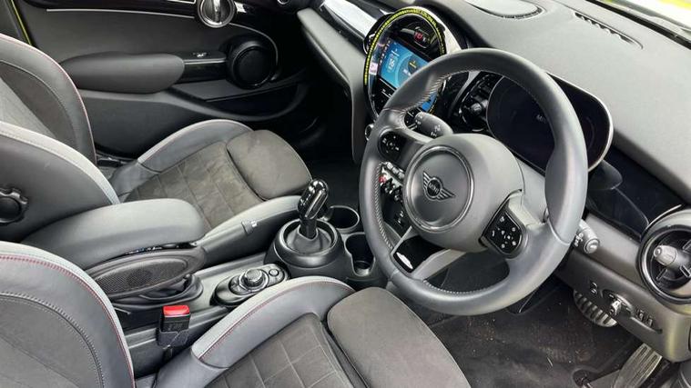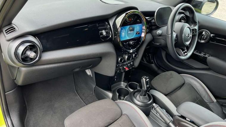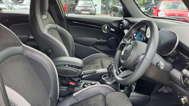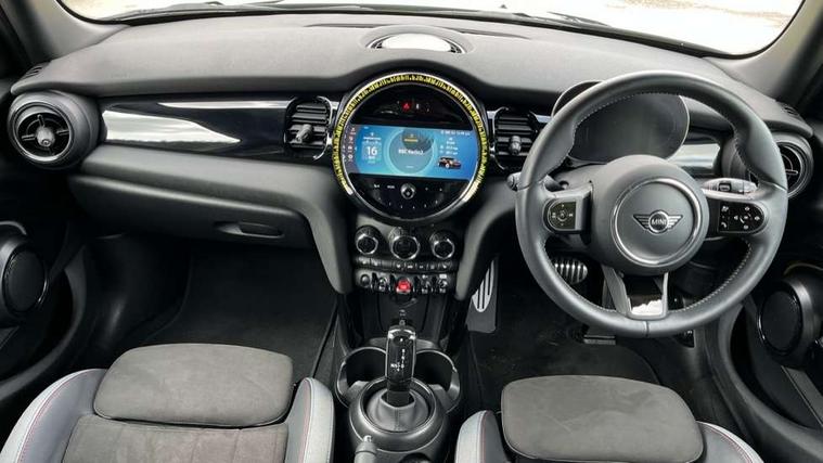 Apple CarPlay, Automatic start/stop function with brake energy recuperation, Compatible mobile phone bluetooth with audio streaming, Cruise control with brake assist, Electro-mechanical speed dependant steering assistance, Flexible car sharing preparation, Instrument cluster, MINI Driving Modes - centre toggle switch to control driving setting (sport, mid and green), Mini E-call, MINI TeleServices, On board computer, Rear park distance control, Service interval indicator, Adaptive suspension, Double Vanos system, Fully variable valve control, Gear change indicator display, High precision injection, Performance Control, Steptronic transmission with double clutch, 8.8" touchscreen with LED ring, FM tuner and DAB digital radio, 3rd brake light, Automatic headlight activation switch, Body colour fuel filler cap, Chrome border high gloss black slats radiator grille, Dynamic brake lights, Electric front+rear windows, Exhaust tailpipe on left with chrome finisher, Heated rear window, Heated windscreen washer jets, JCW Aerodynamic kit - Front and rear bumpers with sporty JCW styling and part-painted side sills with MINI John Cooper Works door sill finishers, John Cooper Works rear spoiler, LED headlight with closed ring and daytime driving lights, Metal door sill strips with MINI imprint, Model logo Cooper on right of tailgate, Rain sensor window wipers, Rear fog lights, Rear LED lights with union jack design, Rear side wing doors, Rear window wiper, Side scuttle panel with integrated indicator, Sun/heat protection glass, White indicator lenses, 12V Accessory socket in centre console, 3 seat bench in 2nd row, 4 lashing eyes in luggage compartment, 60/40 split folding rear seat, Anthracite headliner including grab handles and clothes hooks, Carbon black colour line - Knee roll and door armrest, Chrome interior highlights, Cupholders, Front and rear isofix with front passenger airbag deactivation, Front and rear velour floor mats, Glove compartment, Height and length steering column adjustment, Interior lighting with 12 different colours across the dashboard, underneath door bezel with illuminated laser-engraved design on central display, JCW Sport seats with integrated headrests, adjustable thigh support and John Cooper Works logo, Leatherette gearshift lever and handbrake gaiters, LED reading lights, vanity mirror lights, front foot well light and spotlight on front seats, Manual air conditioning, Mechanical seat adjustment - forward/back & backrest for front seats and driver seat height adjust, Multifunction steering wheel, Single front passenger seat, Storage compartments in doors, Sunvisors with vanity mirrors, Walknappa leather steering wheel with grey seam and John Cooper Works badge on Piano Black lower steering wheel spoke, Navigation pack without Apple Carplay - Mini Hatchback, Piano black exterior pack - Mini Hatchback Cooper, 3 point seatbelts on all five seats, 6 Airbags - front, side, head and seat belt tensioners, Anti-lock braking system (ABS), Child locks on rear doors, DSC - Dynamic Stability Control, Front and rear disc brakes, Hill start assist, Single tone fanfare horn, Tyre pressure monitoring system, Alarm system with tilt sensor, monitoring doors, bonnet interior and tailgate, Electronic vehicle immobiliser, Start/stop toggle with keyless go, Piano black interior trim, Tool kit,