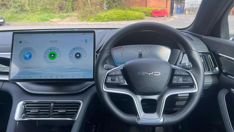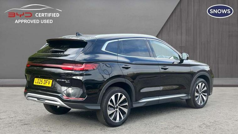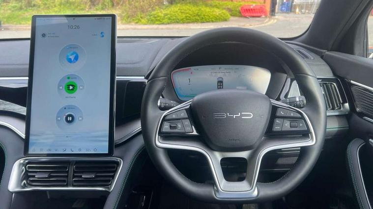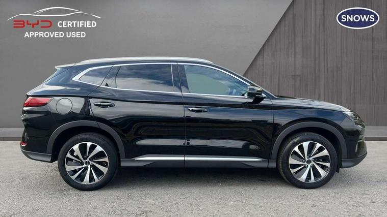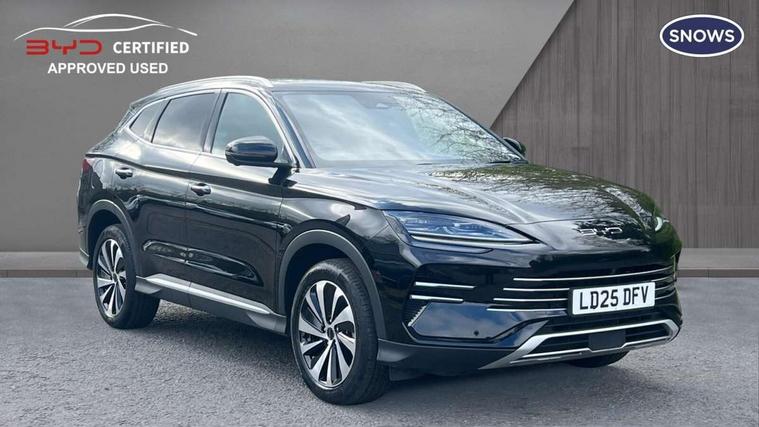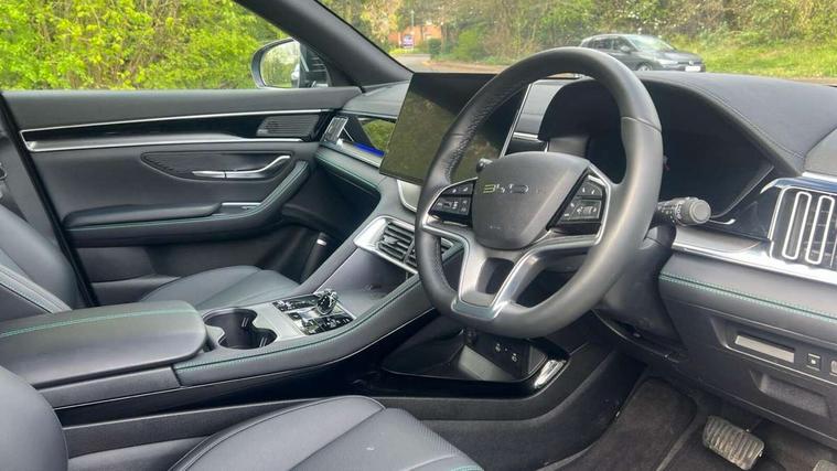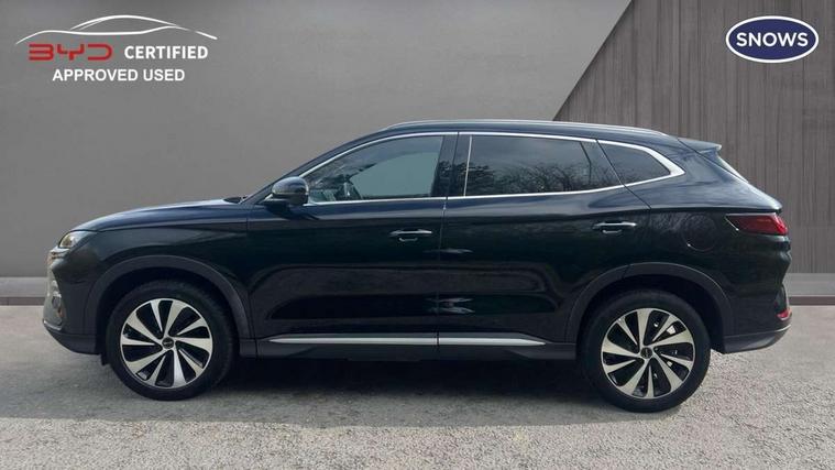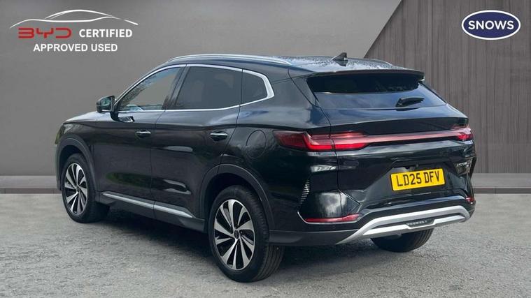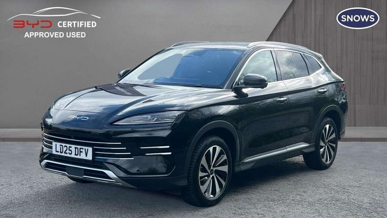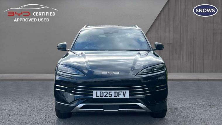 12.3" TFT full LCD instrument panel, 360 camera, Adaptive Cruise Control (ACC) and Intelligent Cruise Control (ICC), Automatic vehicle hold, Blind spot detection, BYD voice control assistant "Hi, BYD", Controller Deceleration Parking (CDP), Drive mode select (Eco, normal, sport, snow), e-Call (emergency call), Electric tailgate release, Emergency Lane Keeping Assist (ELKA), Forward collision warning, Front and rear parking sensors, Front cross traffic alert and front cross traffic brake, Head up Display, Indirect driver fatigue management, Intelligent Speed Limit Control (ISLC), Keyless system entry and start, Lane change assist, Lane Departure Assistant (LDA) and Lane Departure Warning (LDW), Lane departure prevention, PAS, Predictive collision warning, Rear collision warning, Rear cross traffic alert and rear cross traffic brake, Rollover Control System (RMI), Smartphone wireless charging, 2 x 15W, Traffic sign recognition (TSR), Vehicle-to-Load (V2L) function, 11kW on board charger, Mode 3 Type 2 charging cable (3 phase), V2L (Vehicle to load) power strip - Type F, 15.6" Electrically rotatable touchscreen, FM/DAB+ radio, Front USB ports, 1 x 18W Type C, 1 x 60W Type C, Infinity sound system with 10 speakers, Rear USB ports, 2 x 18W Type C, Aluminium roof rails, Auto dimming interior rear view mirror, Auto headlamps (on/off), Dynamic welcome lights, Electric folding and heated door mirrors, Emergency tow hook, Exterior mirror footlights, Follow me home headlights (The headlights turned on in advance and delayed off function), Front windscreen, UV protection, thermal insulation and sound proofing, High beam assist, LED 3rd brake light, LED daytime running lights, LED Headlights, LED taillights, One touch electric front/rear windows with pinch protection, Panoramic sunroof with anti-pinch sensor and electrically adjustable sunshade, Rain sensor windscreen wipers, Rear fog lights, Rear side wing doors, Rear window and rear windscreen with tinted glass, Rear wiper, 12V power outlet, 3 seat bench in 2nd row, 8 way electrically adjustable drivers seat, Adjustable rear headrests, Boot parcel shelf, Driver and passenger sunvisors with illuminated vanity mirrors, Driver seat memory function, Front centre armrest with 2 cupholders, Front LED reading lights, Front passenger seat with 4-way electric adjustment, Front seat footlights, Heat pump, Heated front seats, Heated steering wheel, Integrated headrest in front seats, ISOFIX and i-Size for front passenger and outer rear seats, LED front door lights, Nylon floor mats, PM2.5 air filter, PM2.5 air purification system, Rear air vents, Rear armrest with 2 cupholders, Rear side LED reading lights, Rhythm-reactive multi-colour ambient lighting, Single front passenger seat, Split folding rear seats - 40/60, Vegan leather multifunction steering wheel, Vegan leather upholstery, Ventilated front seats, 3x3 point rear seatbelts, ABS/EBD, Automatic emergency braking system, Brake override system (BOS), Child presence detection, Comfort stop, Door open warning, Driver airbag, Electric parking brake, Force limiting pre-tensioned front seat belts, Front centre airbag, Front passenger airbag, Front passenger airbag deactivation, Front side airbags, Hill descent control, Hill hold control, Hydraulic Brake Assist (HBA), Hydraulic brake boost, Mechanical child safety lock, Rear middle seat force limiting seat belt, Rear seat belt pretensioners, Reflective vest, Side curtain airbags, Traction control system (TCS), Tyre pressure monitoring system (TPMS), Vehicle Dynamics Control System (VDC), Warning triangle, 2 x Smart keys, Anti theft alarm system, Automatic door locking, 19" Bi-colour alloy wheels, Tyre nut covers remover, Tyre repair kit,