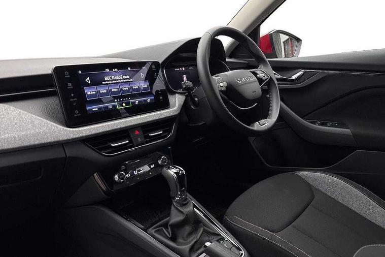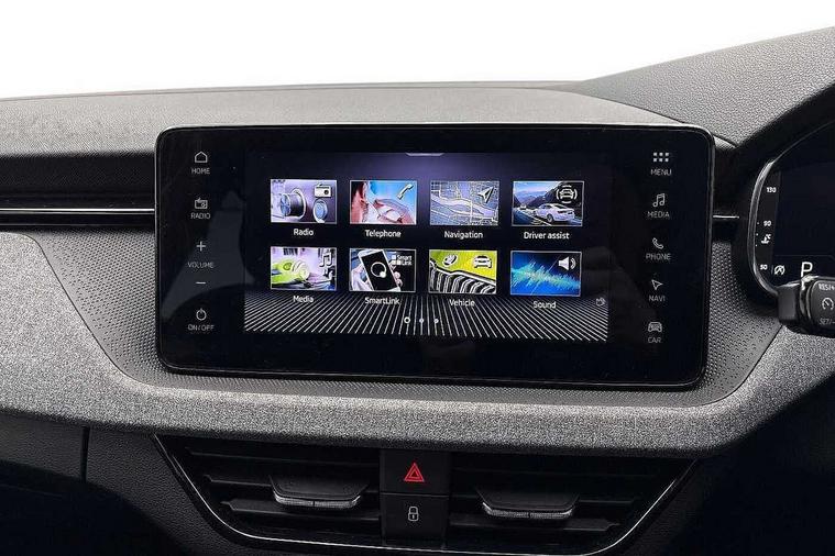 Advanced driver attention and drowsiness monitor, Bluetooth, e-Call (emergency call), Front assist system, PAS, Rear parking sensors, Rear view camera, Speed limiter, Tailgate, Traffic sign recognition, Virtual Cockpit - 10.25" digital display, Voice control system, Wireless smartlink, 4 USB C ports, 8 Speakers, 9.2" Skoda navigation display, DAB radio, Auto dimming rear view mirror, Automatic headlamp activation with Coming home and Leaving home feature, Automatic high/low beam, Body colour bumpers, Body colour door mirrors and handles, Chrome moulding around grille, Front and rear electric windows, Full LED headlights, Heated rear window, LED 3rd brake light, LED brake lights, LED daytime running lights, LED front turning lights, LED high beam, LED low beam, LED taillights, Rear LED fog light, Rear side wing doors, Rear wiper, Tinted windows, Unique dark chrome design logo on alloy wheels, 12V socket in luggage compartment, 3 seat bench in 2nd row, Black / Grey armrest stitching, Black hotstamping, Cargo elements, Chrome inner door handles, Door inserts in satin black, Driver and passenger sun visors with vanity mirror, Dual zone climate control, Front and rear roof lights, Front centre armrest, Front head restraints, Glasses storage in roof liner, Height adjustable driver seat, Height adjustable passenger seat, Ice scraper, Illuminated glove compartment, Inner circulation control with pollen filter, ISOFIX for front passenger seat, Isofix preparation for back seats, Leather gearknob and handbrake lever, Loft cloth upholstery, Luggage net under rear parcel shelf, Manual lumbar support for front seats, Net package and top tether hooks in boot space, Pearl grey ceiling, Pocket on the back of both front seats, incl. mobile phone pockets, Single front passenger seat, Skoda lettering on steering wheel, Textile floor mats, Third rear headrest, Ticket holder, Top tether for front passenger seat, Umbrella in driver's door, 3x3 point rear seatbelts, ABS, Child locks, Curtain airbags and front side airbags, Disc brakes, Driver and front passenger airbags, ESP, Hill hold control, Manual leather parking brake, One tone horn, Passenger airbag switch off function, Seatbelt reminder for driver and front passenger, Tyre pressure monitoring system, Anti theft alarm system with interior monitoring, backup horn and towing protection, Anti-theft wheel bolts, Remote central locking with 2 remote folding keys, SAFE function for remote central locking, Decord pad, door inserts Kota uni,