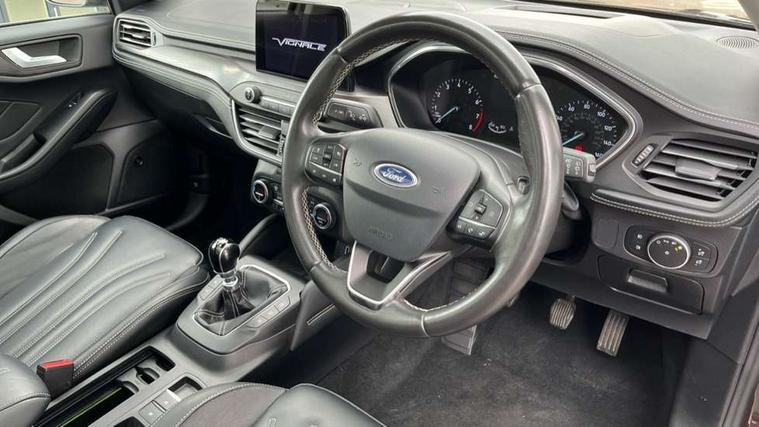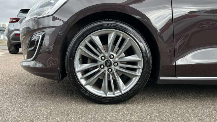 4" TFT coloured cluster screen, Active park assist system, Bluetooth system, Digital clock, Easy fuel capless refuelling system, Eco mode, Ford pass connect, Ford SYNC 3 nav system with DAB radio, 8" colour touch screen, voice control, app link, Apple car play/Android auto and 4.2" TFT coloured cluster, Front and rear parking sensors, Head up Display, Lane keeping aid with lane departure warning, PAS, Rear wide view camera, Trip computer, 2 USB ports, Aux input, B&O Audio system with 360 degree sound, 10 speakers, 675 watts of total amplifier power and digital sound processor, 'Quickclear' heated windscreen/heated washer jets, Auto dimming rear view mirror, Auto headlamps (on/off), Automatic rain sensing wipers, Body colour large rear spoiler, Body coloured bumpers, Body coloured door handles, Body coloured electrically operated and heated door mirrors with side indicators, Door edge protectors, Electrically operated front and rear windows with one touch opening and closing, Front variable intermittent wipers with electric wash, Heated rear window, LED daytime running lamp, LED front fog lamps with cornering function, LED rear lamps, Polished twin tailpipe, Power folding door mirrors with puddle lights, Rear privacy glass, Tailgate wash/wipe, Vignale front grille and body styling, 3 spoke leather trimmed steering wheel with integrated audio controls, 6 way power adjustable driver seat, 60/40 split back and cushion rear seats with 2 height adjustable headrests, Alloy finish pedals, Ambient LED multi colour interior lighting, Centre console with sliding front armrest, Dual zone electronic air temperature control, Front/rear floor mats, Heated front seats, Heated steering wheel, Height adjustable front headrests, Isofix child seat preparation, Leather gear knob, Leather upholstery, Load through ski hatch, Manual passenger seat height and lumbar adjust, Reach + rake adjustable steering column, Rear centre headrest, ABS+Electronic Brake force Distribution, Auto hold function, Driver airbag, Electronic parking brake, Electronic stability control, Front and rear seatbelt reminder, Front inertia reel height adjustable seatbelts with pre-tensioners, Front passenger airbag, Front side airbags, Hill start assist, Passenger airbag deactivate switch, Post collision braking, Pre collision assist with autonomous emergency braking and pedestrian/cyclist detection, Side curtain airbags, Three rear inertia reel lap/diagonal seatbelts, Tyre pressure monitoring system, Ford keyfree system with Keyless entry and keyless start, MyKey system, Remote central locking & engine immobiliser, Thatcham category 1 alarm, 18" 5x3 spoke liquid aluminium alloy wheels, Mini steel spare wheel,