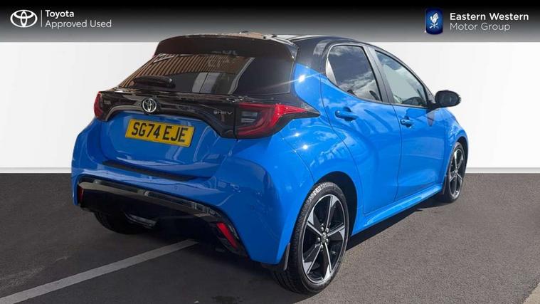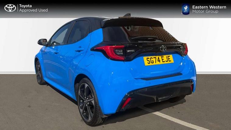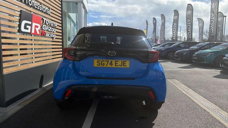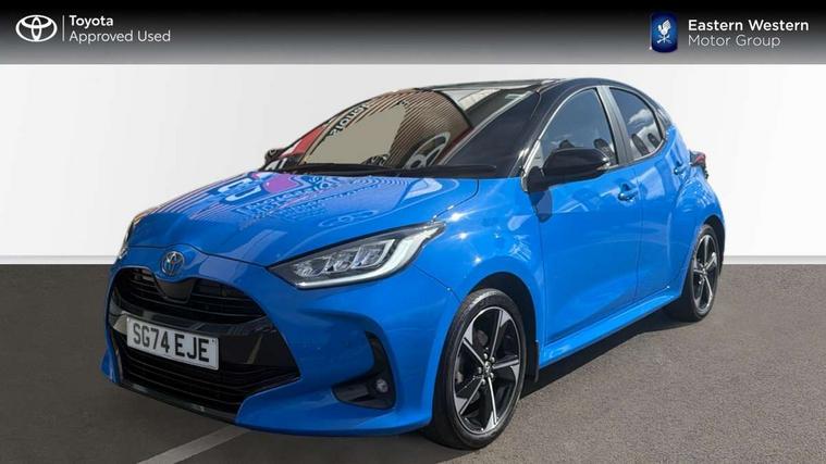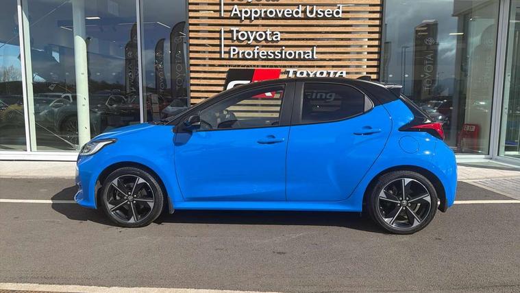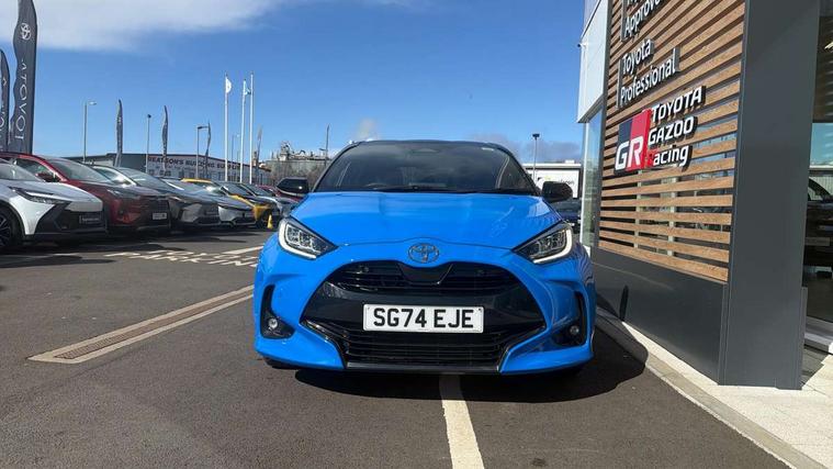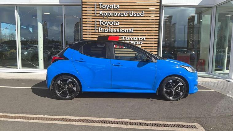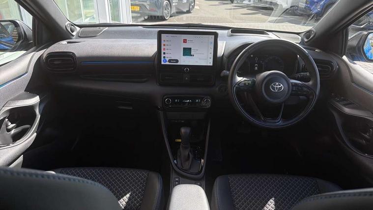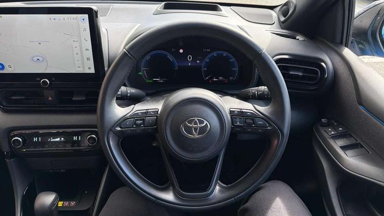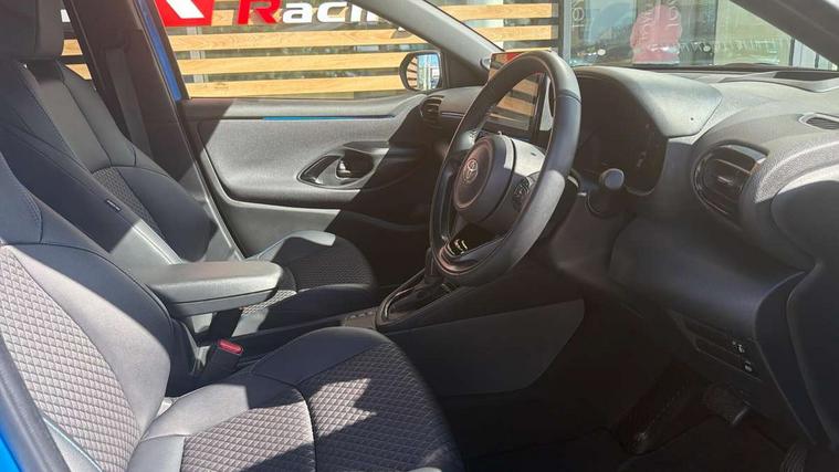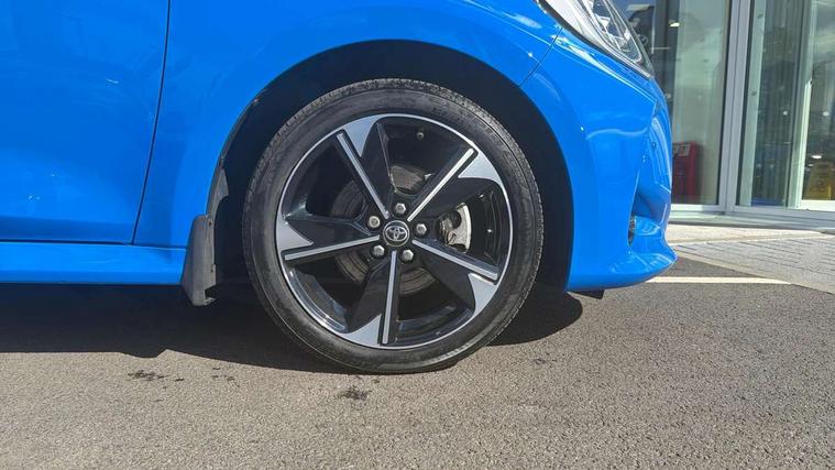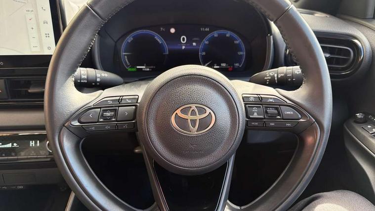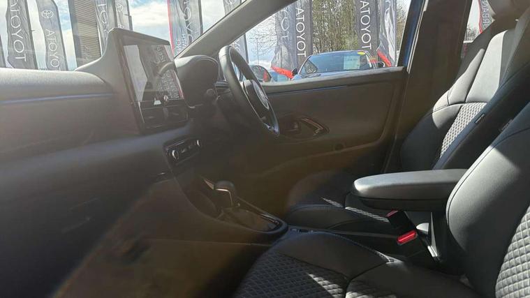 12.3" Digital Combimeter, Adaptive cruise control, Adjustable speed limit with speed warning, Bluetooth connectivity, Colour binocular inspired displays with digital speedometer, E-call, Electric power steering, Head up Display, Hybrid energy display, Multi information display switches on steering wheel, Reversing camera, Tailgate, Voice recognition, Wireless charger, Vehicle Stability Control (VSC), 10.5" Toyota smart connect multimedia with wireless smartphone integration incl apple car play and cloud Navigation, 6 speakers, 8 Speakers, JBL speaker system, Toyota Touch 3 system with DAB radio, USB connection, Acoustic windscreen glass, Auto windscreen wipers, Automatic headlights, Body coloured door mirrors, Dark chrome lower meshed front grille, Electric adjustable heated door mirrors, Follow me home headlights, Front auto power windows with anti jam protection, Full LED rear lights, LED daytime running lights, LED front fog lights, LED front light guide, LED Headlights, LED High mounted stop lamp, LED Indicators, LED rear light guide, Manual headlight levelling, Painted chequered front grille with hot stamp in mesh design, Rain sensor, Rear auto power windows with anti jam protection, Rear privacy glass, Rear side wing doors, Rear spoiler, Rear wiper, Shark fin antenna, Turning signal integrated indicators in door mirrors, Variable front intermittent wipers, 3 adjustable rear headrests, 3 seat bench in 2nd row, 3 spoke leather steering wheel, 60/40 split folding rear seat, Active headrests, Adjustable boot height, Black roof lining, Coat hooks in rear grab handles, Cup holders (2 front & door), Data Communication Module (DCM) connected services, Dual zone automatic air conditioning, Front armrest, Front sport seats, Glovebox, Height adjustable driver's seat, Height adjustable passenger seat, Isofix seat fixing, Leather gearshift, Map pockets on the backs of the front seats, Nanoe-X air purifier, Partial leather upholstery, Pollen filter, Shopping bag hooks, Single front passenger seat, Tilt/telescopic steering column, Safety pack - Yaris, 3 point seatbelts on all rear seats, ABS+EBD+Brake assist, Electronic parking brake, Emergency brake light system (EBS), Front passenger airbag on/off switch, Front seatbelt reminder, Hill start assist control (HAC), Rear child proof door locks, Rear seat belt reminder, Supplemental Restraint System (SRS) 8 airbags: Driver & passenger's airbags, dual side curtain airbags, side impact airbags, front centre airbag, Toyota Safety Sense 3 with over the air updates, Tyre pressure warning system, 2x Master key, Alarm/immobiliser, Keyless smart entry with push button start, Remote AC via MyT, Remote locking via MyT, Remote powered central double locking doors, Smart digital key, Piano black interior trim, Soft touch instrument panel, 17" Black Machined-face, 5 double spoke alloys wheels, Space saver spare wheel,