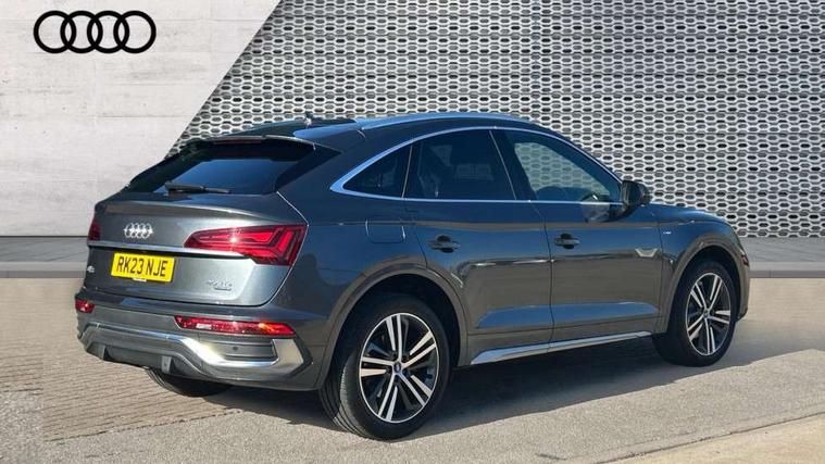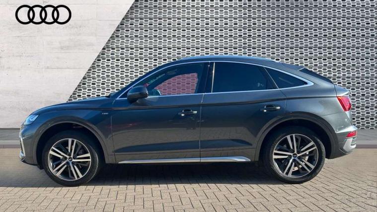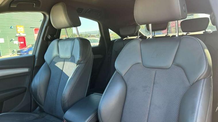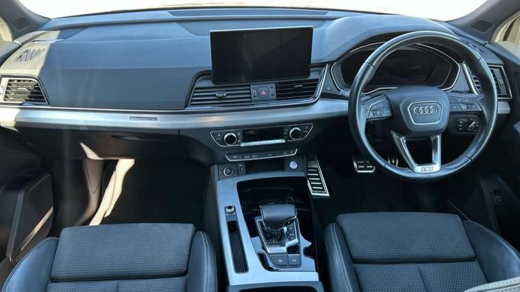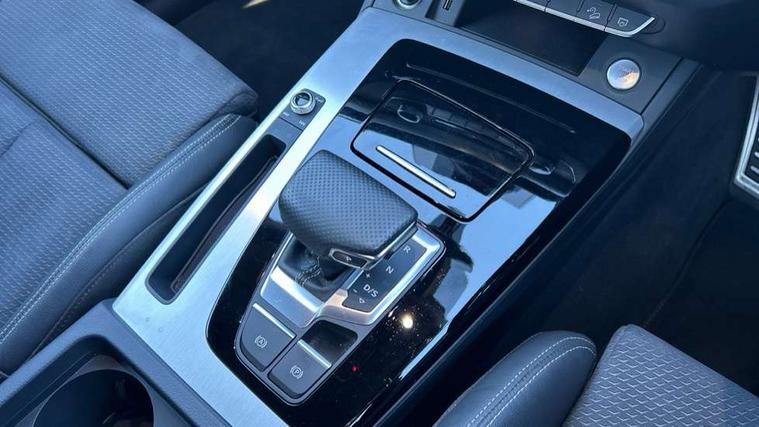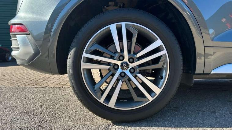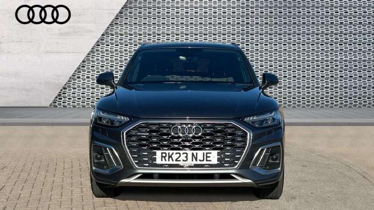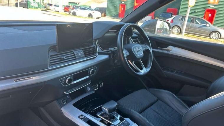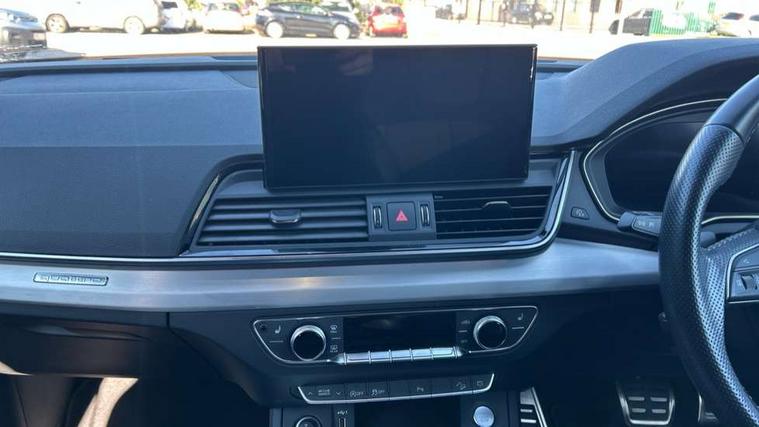 Acoustic front and rear parking sensor, Audi connect safety and service (e-call), Audi connect with Amazon Alexa Integration, Audi drive select, Audi virtual cockpit plus with 12.3" screen and three different layout designs, Audi wireless smartphone interface, Automatic start-stop system with coasting functionality and efficiency programme, Bluetooth interface, Electro - mechanical power assisted steering, MMI navigation plus with 10.1" touch screen, Power tailgate, Reversing camera, Service interval indicator, Voice control system with Audi hotword activation "Hey Audi", Diesel particulate filter, Quattro on demand, S line sports suspension, 2 x USB charging port with aux input socket, 8 loudspeakers, DAB Digital radio, Acoustic windscreen, Aluminium roof rails, Audi matrix LED headlights with dynamic front and rear indicators, Auto dimming door mirrors, Auto dimming frameless rear view mirror, Automatic headlight adjustment, Automatic headlights and windscreen wipers, Body colour door mirrors, Body colour rear diffuser with matt aluminium silver surrounds, Body colour underbody protection, Chrome plated exhaust trims, Daytime running lights, Door sills in Selenite silver, Electric adjustable/heated/folding door mirrors, Front air inlet surrounds in aluminium, Front and rear electric windows, Front radiator grille in honeycomb design, Headlight washers, High level LED brake light, Lower bumpers painted in contrast Manhattan grey, Rear chrome trim strip below lights, Rear privacy glass and rear side windows, Rear side wing doors, Rear wiper, Roof bars, S Line badges on the front wings, S Line front and rear bumpers, S Line rear spoiler, S Line side skirts, 3 rear headrests, 3 spoke leather multifunction steering wheel with S badging perforated leather grips, 40:20:40 split folding 3 rear bench seat in 2nd row with rear centre armrest, Black cloth headlining, Comfort front centre armrest, Contrast stitching on seats, steering wheel and gear lever gaiter, Deluxe 3 zone electronic climate control, Front head restraints, Front/rear floor mats, Gear lever in black leather, Heated front seats, Height/reach adjustable steering column, Illuminated door sill trims with S logo, Manual seat adjustment with 4-way electric lumbar support, Removable luggage compartment floor, Single front passenger seat, Stainless steel pedals, Sunvisors with vanity mirrors, Trunk roller cover, High gloss pack - Q5, LED interior light pack - Q5, 3 point seatbelts on all seats, 6 airbags - Driver, front passenger, curtain and side airbags, Electrically operated child locks on rear doors, Electromechanical parking brake, Electronic stabilisation control including ABS, ASR and EDL, First aid kit with warning triangle and vests, Front passenger airbag deactivation, Hill descent control, Hill hold assist, ISOFIX child seat mounting for front passenger seat and ISOFIX child seat mounting with Top Tether for outer rear seats, Multi collision brake assist, Pop-up bonnet for pedestrian protection, Pre sense city, Seat belt force limiter, Seatbelt monitoring, Tyre pressure warning, Anti theft alarm, Anti-theft wheel bolts, Keyless Go access/ignition system, Remote central locking, Air vents inserts and centre console in gloss black, Matt brushed aluminium inlays,