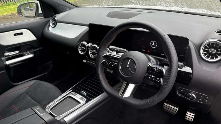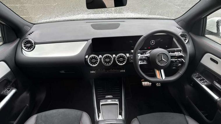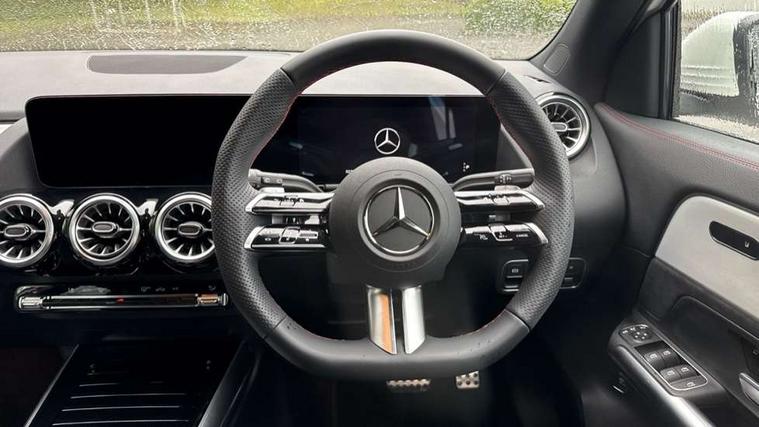 10.25 inch touchscreen central media display, 10.25" Digital instrument cluster display screen, Attention assist, Blind spot assist, Direct steering, DYNAMIC SELECT with a choice of driving modes (ECO, Comfort, Sport and Individual), ECO start/stop function, Fluid level warning indicator for fuel, oil, coolant and washer fluid, Hard-disk navigation, Hey Mercedes Voice activation, Lamp failure indicator, Lane keeping assist (LKA), Mercedes me connect including emergency call system, accident recovery, breakdown and maintenance management, Mercedes me remote services, Multi function trip computer, Outside temperature gauge, Owners manual and service booklet in English, Pre-installation of private car share, Radio aerial integrated into front and rear windshields, Service indicator (ASSYST), Smartphone integration with Apple CarPlay and Android auto, Speed limit assist, Wireless charging, Lowered comfort suspension, Rear axle multi-link, Bluetooth connectivity including audio streaming, DAB Digital radio, MBUX multimedia system, Mercedes Benz sound system (100 W) with 6 speakers, Adaptive brake lights, Adaptive highbeam assist, Aluminium roof rails, AMG front apron with front splitter in the colour of the vehicle with chrome trim element, AMG rear apron with visible tailpipe trim and chrome trim element, AMG specific/dual flow exhaust pipes in chrome (non-functional), Automatic headlamp activation, Beltline trim and window line trim strip in high gloss aluminium, Black grained side sill trim with chrome inlay, Car wash function, Dark privacy glass from B-pillar backwards, Electric front windows, Electric rear windows, Electrically adjustable and heated door mirrors with integrated LED indicators, Exhaust system with 2 Visible tailpipe trim elements and rear apron with trim in chrome, Heat insulating dark tinted glass, Heated glass rear windscreen + timer control, Interior mirror with black reading lamps and frameless, LED high performance headlamps with integrated LED daytime running lights, LED tail lights, LED third brake light, Rain sensor windscreen wipers, Rear fog lights, Rear side wing doors, Rear wiper, Wheel arch liners in the colour of the vehicle, 3 seat bench in 2nd row, 3 spoke flat bottom multifunction nappa leather steering wheel, 4 way lumbar support, 40:20:40 split folding rear seat backrests, Adjustable head restraints, Air conditioning - air vents with silver chrome surround, Air conditioning - One zone THERMATIC automatic climate control with automatically controlled air distribution, AMG floor mats, Artico man-made leather/Microcut microfibre upholstery with red contrast stitching, Auto Mercedes-Benz child seat recognition sensor, Black roof lining, Courtesy light in boot, Fluorescent jacket, Front centre armrest with stowage, Galvanished gear shift paddles on steering wheel in silver chrome, Heated front seats, Illuminated glovebox, Interior lighting - 64 colour Ambient lighting, Luggage net on driver/front passenger seat backrest, Manually height and reach adjustable steering column, Single front passenger seat, Sports pedals in brushed stainless steel with black rubber studs, Sports seats, Sports steering wheel, Stowage compartment in centre console, Stowage compartment with retractable cover, Sunvisors with illuminated vanity mirrors, Twin front cup holders, Two outer rear seat isofix and top tether child seat fixing points, Comfort seat pack - GLA Class, Interior lighting with light and sight pack - GLA, Keyless go comfort package - GLA, Mirror pack - GLA Class, Parking package with reversing camera - GLA, USB package plus - GLA, Winter package - GLA, 3 rear 3 point seatbelts, ABS with Brake Assist, Active bonnet pedestrain safety measure which detects an impact and raises bonnet by 65mm, Active brake assist includes forward collision warning system with autonomous braking, Adaptive brake assist with hold function and hill start assist, Bonnet with power domes, Brake pad wear warning indicator, Childproof locks manually operated for rear doors and electrically operated for rear power windows, Crash responsive emergency lighting, Driver and passenger head and side airbags, Drivers knee airbag, Dual stage driver/passenger airbags, Electronic parking brake, ESP curve dynamic assist, ESP with ASR, Front and rear seatbelt reminder, Front brake callipers with Mercedes Benz logo lettering on front, Front brake discs internally ventilated and perforated, Front passenger seat occupancy sensor, Sports braking system, Tyre pressure monitoring system, Warning triangle and first aid kit, Window airbags, Alarm system with immobiliser and interior protection -Thatcham category 1, Guard 360 degree vehicle protection, Remote central locking and crash sensor with emergency opening function, Black seatbelts, Light longitudinal grain aluminium trim, 19" AMG 5 twin spoke light alloy wheels aerodynamically optimised, painted in high-gloss black and with a high-sheen finish RTG, Summer tyres, Tirefit tyre sealant kit,