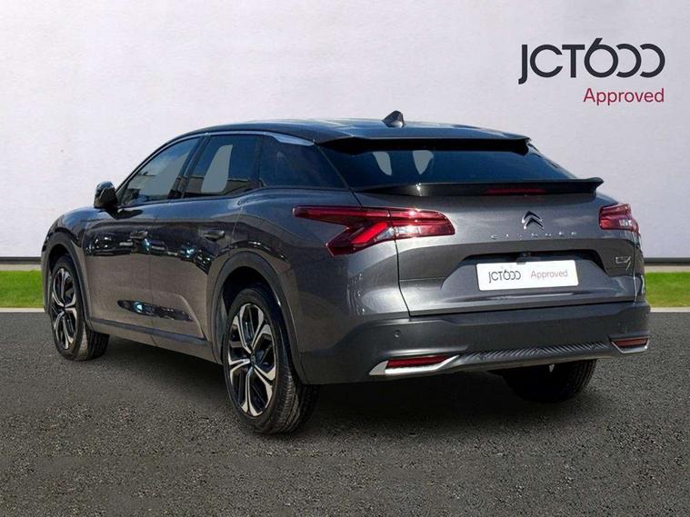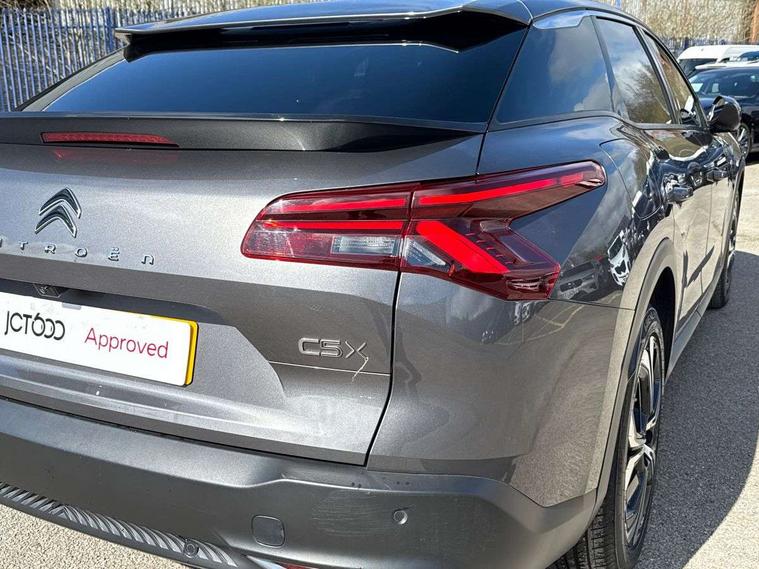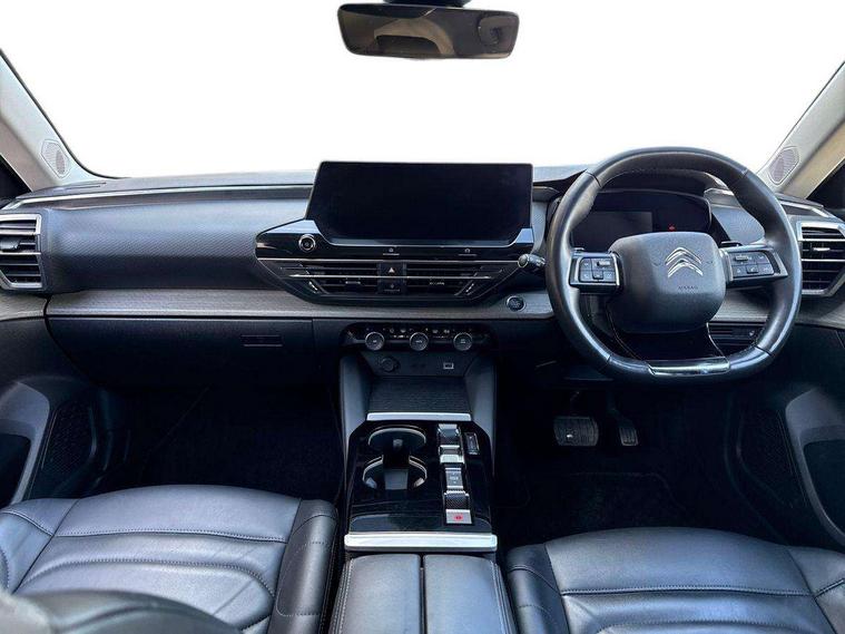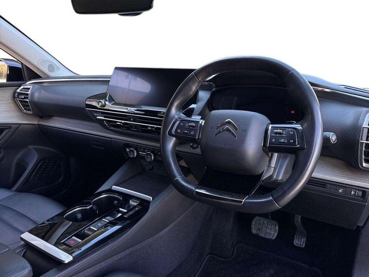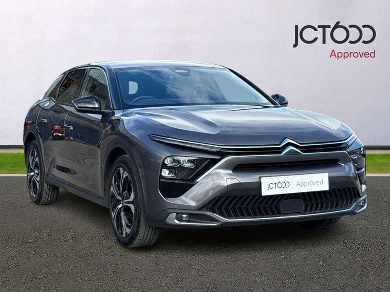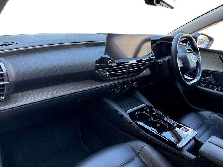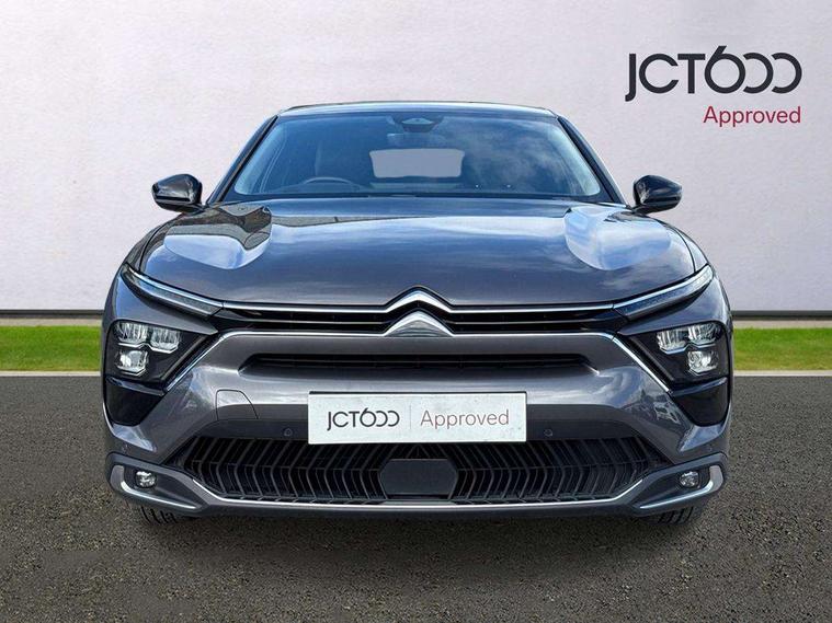 12" Central touch screen with separate heating and ventilation controls (with ADAS and Home buttons), 7'' Digital instrument cluster with smoked glass, 10 + 2 indicator lights and ambiance backlighting, Citroen connect box with emergency and assistance system, Coffee Break Alert, Connected 3D navigation, Driver attention alert system, Driver information panel with lighting fault indicator, E-call, Electric variable power assisted steering, Extended blind spot detection, Extended traffic sign recognition, Forward collision warning, Front and rear parking sensors, Highway Integrated Assist (Adaptive Cruise Control with Stop & Go function and Lane Positioning Assist), In-crash braking, Lane change assistant, Lane keep assist, Multi window screen, MyCitroën Drive Plus (incorporating electronic user guide), Outside temperature display, Radar Controlled Active Safety Brake (with enhanced pedestrian and cyclist pickup and able to function at night), Rear cross traffic alert, Remote functions: horn and lighting, lock/unlock doors, vehicle status, Speed limit recognition and recommendation, Top rear vision reversing camera, Voice recognition, Wireless mirror screen, Wireless smartphone charging, Citroen Advanced Comfort suspension with double (front & rear) progressive hydraulic cushions, 2 front USB plugs : 1 USB type C charge + data (front of centre console), 1 USB type C charge only (under centre front armrest), able to charge IPAD, 2 rear USB plugs charging only (able to charge IPAD), Bluetooth streaming, DAB Digital radio, Hi Fi System: 8 loudspeakers (2 front woofers, 2 front tweeters, 2 rear woofers and 2 rear tweeters), A pillar in black, Acoustic insulated and tinted windscreen with Head Up Display (eHUD), Automatic illumination of headlamps when unlocking, Automatic rain-sensitive flat blade wipers with integrated wash function, Automatic welcome and follow me home lighting, Automatically illuminating LED headlamps with automatic High Beam Assist (with driver adjustment controls in passenger compartment), Body coloured door handles, Chrome Citroën chevrons integrated into front grille and extending outward into front light signature, Electronic, heated, black folding door mirrors with integrated LED indicator, LED approach lighting, Extra tinted rear quarter panel windows, Extra tinted, heated rear window, Frameless electrochrome interior rear view mirror, Front and rear electric windows, Gloss black Citroën chevrons with chrome surround, chrome Citroën lettering and C5 X badging on rear tailgate, High level LED brake light, LED daytime running lights, LED fog lights with static cornering function integrated into front bumper apron, LED front indicators, LED rear lights, LED rear number plate lights, Rear side wing doors, Rear wiper, Remote 4-window opening/closing with plip, Satin chrome trim on rear bumper, Tinted front and extra tinted rear windows, 12V power socket in front centre console, 12V socket in boot, 3 rear headrests, 3 seat bench in 2nd row, Automatic dual zone air-conditioning with Soft/Normal/Fast variable settings, A/C max function and single- zone function (through touch screen), Black leather-effect central armrest with overstitching, Black leather-effect front and rear door panel inserts, Black tie down rings for secure load storage, Cabin air filter, Carpeted boot with low-friction loading floor rails, Courtesy lighting: front roof light, rear roof light, central console lighting, LED illuminated glovebox and LED boot light, Dashboard mounted black, backlit, chrome-ringed start/stop button, Driver and front passenger sun visors with mirrors and LED lighting, Driver's footrest, e-Toggle automatic gear selector switch on centre-console, Front and rear door pockets, Front and rear passenger storage areas in central console, Front headrests, Front seatback storage pockets, Height and reach adjustable steering wheel, High efficiency air filter, Illuminated passenger glovebox, Interior LED welcome lighting - door handles, front foot wells, driver instrument panel, ISOFIX points in outer rear seats with top tether anchorage points, Magic Handles - allows rear seats to be folded flat from the boot compartment, Mistral carpet with reinforced driver's foot well, Multifunction heated, grained leather steering wheel with paddle shifters, driving assistance and infotainment control functions, Plastic boot sill, Rear air vents with independent opening/closing and left and right airflow settings for rear seat passengers, Rear armrest storage and cup holders, Roll up awning fitted to tailgate, Satin chrome dashboard strip and satin chrome decor on bottom of door panels, Satin chrome highlighted air vents and steering wheel, Single front passenger seat, Smartphone storage in front of (front) centre armrest, Storage area for emergency safety triangle/first-aid kit, Storage under central armrest, 2 tone horn, ABS, Curtain airbags, Driver and front passenger airbags, Electric parking brake, Electronic Stability Programme (ESP), Five 3 point inertia reel seat belts, Front inertia reel seatbelt with pre-tensioners and force limiters, Front passenger airbag deactivation, Hill start assist function, Intelligent Traction Control system, Lateral airbags, Pedestrian protection active bonnet, Power child locks on rear doors, Tyre underinflation detection, Unfastened seatbelt visual warning system on all seats + audible warning for driver/front passenger (front passenger presence detection), Deadlocking system, Locking wheel nuts, Perimetric and volumetric anti theft alarm, Proximity keyless entry (doors, boot and fuel filler flap) and start, Dashboard and door panels décor - wood film and grain, 19'' Aero-X Diamond Cut Alloys with Onyx black paint & Onyx black aero inserts,