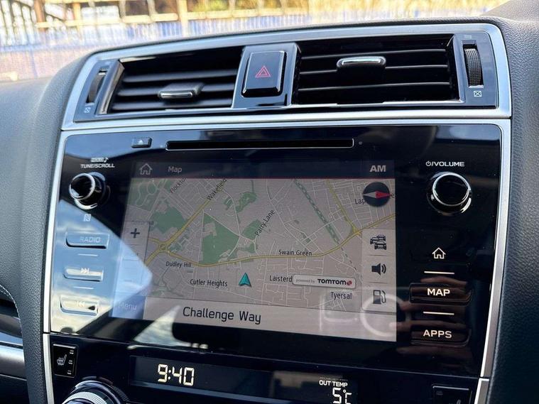 8" touch screen, Apple car play/Android Auto, Bluetooth connectivity with voice recognition, Eco gauge, EyeSight driver assist - Adaptive cruise control, lane keep assist/sway warning and pre-collision braking, Intelligent driver information system (IDIS), Interior fuel flap release, Lane change assist and blind spot monitor, Navigation system, Outside temperature gauge, Power tailgate, Rear cross traffic alert, Rear view camera, Service interval indicator, Speed sensitive power steering, Trip computer, SVDC - Subaru Vehicle Dynamics Control, 6 speakers, Auxiliary audio input socket, DAB Digital radio, Radio/single CD player, Steering wheel mounted audio controls, USB connection, Automatic headlights, Body colour bumpers, Body colour door handles, Body colour electric heated/adjust/fold mirrors, Electric glass tilt and slide sunroof, Front and rear electric windows, Front fog lights, Heated rear window with timer, High beam assist, Intermittent rear wash/wipe, LED Headlights, Pop up headlamp washers, Rain sensor windscreen wipers, Rear privacy glass, Roof rails, Roof spoiler, Steering responsive headlights, UV reducing glass, Windscreen wiper de-icer, 4 cargo hooks, 60/40 split one touch flat folding rear seats, 8 way electric driver seat with lumbar adjustment, 8 way electrically adjustable passenger seat with height, reach, till and backrest, Auto dual-zone climate control system, Centre console storage tray, Defroster vents for front and side windows, Door pockets with bottle holder, Driver seat memory function, Driver/passenger front seatback pockets, Dust/pollen filter, Front centre armrest, Front centre console with storage/12v power outlet, Front cupholders, Front interior welcome light, Front map lights, Heated front seats, Illuminated driver/passenger vanity mirror, Isofix child seat attachment, Leather steering wheel, Leather upholstery, Luggage area lamp, Luggage area under floor storage box, Paddle shift controls, Rear centre armrest with 2 cupholders, Rear head restraints, Rear heater duct, Rear interior welcome light, Reclining rear seats, Retractable luggage cover, Stainless steel sill covers, Tie down hooks in luggage area, Tilt/reach adjustable steering wheel, Ventilation ducts to rear compartment, 3x3 point rear seatbelts, ABS + EBD + EBA, Active front headrests, Auto hold function, Driver and passenger seatbelts with warning light, Drivers knee airbag, Dual stage driver/passenger airbags, Electronic parking brake, Front and rear curtain airbags, Front seatbelt pretensioners + load limiters, Height adjustable front seatbelts, Hill descent control, Passenger knee airbag, Rear child proof door locks, Safety pedal system, Side airbags, Torque vectoring brake, Traction control, Tyre pressure monitor, Deadlocks, Keyless entry and start, Locking wheel nuts, Remote central locking, Thatcham category 1 alarm + immobiliser, 18" Alloy wheels, Tyre repair kit,