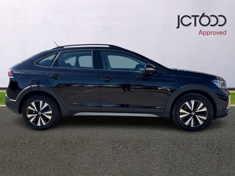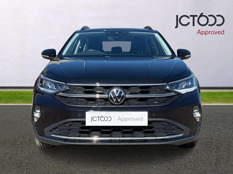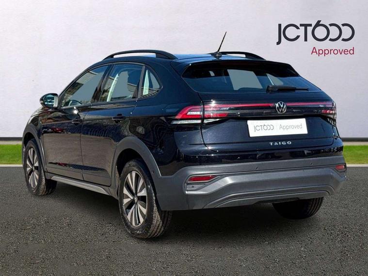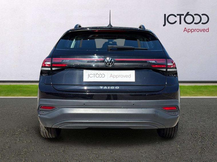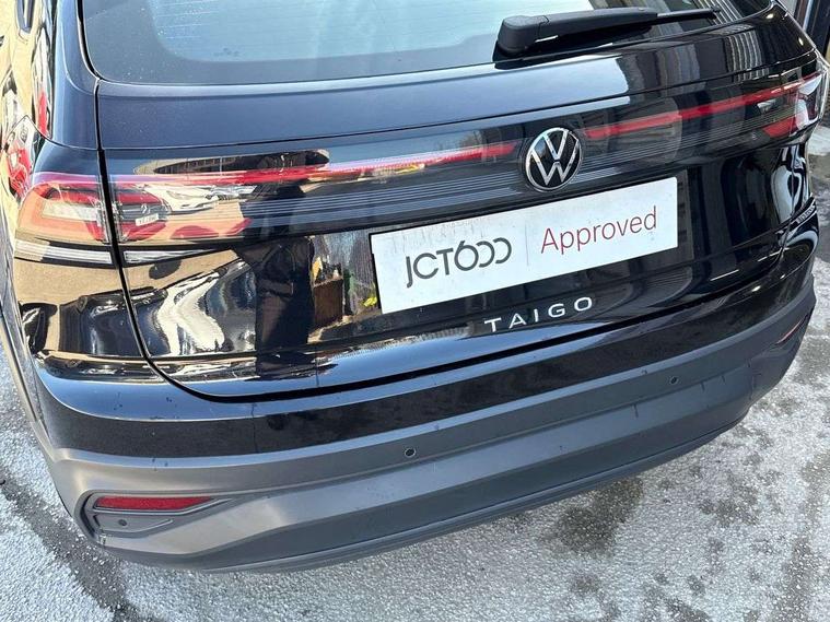 App-Connect including App-Connect Wireless, Driver alert system, e-Call (emergency call), Power Steering, Travel assist including emergency assist, Washer fluid level indicator, Wireless Charging including Bluetooth, Start-stop system with battery regeneration (recuperation - energy recovery during braking), Digital radio reception (DAB+), Diversity antenna for FM reception, WeConnect plus, Ambient lighting with logo projection, Aspherical driver's exterior mirror, Auto headlights, Body coloured bumpers, Body coloured exterior mirror housings and door handles, Electric windows, External USB type C socket and charging sockets, Front fog lamps with cornering function, Headlight range control, Heat insulating glass windscreen, LED headlamps, LED rear combination lamp, LED third brake light, Left convex exterior mirror, Power folding adjustable/heated exterior mirrors and front passenger exterior mirror lowering function, Rear fog light on one side, reversing light on both sides, Rear side wing doors, Rear wash/wipe with intermittent wipe setting, 'Slash/ Austin' Cloth upholstery, 12V socket in centre console, 2 front reading lights, 3 rear head restraints, 3 seat bench in 2nd row, Black carpets, Child seat anchor for child seat system i-Size, 2x top tether and child seat anchor in front on front passenger side, Door and side trim panels in titan black, Driver and front passenger seat height adjustment, Front centre armrest, Handbrake lever handle in leather, Height and reach adjustable steering wheel, Leather trimmed gear knob, Leather wrapped multifunction steering wheel, Luggage compartment floor, Luggage compartment light, Lumbar support for driver's and front passengers seat, Seat covers in titanium black, Single front passenger seat, Split folding backrest with centre armrest and unsplit rear seat bench, Storage compartment under front seats, Sun visors with illuminated vanity mirrors, Chrome Package - Taigo, Drivers assistance pack - Taigo, Light and Sight pack including High beam assist - Taigo, 2 x 3-point seatbelts/outer rear seats with ECE label, 3-point seat belts in front with pretensioner and height adjustment, 3-point seatbelt for centre rear seat, Driver and front passenger airbags with front passenger airbag de-activation, front side and curtain airbags, Driver and front passenger safety-optimised head restraints, Electronic stability control, Extended and predictive pedestrian/ cyclist protection, Front and rear disc brakes, Front curtain and side airbags with center airbag, Hill start assist, Manual rear child locks, Single tone horn, Tyre pressure loss indicator, Anti-theft alarm system with interior monitoring, backup horn, and towing protection, Anti-theft wheel bolts, Lava stone black gloss/matt decorative inserts in dash and front door panels, Low rolling resistance tyres,