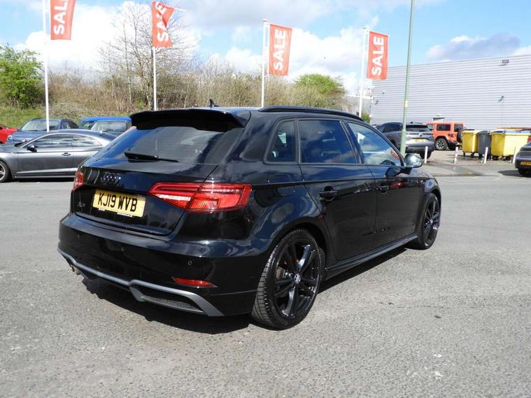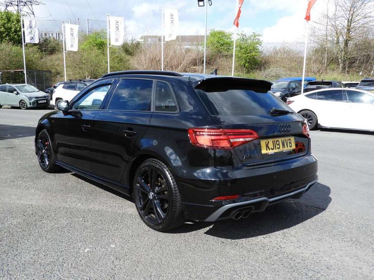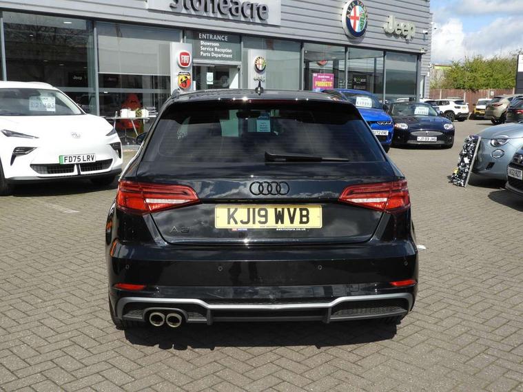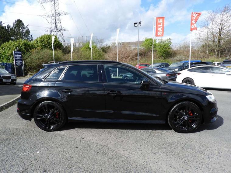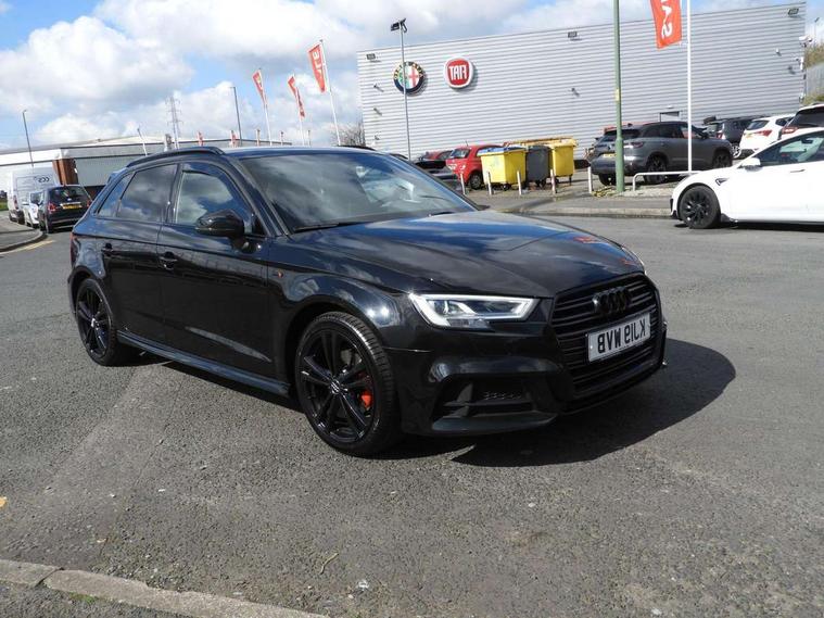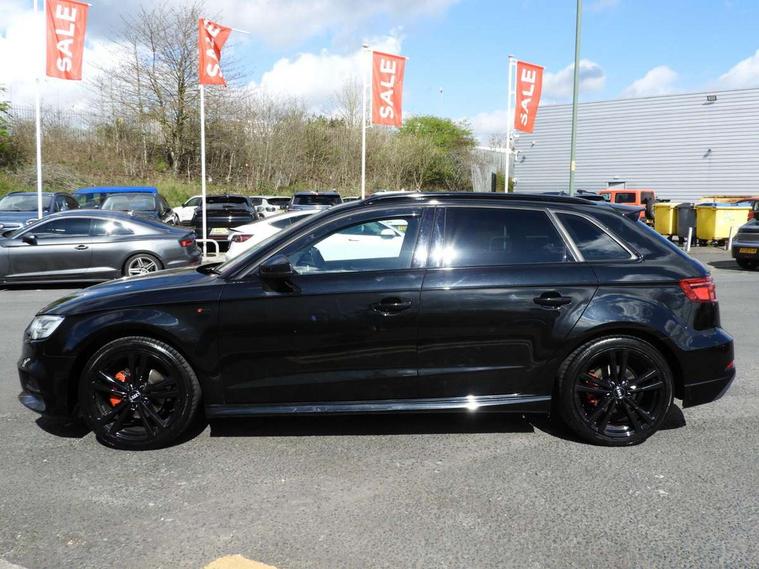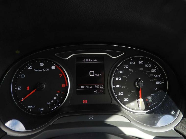 Audi connect, Audi drive select, Audi smartphone interface, Automatic start/stop system, Colour driver's information system display, Electro - mechanical power assisted steering, Mobile telephone preparation - bluetooth interface, SD card based MMI navigation, Service interval indicator, Speed limit display, Voice control system, Voice recognition for navigation system, 2 USB interfaces and Aux-In jack, Audi music interface, CD player, DAB Digital radio, MMI radio plus with 7" colour MMI screen and MMI controller, Aluminium window trim, Auto dimming rear view mirror with light and rain sensors, Body colour door mirrors, Chrome exhaust tailpipes, Electric front windows, Electric rear windows, Electrically adjustable and heated door mirrors with integrated LED side indicators, Heated windscreen washer jets, LED daytime running lights, Matt black radiator grille, Rear wiper, S line badges on front wings, S Line body styling with front & rear bumpers and side skirts, radiator grille and rear diffuser insert, roof spoiler, Sport specific side air inlet grille and diffuser insert, 3 adjustable rear headrests, 3 spoke flat bottomed multi-function leather sport steering wheel, 4 lashing points to secure luggage, Adjustable front centre armrest, Black cloth headlining, Dual zone electronic climate control, Front and rear interior lights with delay, Front/rear floor mats, Glovebox light, Height and reach adjustable steering wheel, Illuminated door sill trims with S logo, Isofix child seat preparation for front passenger/outer rear seats inc passenger airbag deactivation, Stainless steel pedals, Storage compartments in doors side trims, centre console and under front drivers seat, LED interior light pack - A3/RS3, Non smoking pack - A3, Storage and luggage pack - A3/RS3, 3 point seatbelts on all seats, ABS/EBD, Active bonnet, Active front headrests, Airbags - front driver/passenger, front & rear side, curtain, drivers knee, ASR, EDL, Electromechanical parking brake, ESC - Electronic Stability Control + traction control, Front passenger airbag deactivation, Hill hold assist, Manual rear child locks, Multi-Collision braking, Seatbelt warning, Tyre pressure warning, Warning triangle and first aid kit, Anti theft alarm, Anti-theft wheel bolts, Remote control central locking, Thatcham category 1 alarm + immobiliser, Aluminium air vent surrounds, Aluminium trim elements, Matt brushed aluminium inlays, Tool kit, Tyre repair kit,