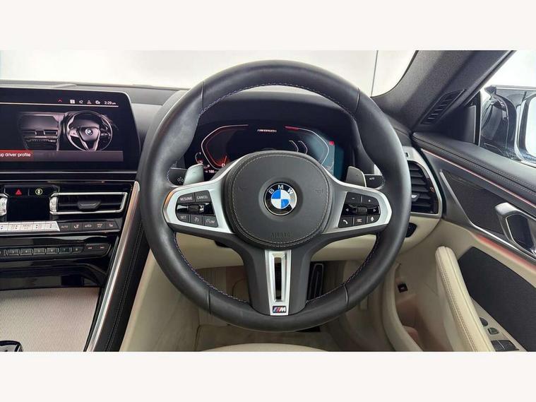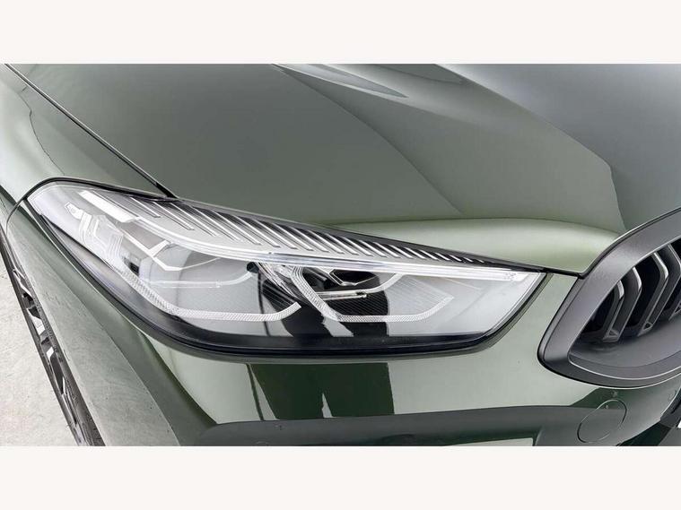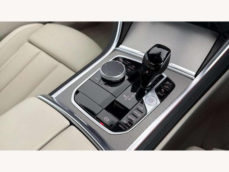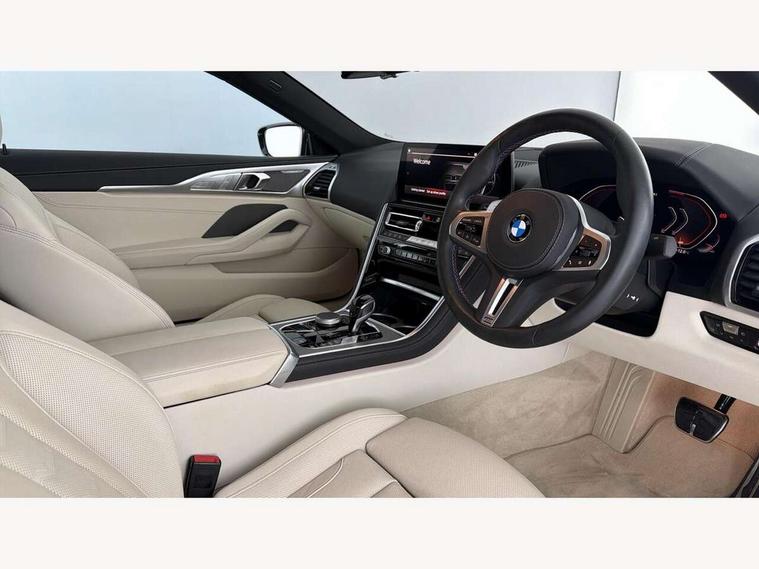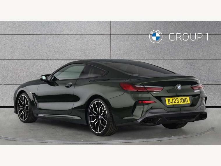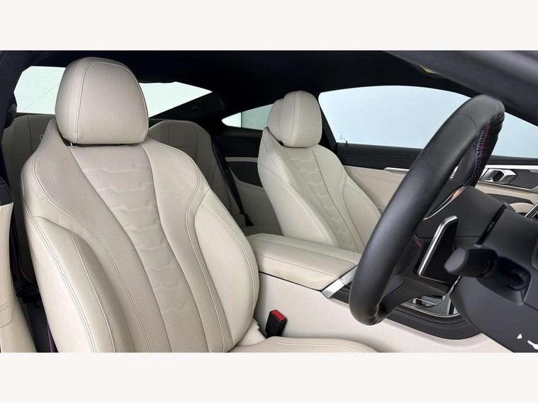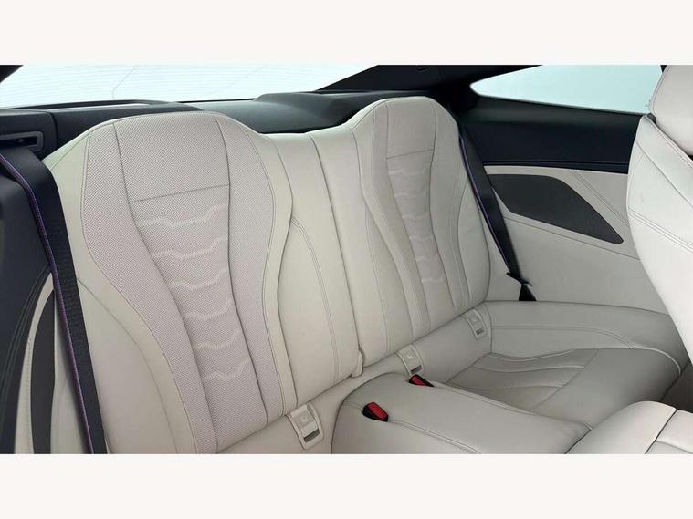 Automatic tailgate operation, remote opening with key, closing by tailgate button or remote control including tailgate in LED technology, Bluetooth hands free facility with USB audio interface, voice control and enhanced bluetooth + Wireless charging, BMW ConnectedDrive online services, BMW legal emergency call, BMW Teleservices, Brake pad wear indicator, Check control system, Condition based service, Drive experience control with Sport, Comfort, Eco Pro and Adaptive modes, Electric bootlid, Head up Display, iDrive controller with shortcut buttons, Instrument and upper door panel in walknappa leather, Integral active steering, Integrated owners handbook, Light on warning, Oil sensor for level and grade, On board computer, Outside temperature display, Run flat indicator, Service interval indicator, Servotronic system, Speed limiter, Wi-Fi hotspot, BMW xDrive system, Double wishbone front axle, Dynamic Damper Control, Eight speed sport automatic transmission, M Sport differential, Petrol Particulate Filter, Sport exhaust system, DAB Digital radio, Favourite buttons, Air breather inlay in pearl chrome, frame in black high gloss, Automatic windscreen wipers and automatic headlight, Carbon core, Climate comfort windscreen, Daytime driving lights front and rear active, Dynamic brake lights, Exterior mirrors - Floating design mirror, electric adjust/heated/folding, aspherical, Follow me home headlight function, Frameless interior mirror, Front and rear bumper system with replaceable deformation elements, Front electric windows, Front ornamental grille with kidney grille bars, Heat protection, sun protection glazing, Heated rear window, glass, Heated windscreen washer jets, High beam assistant, High gloss shadowline exterior, Illuminated door handles, Illuminated radiator grille iconic glow, LED rear lights, M emblem on front side panel in light chrome, Model logo on right tailgate, Radiator grille frame in pearl chrome, Rain sensor and automatic driving lights control, Rear boot, Sun protection glass, Thermally insulated windscreen, Third LED technology brake light in rear window, Welcome lights in interior and door handle area, Window frame and mirror base in black high gloss, xDrive designation on left tailgate, 2 cup holders in front, 2 rear head restraints, 2 X front 12v power sockets, 3 spoke M sport leather multifunction steering wheel with shift paddle, 4 seats, 50/50 split folding rear seat, Ambient light with dynamic interior light, Automatic air conditioning with 2-zone control, BMW ID, Front centre armrest with light, 12V socket and USB and storage compartment, Front door pockets, Front entry lights doors, Front reading lights, Front seat heating, Front sun visors with ticket holder and illuminated mirror, Interior lighting - Interior light front centre above interior mirror, luggage compartment light, automatic interior light system soft on/soft off, Lashing eyelets, Lockable glove compartment with light, Microfilter and active carbon filter, Steering column with adjustable height and length and activation via control on the steering column, Through loading function, BMW Live cockpit professional pack - 8 Series, Connected professional pack - 8 Series, Exterior items pack - 8 Series/xDrive, M Performance pack - 8 Series, M sport exterior styling aerodynamics pack - 8 Series, ABS/EBD, Active protection, Airbags - Driver and front passenger airbag with seat occupancy detection, knee, side and front passenger seat airbag deactivation, Brake discs, compound structure, Cornering brake control (CBC), Crash sensor activating central locking release, hazard warning lights, fuel cut off, interior lighting, safety battery terminal clamp and airbags, DSC - Dynamic Stability Control, Dynamic brake control, Dynamic Traction Control - DTC, Electromechanical parking brake with automatic drive away release and auto hold function, Front three point with pyrotechnical belt latch tensioner seat belts, belt force limiter and belt stopper, Head airbags for 1st and 2nd seat row, Hill start assist, Integrated brake system, ISOFIX child seat mounting for the two outer rear seats, Rear three point with pyrotechnical belt latch tensioner seat belts and belt force limiter, Side impact protection, Tyre pressure monitoring system (TPMS), Warning triangle and first aid kit, Alarm system (Thatcham 1) with electronic engine immobiliser, Centre lock switch, Closing system with central locking, Comfort access system, Keyless entry with start/stop button, Locking wheel bolts, Vehicle key with exclusive M designation,