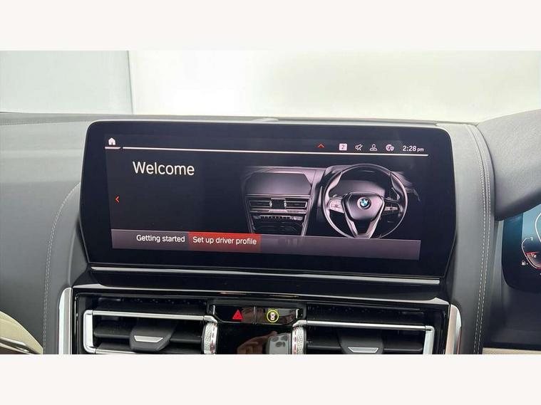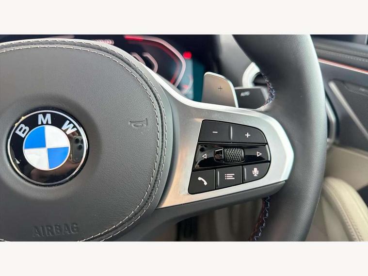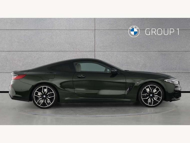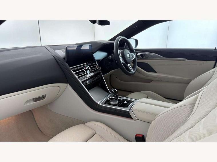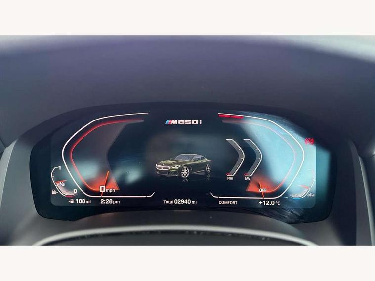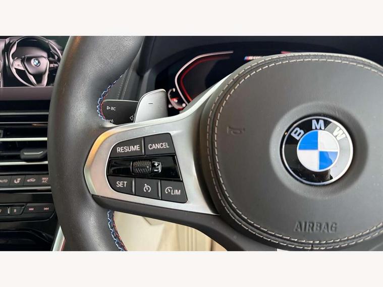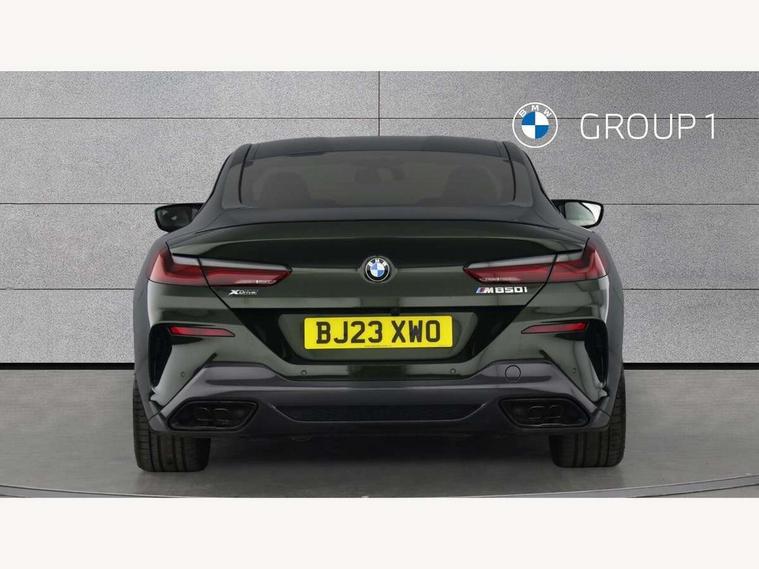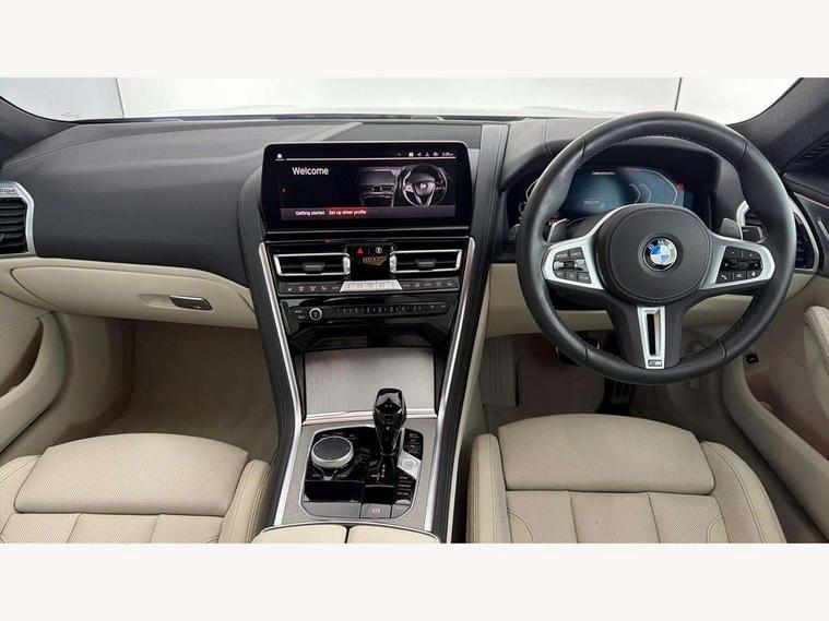 Automatic tailgate operation, remote opening with key, closing by tailgate button or remote control including tailgate in LED technology, Bluetooth hands free facility with USB audio interface, voice control and enhanced bluetooth + Wireless charging, BMW ConnectedDrive online services, BMW legal emergency call, BMW Teleservices, Brake pad wear indicator, Check control system, Condition based service, Drive experience control with Sport, Comfort, Eco Pro and Adaptive modes, Electric bootlid, Head up Display, iDrive controller with shortcut buttons, Instrument and upper door panel in walknappa leather, Integral active steering, Integrated owners handbook, Light on warning, Oil sensor for level and grade, On board computer, Outside temperature display, Run flat indicator, Service interval indicator, Servotronic system, Speed limiter, Wi-Fi hotspot, BMW xDrive system, Double wishbone front axle, Dynamic Damper Control, Eight speed sport automatic transmission, M Sport differential, Petrol Particulate Filter, Sport exhaust system, DAB Digital radio, Favourite buttons, Air breather inlay in pearl chrome, frame in black high gloss, Automatic windscreen wipers and automatic headlight, Carbon core, Climate comfort windscreen, Daytime driving lights front and rear active, Dynamic brake lights, Exterior mirrors - Floating design mirror, electric adjust/heated/folding, aspherical, Follow me home headlight function, Frameless interior mirror, Front and rear bumper system with replaceable deformation elements, Front electric windows, Front ornamental grille with kidney grille bars, Heat protection, sun protection glazing, Heated rear window, glass, Heated windscreen washer jets, High beam assistant, High gloss shadowline exterior, Illuminated door handles, Illuminated radiator grille iconic glow, LED rear lights, M emblem on front side panel in light chrome, Model logo on right tailgate, Radiator grille frame in pearl chrome, Rain sensor and automatic driving lights control, Rear boot, Sun protection glass, Thermally insulated windscreen, Third LED technology brake light in rear window, Welcome lights in interior and door handle area, Window frame and mirror base in black high gloss, xDrive designation on left tailgate, 2 cup holders in front, 2 rear head restraints, 2 X front 12v power sockets, 3 spoke M sport leather multifunction steering wheel with shift paddle, 4 seats, 50/50 split folding rear seat, Ambient light with dynamic interior light, Automatic air conditioning with 2-zone control, BMW ID, Front centre armrest with light, 12V socket and USB and storage compartment, Front door pockets, Front entry lights doors, Front reading lights, Front seat heating, Front sun visors with ticket holder and illuminated mirror, Interior lighting - Interior light front centre above interior mirror, luggage compartment light, automatic interior light system soft on/soft off, Lashing eyelets, Lockable glove compartment with light, Microfilter and active carbon filter, Steering column with adjustable height and length and activation via control on the steering column, Through loading function, BMW Live cockpit professional pack - 8 Series, Connected professional pack - 8 Series, Exterior items pack - 8 Series/xDrive, M Performance pack - 8 Series, M sport exterior styling aerodynamics pack - 8 Series, ABS/EBD, Active protection, Airbags - Driver and front passenger airbag with seat occupancy detection, knee, side and front passenger seat airbag deactivation, Brake discs, compound structure, Cornering brake control (CBC), Crash sensor activating central locking release, hazard warning lights, fuel cut off, interior lighting, safety battery terminal clamp and airbags, DSC - Dynamic Stability Control, Dynamic brake control, Dynamic Traction Control - DTC, Electromechanical parking brake with automatic drive away release and auto hold function, Front three point with pyrotechnical belt latch tensioner seat belts, belt force limiter and belt stopper, Head airbags for 1st and 2nd seat row, Hill start assist, Integrated brake system, ISOFIX child seat mounting for the two outer rear seats, Rear three point with pyrotechnical belt latch tensioner seat belts and belt force limiter, Side impact protection, Tyre pressure monitoring system (TPMS), Warning triangle and first aid kit, Alarm system (Thatcham 1) with electronic engine immobiliser, Centre lock switch, Closing system with central locking, Comfort access system, Keyless entry with start/stop button, Locking wheel bolts, Vehicle key with exclusive M designation,
