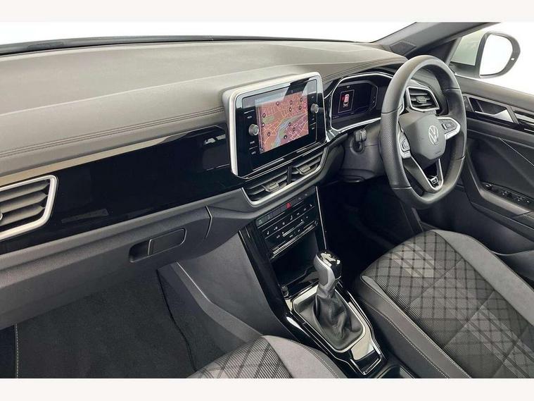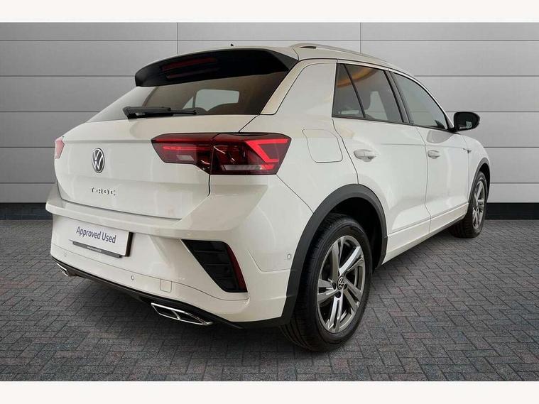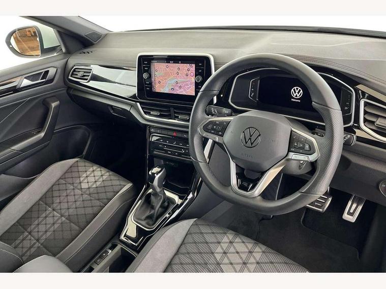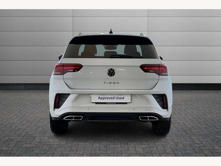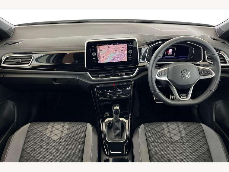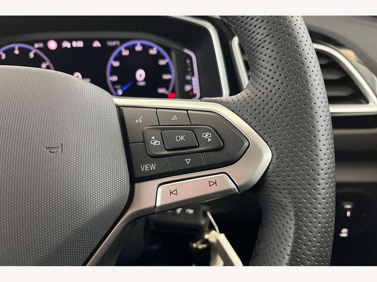 10.25" Digital cockpit pro, Advanced driver attention and drowsiness monitor, Emergency call service, Lane keeping system Lane Assist, Mobile phone interface, Modified key software - reduce switch off time for key status change to Long no motion, Online services, Park assist including front and rear parking sensors, Service interval indicator, Tailgate/trunk lid release from outside, Think blue trainer driver tips and journey analysis, Warning sound and light for front seatbelts unfastened, Wireless app connect, Battery regeneration during braking, Start/stop function with battery regeneration, DAB Digital radio, Diversity antenna for FM reception, Front and rear 6 speakers, Music playback - MP3, WMA and AAC files, Premium USB cable in choice of either Apple or Android smartphone compatibility, SD card slot, Simultaneous pairing of 2 compatible mobile devices, Title and cover art display, We Connect and We Connect Plus functionality, Auto dimming interior rear view mirror, Automatic hazard lights activation under emergency braking, Automatic headlight control with LED separate daytime running lights with coming/leaving home function, Body coloured exterior mirror housings and door handles, Electrically adjustable and heated door mirrors, Extended roof spoiler, Exterior mirrors aspherical on driver side, convex on front passenger side, External USB type C socket and charging sockets, Front windscreen wiper with intermittent wipe and 4 position delay, Heated rear window, LED 3rd brake light, LED rear combination lamps, LED rear number plate lights, Power windows with comfort operation and circuit breaker, Privacy glass for rear side windows and rear window, R-Line design body coloured bumpers, Rain sensor, Rear exhaust tailpipe, Rear fog light on one side and reversing lights on both sides, Rear side wing doors, Rear wash/wipe with intermittent wipe setting, Remote electrically foldable door mirrors, puddle lights and reverse activated passenger's door mirror, 12V power socket in centre console, 3 rear head restraints, 3 seat bench in 2nd row, 4 load lashing points in luggage compartment, Air care climatronic air conditoning system with active combination filter and 2-zone temperature control, Black roof lining, Chrome plated decorative trims, Chrome plated radiator grille inserts, air vent surrounds and light switch surrounds, Door and side trim panel with leatherette insert, Front + rear carpet mats, Front centre armrest, Front cupholders x 2, Front footwell illumination, Front reading light, Front scuff plates with R Line logo, Front seat back storage pockets, Glove compartment door with light, Instrument lighting, white adjustable panel illumination, Interior ambient lighting and surround lighting, Interior light delay, Isofix child seat preparation, Leather gearshift handle, Load-through provision with cup holder when folded down ('Unsplit rear seat bench, split folding backrest, with centre armrest), Luggage compartment lighting, Single front passenger seat, Stainless steel pedals, Storage compartment in left and right luggage area, Storage compartment in rear doors, Storage compartments in driver and front passenger doors, Sunvisors with illuminated vanity mirrors, Variable boot floor, height adjustable and removable, Driver assistance pack without proactive passenger protection - T-Roc, 3 point height adj front seatbelts + pretensioners, 3 point seatbelts in outer rear with ECE label, ABS, Child locks on rear doors, City emergency braking and pedestrian monitoring, Driver and front passenger airbag with front passenger airbag deactivation, Driver and front passenger safety-optimised head restraints, Drivers seatbelt reminder, Electronic parking brake, Electronic Stability Control (ESC) inc EDL (Electronic Differential Lock) and ASR (Traction Control), Front and rear passengers curtain airbag system including front side airbags, Hill start assist, Predictive pedestrian protection, Rear disc brakes, Two tone horn, Tyre pressure loss indicator, Volkswagen roadside assistance, Piano black decorative inserts in dashboard and front door trim panels, Trims for alloy wheels,