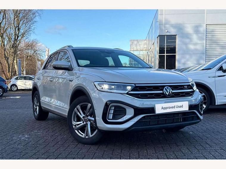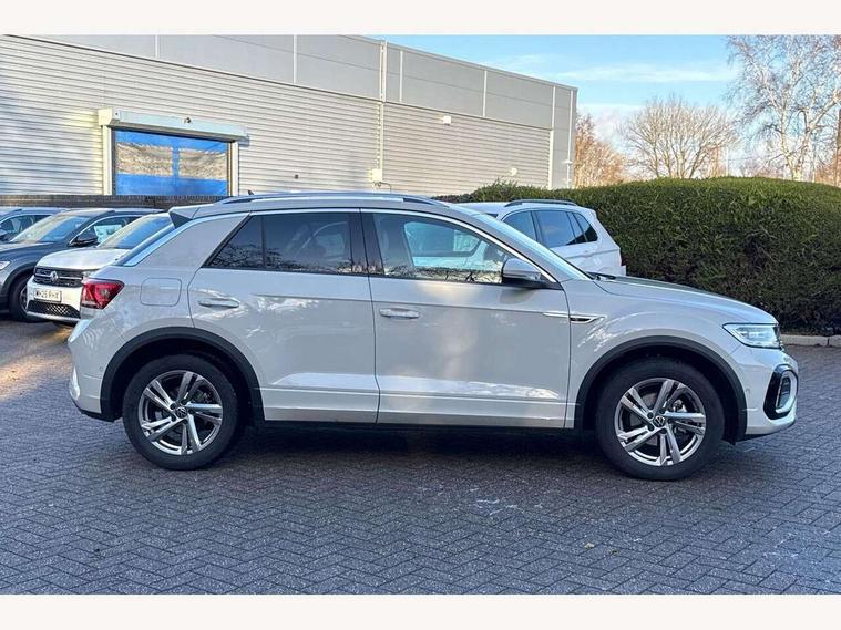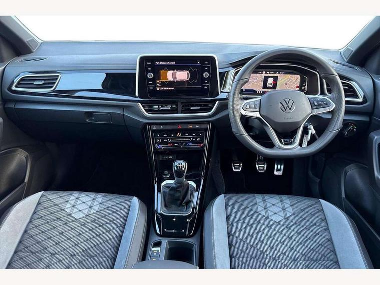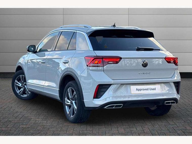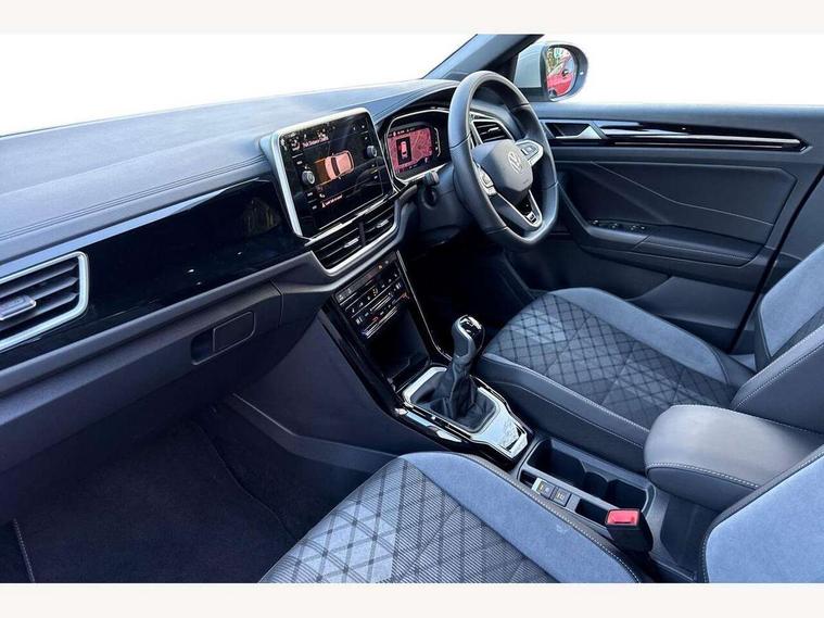 10.25" Digital cockpit pro, Advanced driver attention and drowsiness monitor, Emergency call service, Lane keeping system Lane Assist, Mobile phone interface, Modified key software - reduce switch off time for key status change to Long no motion, Online services, Park assist including front and rear parking sensors, Service interval indicator, Tailgate/trunk lid release from outside, Think blue trainer driver tips and journey analysis, Warning sound and light for front seatbelts unfastened, Wireless app connect, Battery regeneration during braking, Start/stop function with battery regeneration, DAB Digital radio, Diversity antenna for FM reception, Front and rear 6 speakers, Music playback - MP3, WMA and AAC files, Premium USB cable in choice of either Apple or Android smartphone compatibility, SD card slot, Simultaneous pairing of 2 compatible mobile devices, Title and cover art display, We Connect and We Connect Plus functionality, Auto dimming interior rear view mirror, Automatic hazard lights activation under emergency braking, Automatic headlight control with LED separate daytime running lights with coming/leaving home function, Body coloured exterior mirror housings and door handles, Electrically adjustable and heated door mirrors, Extended roof spoiler, Exterior mirrors aspherical on driver side, convex on front passenger side, External USB type C socket and charging sockets, Front windscreen wiper with intermittent wipe and 4 position delay, Heated rear window, LED 3rd brake light, LED rear combination lamps, LED rear number plate lights, Power windows with comfort operation and circuit breaker, Privacy glass for rear side windows and rear window, R-Line design body coloured bumpers, Rain sensor, Rear exhaust tailpipe, Rear fog light on one side and reversing lights on both sides, Rear side wing doors, Rear wash/wipe with intermittent wipe setting, Remote electrically foldable door mirrors, puddle lights and reverse activated passenger's door mirror, 12V power socket in centre console, 3 rear head restraints, 3 seat bench in 2nd row, 4 load lashing points in luggage compartment, Air care climatronic air conditoning system with active combination filter and 2-zone temperature control, Black roof lining, Chrome plated decorative trims, Chrome plated radiator grille inserts, air vent surrounds and light switch surrounds, Door and side trim panel with leatherette insert, Front + rear carpet mats, Front centre armrest, Front cupholders x 2, Front footwell illumination, Front reading light, Front scuff plates with R Line logo, Front seat back storage pockets, Glove compartment door with light, Instrument lighting, white adjustable panel illumination, Interior ambient lighting and surround lighting, Interior light delay, Isofix child seat preparation, Leather gearshift handle, Load-through provision with cup holder when folded down ('Unsplit rear seat bench, split folding backrest, with centre armrest), Luggage compartment lighting, Single front passenger seat, Stainless steel pedals, Storage compartment in left and right luggage area, Storage compartment in rear doors, Storage compartments in driver and front passenger doors, Sunvisors with illuminated vanity mirrors, Variable boot floor, height adjustable and removable, Driver assistance pack without proactive passenger protection - T-Roc, 3 point height adj front seatbelts + pretensioners, 3 point seatbelts in outer rear with ECE label, ABS, Child locks on rear doors, City emergency braking and pedestrian monitoring, Driver and front passenger airbag with front passenger airbag deactivation, Driver and front passenger safety-optimised head restraints, Drivers seatbelt reminder, Electronic parking brake, Electronic Stability Control (ESC) inc EDL (Electronic Differential Lock) and ASR (Traction Control), Front and rear passengers curtain airbag system including front side airbags, Hill start assist, Predictive pedestrian protection, Rear disc brakes, Two tone horn, Tyre pressure loss indicator, Volkswagen roadside assistance, Piano black decorative inserts in dashboard and front door trim panels, Trims for alloy wheels,
