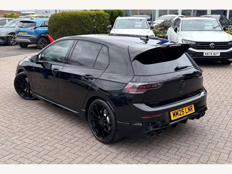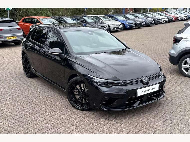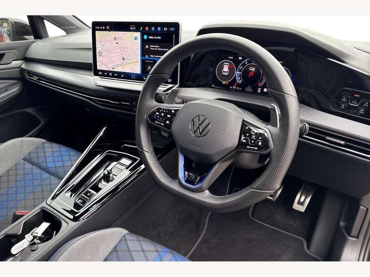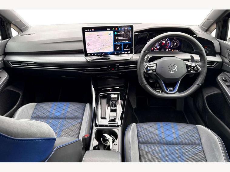 Activated carbon canister, Adaptive cruise control (ACC), Advanced driver attention and drowsiness monitor, Dynamic road sign display, E-Sim card for online connectivity, eCall emergency call system, Electronic maximum speed limit increased to 270 km/h, includes driving Modes 'drift' and 'special', larger roof spolier and GPS laptimer + G-Meter, Multi-color Digital cockpit pro, selection of different info profile possible, Multifunction front facing camera for distance control, Navigation system, Oncoming vehicle braking when turning including swerve support, Side assist blind spot lane change system, rear traffic alert and exit warning system, Speed limiter, Speedo, rev counter, electronic odometer, trip, service interval display, exterior temperature and fuel gauge, Traffic jam assist, Voice enhancer and voice control, Warning signal and warning light for front and rear seatbelts not fastened, We connect plus preparation, We connect preparation, Wireless app connect, All wheel drive - 4Motion, Petrol Particulate Filter, Start-stop system with battery regeneration (recuperation - energy recovery during braking), XDS electronic differential lock for improved traction and handling, 2 USB C ports in front, 2 USB charging sockets on the centre console in the rear charging capacity upto 45W, Digital radio reception (DAB), Diversity antenna for FM reception, Gaming platform via car app, Infotainment system with 12.9" display, Mobile phone interface with inductive charging feature, 3rd brake light, Auto dimming rear view mirror, Automatic headlamp activation with Coming home and Leaving home feature, Black badge on B-pillar, Black mirror caps, Black strips on radiator grille and headlights, Body colour door handles, Darkened headlights, Darkened R Logos and VW logos in front, rear and on fender, Exterior mirrors convex on the left and aspherical on the right, Front and rear electric windows, Front fog lamps and cornering light, Heat insulating windshield made of laminated glass, Illuminated lighting animation with wake up/goodbye scenario, LED matrix headlights with ambient light V2, advanced high beam, dynamic range contol with cornering, LED rear lamp with indicator, poor weather, LED separate daytime running light, R name plate, Rain sensor, Rear fog light on one side and reversing lights on both sides, Rear side wing doors, Rear tinted glass 65% light absorbing from B pillar backwards, Rear windscreen washer and wiper with interval delay, Remote electrically foldable door mirrors, puddle lights and reverse activated passenger's door mirror, Welcome light with surround lighting, 12V socket in front centre console, 12V socket in luggage compartment, 3 rear head restraints, 3 seat bench in 2nd row, 30 colour ambient lighting, illuminated center console storage compartment in front, Air care climatronic 3 Zone automatic climate control with rear air conditioning control panel, Aluminium gearshift handle, Brushed stainless steel pedals, Chrome plated radiator grille inserts, air vent surrounds and light switch surrounds, Entry lights, Front + rear black carpet mats, Front centre armrest, Integrated front head restraints, ISOFIX anchors for child seats on outer rear bench seats and on front passanger seat compatible for i-Size, Luggage compartment lighting, Rear cupholder and loadthough, Single front passenger seat, Soul black instrument panel, Soul black roof lining, Split folding backrest with centre armrest and unsplit rear seat bench, Sun visors with illuminated vanity mirrors, Driver assistance pack - Golf Estate/Hatchback Auto, R styling pack - Golf, Technology park and comfort pro package - Golf Hatchback, 3 point height adj front seatbelts + pretensioners, 3 rear three point seatbelts, ABS, Autonomous emergency braking front assist with pedestrian and cyclist monitoring, Child locks on rear doors, Driver and front passenger airbag with front passenger airbag deactivation, Electronic parking brake with auto hold, ESC (Electronic Stability Control), Extended pedestrian protection measures, Front and rear black brake calipers with darkened R-logo, Hill start assist, Rear disc brakes, Two tone horn, Tyre pressure loss indicator, Volkswagen roadside assistance, Anti theft wheel bolts, Preparation for alcohol interlock, 19" Estoril alloy wheels in black with progressive steering, Sporty vehicle dynamics, Tool kit for tyre mobility set, Tyre mobility kit Includes 12V compressor and tyre sealant, Wheel hub cover with darkened R-logo,