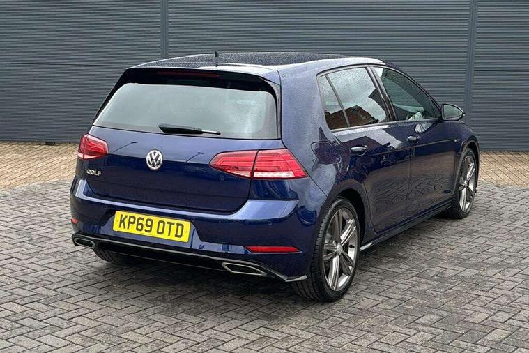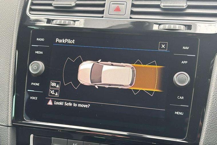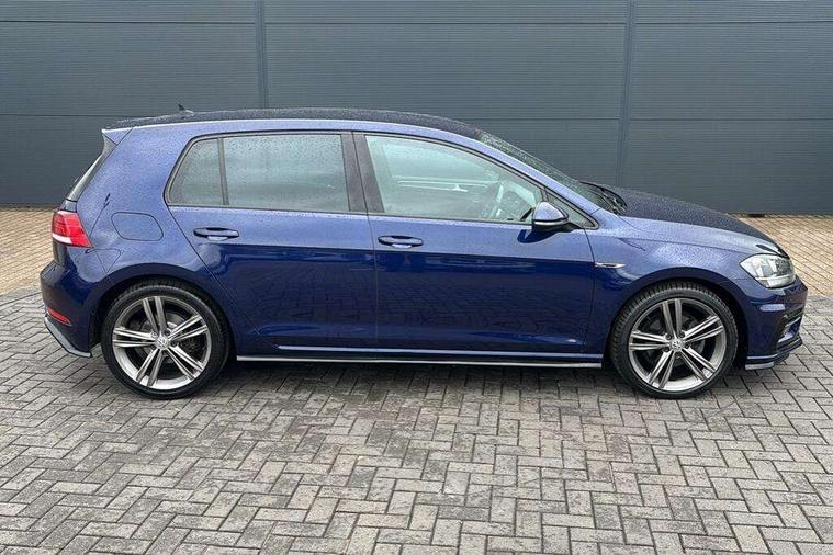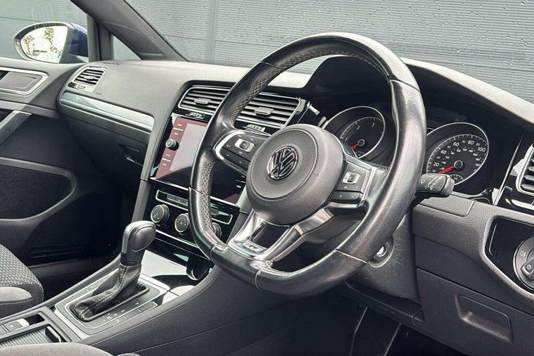 'Lights On' Reminder warning buzzer, ACC - Adaptive cruise control with front assist, forward collision warning, distance monitoring, city emergency brake and speed limiter, Bluetooth telephone and audio connection for compatible devices, Brake pad wear indicator warning light, Driver alert system, Driving Mode Selection with four preset modes - Eco, normal, sport or individual modes, Instrument cluster in white, Misfuelling protection device, Multifunction computer with visual gear change recommendation for fuel consumption, Power assisted speed sensitive electro-mechanical steering, Push tank flap, Speed limit display, Speedo, rev counter, electronic odometer, trip, service interval display, exterior temperature and fuel gauge, Startup screen with R-Line logo, Stop/start system, Think blue trainer driver tips and journey analysis, Warning buzzer and light for front seatbelts unfastened, Battery regeneration during braking, Diesel particulate filter, XDS electronic differential lock, Composition media system, DAB Digital radio receiver, Driver Personalisation profile selection, MP3/WMA compatability, Multi device interface (MDI) with USB connection, Premium USB cable in choice of either Apple or Android smartphone compatibility, SMS Functionality, USB and SD card connectivity, Black front air intake and radiator grille with chrome insert, Body colour bumpers, Body colour door handles, Body colour door mirrors with integrated indicators, Body colour rear roof spoiler, Dusk sensor + automatic driving lights, Electric front windows, Electric rear windows, Electrically adjustable and heated door mirrors, Fully galvanised body, Glossy black R-Line specific louver ventilation, Heated rear windscreen, High level 3rd brake light incorporating LED Technology, LED front fog lights with static cornering light function, Left and right chrome effect trapezoid dummy exhaust tailpipe surrounds, Radiator grille with R-Line logo, Range adjustable headlights via infotainment system with LED daytime running lights, Rear diffuser, Rear fog lamp, Rear number plate lights incorporating LED technology, Rear tinted glass 65% light absorbing from B pillar backwards, Rear window aerial, Rear window wash/wipe with intermittent wipe, Reflectors in all doors, Remote electrically foldable door mirrors, door mirror puddle lights and reverse activated kerb-view adjustment on passengers door mirror, Shiny black aerofoil downside, Sill extensions, Stainless steel door sill protection, Unique R Line badging, Windscreen wipers/ intermittent wipe + 4 position delay, 12V socket in luggage compartment, 3 rear headrests, 4 load lashing points in luggage compartment, 60/40 split folding rear seat backrest, Bag hook in luggage compartment x 2, Black decorative sleeve on gear handles, Black headlining, Black roof lining, Cooled glovebox, Dust/pollen filter, Embosseed R line logo on front sport seat backrest, Front + rear carpet mats, Front centre armrest with storage compartment and two rear air vents, Front seat back storage pockets, Grab handles front x 2, rear x 2 with integrated coat hooks, Height and reach adjustable steering wheel, Illuminated vanity mirrors, Instrument lighting white adjustable panel illumination, Interior light delay, Isofix preparation for 2 rear child seats, Leather gear knob and handbrake grip, Load through provision with rear centre armrest and cupholders x2, Luggage compartment lighting, Multifunction sports leather steering wheel with R-Line logo and decorative seams in crystal grey including paddle shift, Overhead storage box, Stainless steel pedals, Storage box in luggage compartment, Storage compartment in roof console with cover, Storage compartments in front doors, Storage compartments in rear doors, Stowable luggage compartment cover, Sun visors, Variable boot floor, height adjustable and removable, Ambient lighting pack - Golf, Convenience Pack - Golf, Light and Sight pack - Golf, Mirror pack - Golf, R Line Styling pack - Golf, 3 rear three point seatbelts, Airbags - Driver's and front passenger's, curtain airbag, Driver's knee, front side impact and passenger's airbag deactivation switch, Anti-lock Braking System (ABS) with Hydraulic Brake Assist (HBA), Automatic post collision braking system, Child locks on rear doors, Driver/Passenger optimised head restraints, Electronic parking brake with auto hold, Electronic stability control (ESC) including Electronic differential lock (EDL) and ASR (Traction control) with deactivation via infotainment system, Front ventilated disc brakes and rear disc brakes, Pre crash preventive occupant protection, Three point height adjustable front seatbelts with tensioners, Tyre pressure loss indicator, Alarm with interior protection and deactivation via infotainment system, Electronic engine immobiliser, Chrome plated air vent surround, Chrome plated electric mirror adjustment switch surround, Chrome-plated light switch surround, Dark Diamond decorative inserts in dash and door panels, Piano black decorative inserts in centre console, Steel space saver spare wheel,