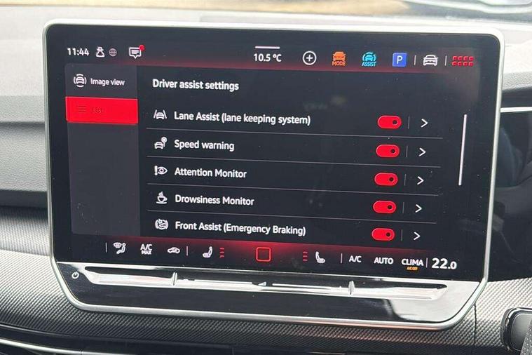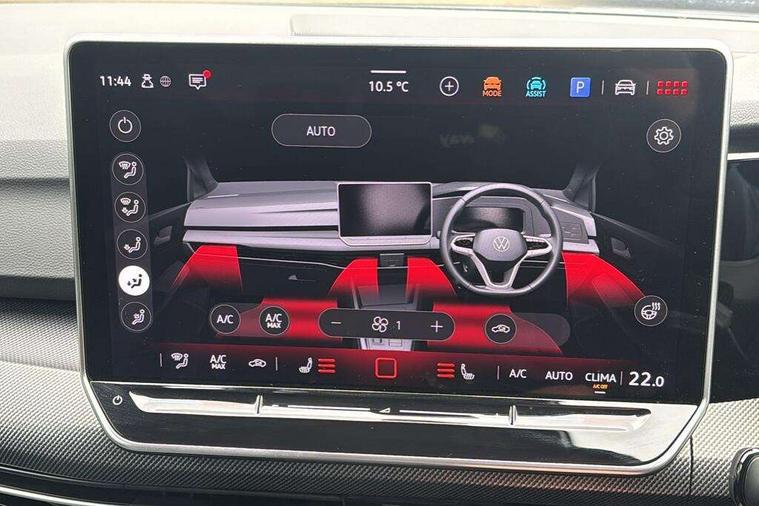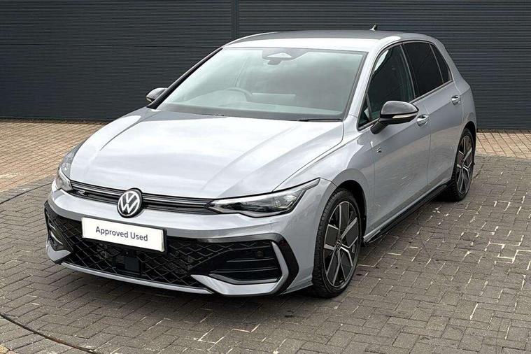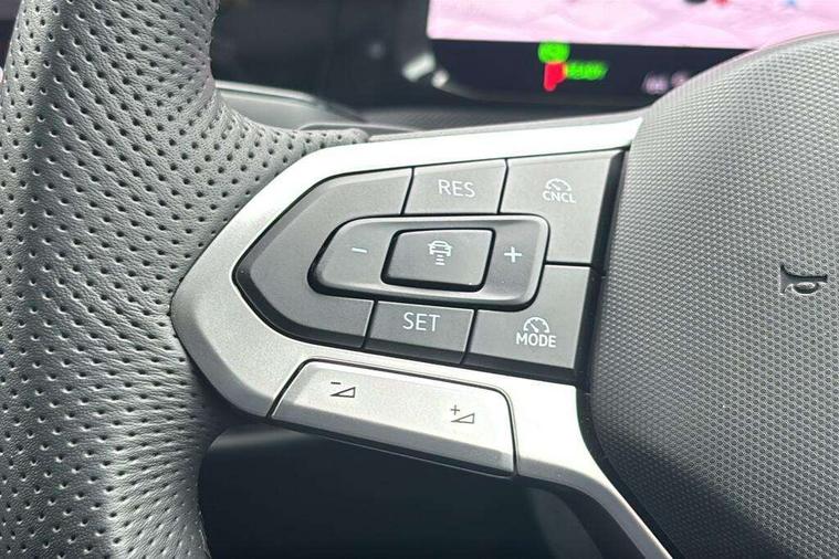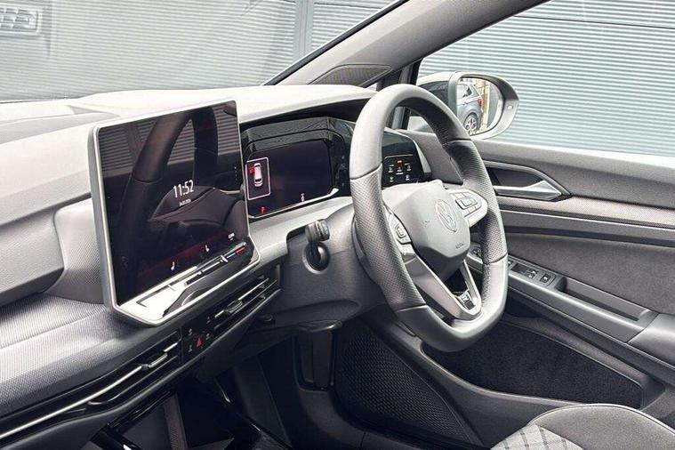 Activated carbon canister, Adaptive cruise control (ACC), Advanced driver attention and drowsiness monitor, Dynamic road sign display, Dynamic steering, E-Sim card for online connectivity, eCall emergency call system, Multi-color Digital cockpit pro, selection of different info profile possible, Multifunction front facing camera for distance control, Navigation system, Oncoming vehicle braking when turning including swerve support, Speed limiter, Speedo, rev counter, electronic odometer, trip, service interval display, exterior temperature and fuel gauge, Traffic jam assist, Voice enhancer and voice control, Warning signal and warning light for front and rear seatbelts not fastened, We connect plus preparation, We connect preparation, Wireless app connect, Hybrid propulsion system, Petrol Particulate Filter, Start-stop system with battery regeneration (recuperation - energy recovery during braking), XDS electronic differential lock for improved traction and handling, 2 USB C ports in front, 2 USB charging sockets on the centre console in the rear charging capacity upto 45W, Digital radio reception (DAB), Diversity antenna for FM reception, Gaming platform via car app, Infotainment system with 12.9" display, Mobile phone interface with inductive charging feature, 3rd brake light, Auto dimming rear view mirror, Automatic headlamp activation with Coming home and Leaving home feature, Body colored bumpers in R-Line style, Body colour door handles, Exterior ambient lighting, Exterior mirrors convex on the left and aspherical on the right, Front and rear electric windows, Heat insulating windshield made of laminated glass, LED separate daytime running light, Rain sensor, Rear exhaust tailpipe, Rear fog light on one side and reversing lights on both sides, Rear side wing doors, Rear windscreen washer and wiper with interval delay, Remote electrically foldable door mirrors, puddle lights and reverse activated passenger's door mirror, Volkswagen logo in front, illuminated lighting animation with wake up/goodbye scenario and illuminated door handles, Welcome light with surround lighting, 12V socket in front centre console, 12V socket in luggage compartment, 3 rear head restraints, 3 seat bench in 2nd row, Ambient lighting with 30 colour including LED light unit in front footwell with selectable light colour, Black roof lining, Brushed stainless steel pedals, Chrome plated radiator grille inserts, air vent surrounds and light switch surrounds, Door insert, side trim panel and arm support in leatherette, Front + rear black carpet mats, Front centre armrest, Front seat lumbar support adjuster, Integrated front head restraints, ISOFIX anchors for child seats on outer rear bench seats and on front passanger seat compatible for i-Size, Luggage compartment lighting, Manual height adjustable front passenger seat, Manually height adjustable driver seat, Plastic gear knob, Premium sports seats in front, Rear cupholder and loadthough, Sardegna cloth upholstery with front and outer rear seats Art Velour inner sides of bolsters, Single front passenger seat, Split folding backrest with centre armrest and unsplit rear seat bench, Sun visors with illuminated vanity mirrors, Titanium black instrument panel, Black exterior Styling package with Matrix LED headlights - Golf, Winter package - Golf DSG Estate/Hatchback, 3 point height adj front seatbelts + pretensioners, 3 rear three point seatbelts, ABS, Autonomous emergency braking front assist with pedestrian and cyclist monitoring, Child locks on rear doors, Driver and front passenger airbag with front passenger airbag deactivation, Electronic parking brake with auto hold, ESC (Electronic Stability Control), Extended pedestrian protection measures, Hill start assist, Rear disc brakes, Two tone horn, Tyre pressure loss indicator, Volkswagen roadside assistance, Anti theft wheel bolts, Preparation for alcohol interlock, Decorative inserts carbon grey for dashboard and front door trim panels, 18" Leeds alloy wheels, Tool kit for tyre mobility set, Tyre mobility kit Includes 12V compressor and tyre sealant,