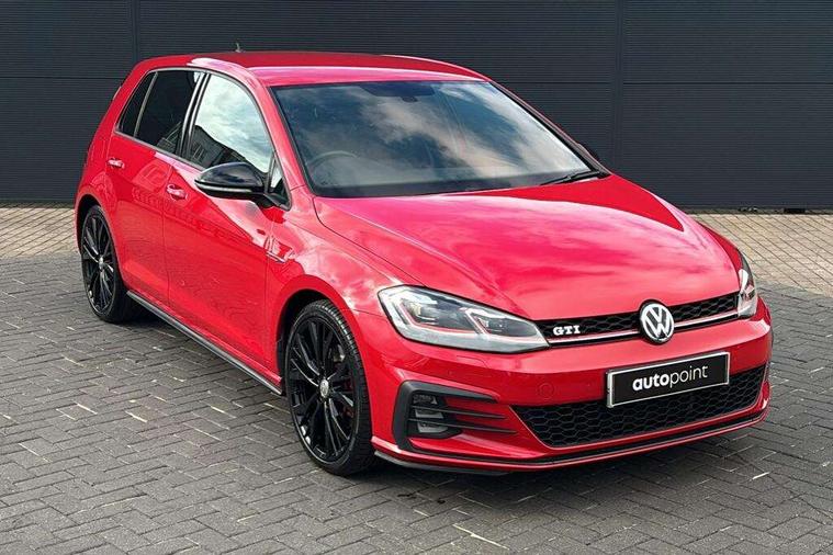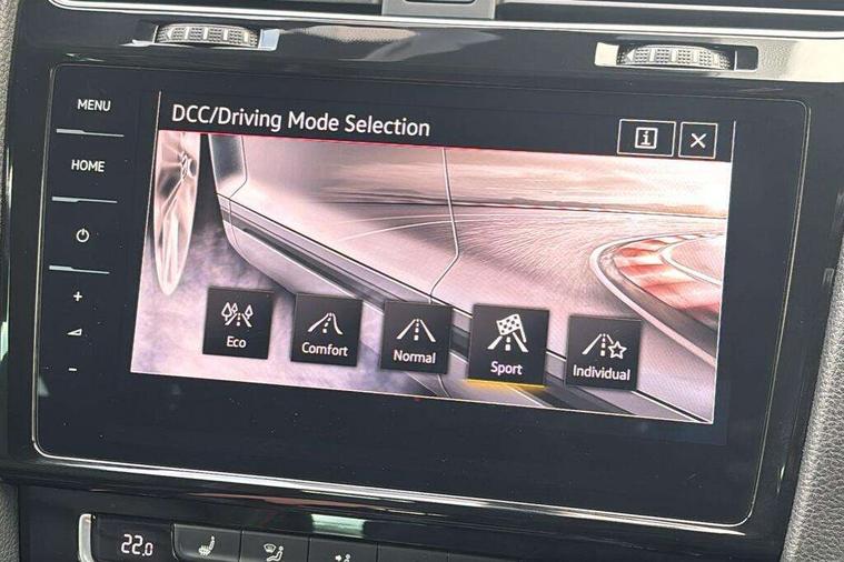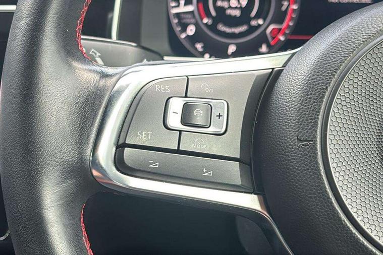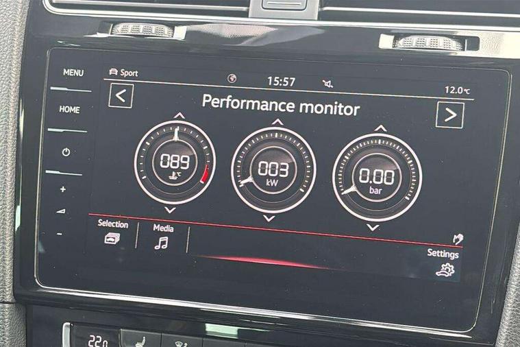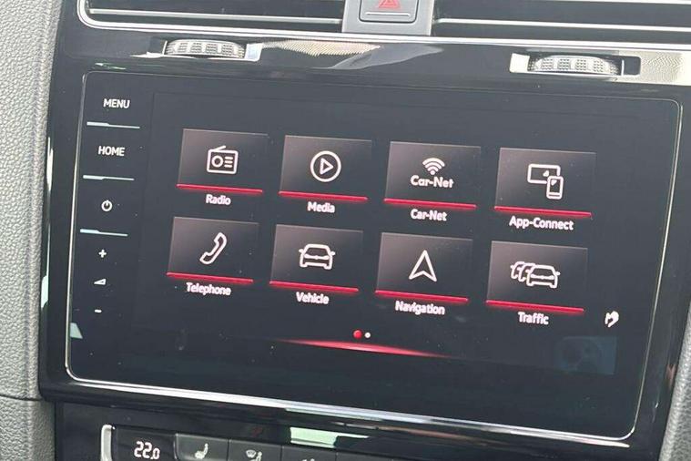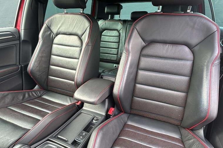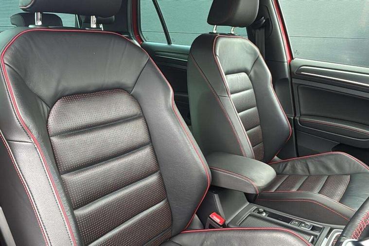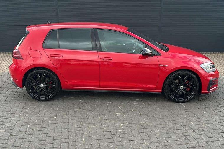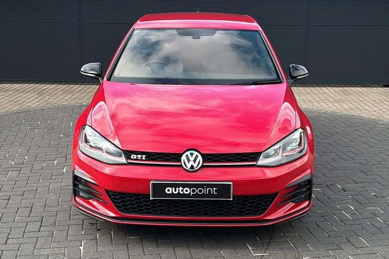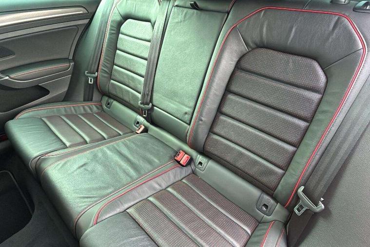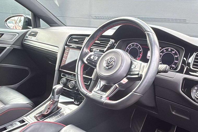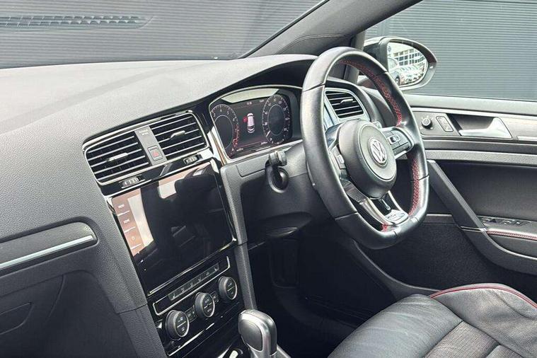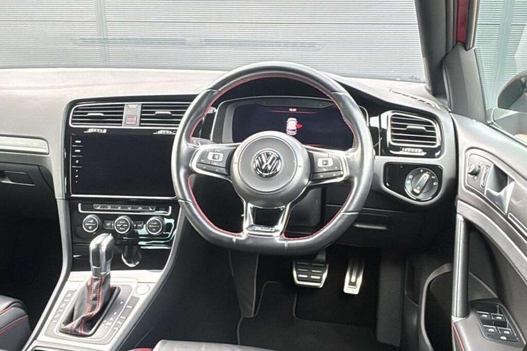 'Lights On' Reminder warning buzzer, 8" touch screen, Adaptive Cruise Control with pedestrian detection and speed limiter, App-Connect, Bluetooth hands free telephone connection, Brake pad wear indicator warning light, Driver alert system, Driver profile selection, Exterior temperature gauge, Front assistant collision mitigation, Instrument cluster in white, Multifunction computer, Progressive power assisted steering, Rev counter, Trip and service interval display, Ultrasonic front and rear optical and audible parking sensors, Warning buzzer and light for front seatbelts unfastened, Anti-tramp function, Lowered sports suspension, XDS plus electronic differential lock, CD/MP3/WMA, USB and SD card reader, aux-in, Composition media system, DAB Digital radio, 3D-LED-SBBR with sweeping indicator, Auto dimming rear view mirror, Automatic coming/leaving home lighting function, Automatic headlights, Black rear diffuser, Body colour door handles, Body colour door mirrors, Body colour rear roof spoiler, Body colour sports bumpers, Electric front windows, Electric rear windows, Electrically adjustable and heated door mirrors, Heated rear windscreen, Honeycomb radiator grille - black, LED daytime running lights, LED front fog lights, LED rear lights, Rain sensor, Rear windscreen washer and wiper with interval delay, Twin exhaust tailpipe, 12V socket in luggage compartment, 3 rear headrests, 3 spoke steering wheel, 60/40 split folding rear seat, Air conditioning - 2 zone electronic climate control, Bag hook in luggage compartment, Black headlining, Boot lashing points, Cooled glovebox, Courtesy light delay, Cover for storage compartment in centre, Dust/pollen filter, Front + rear carpet mats, Front centre armrest with storage box and rear air vents, Front passenger seat height adjust, Front seat back storage pockets, Gearshift paddles, Grab handles, Height adjustable driver's seat, Height/reach adjust steering wheel, Illuminated door sills, Illuminated vanity mirrors, Isofix preparation for 2 rear child seats, Load through provision with rear centre armrest and cupholders x2, Luggage compartment cover, Luggage compartment lighting, Multi-function leather steering wheel with red stitching, Overhead storage box, Stainless steel pedals, Storage box in luggage compartment, Storage compartments in doors, Sun visors, Variable boot floor, height adjustable and removable, Ambient lighting pack - Golf, Mirror pack - Golf, 3 point height adj front seatbelts + pretensioners, 3 rear 3 point seatbelts, ABS, Automatic post collision braking, Child locks on rear doors, Driver/Front Passenger airbags, Driver/Passenger whiplash optimised head restraints, Drivers knee airbag, Electronic parking brake with auto hold, ESP with EDL + ASR, Front and rear curtain airbags, Front passenger airbag deactivation, Front side airbags, Pre crash system, Red brake calipers, Tyre pressure monitor, Alarm with interior protection, Electronic engine immobiliser, Remote central locking with 2 remote folding keys, Chrome-plated light switch surround, Honeycomb black decorative inserts, Piano black centre console, Space saver spare wheel,