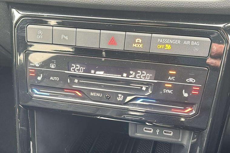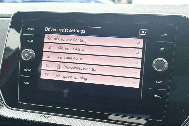 'Lights On' Reminder warning buzzer, 10.25" Digital cockpit pro, Advanced driver attention and drowsiness monitor, Car information display, Driver profile selection including ECO function, Dynamic road sign display, E-Sim card for online connectivity, eCall emergency call system, Front and rear parking sensors, Front assist, forward collision warning, autonomous emergency braking and speed limiter, Low washer fluid warning light, Mobile phone interface with inductive charging, Multifunction computer with visual gear change recommendation for fuel consumption, Multifunction front facing camera for distance control, Operating permit alteration, Power assisted steering, Predictive adaptive cruise control, Preparation for navigation system with media and internet package, Preparation for We connect and We connect plus, Semi-automated driving assistance, travel assist including lane keeping system Lane Assist and emergency assisst, Side assist, Speedo, rev counter, electronic odometer, trip, service interval display, exterior temperature and fuel gauge, Warning sound and light for doors and tailgate open, Warning sound and light for front seatbelts unfastened, Wireless Car net app connect with Apple CarPlay, combined functionality of Apple CarPlay/Android Auto and MirrorLink, Wireless charging, Misfuel prevention device, Start-stop system with battery regeneration (recuperation - energy recovery during braking), 2 USB C ports in front, 2 USB charging sockets on the centre console in the rear charging capacity upto 45W, Diversity antenna for FM reception, Music playback - MP3, WMA and AAC files, Radio, Advanced high beam control dynamic light assist, Automatic dimming interior rear view mirror, Automatic hazard lights activation under emergency braking, Automatic headlight control and coming home and leaving home feature, Black roof rails, Body colour door handles, Body coloured bumpers, Cornering light and poor weather light, Dynamic headlight range control, Electric folding door mirror, adjustable, heated with front passenger exterior mirror lowering function, Exterior mirror housings in black, Exterior mirrors convex on the left and aspherical on the right, Front and rear electric windows, Front door sill protectors with R-Line logo, Galvanised body, Heat insulating and laminated safety glass windshield, Heat insulating darkened glass in side and rear windows, Illuminated molding between headlamps, IQ.Light LED matrix headlamps with LED separate daytime running light, LED rear tail lights with dynamic turn signal, LED third brake light, Lower door sills and door pillars in black, Privacy glass for rear side windows and rear window, Rain sensor, Rear fog light on one side, reversing light on both sides, Rear side wing doors, Rear window aerial, Rear window wiper with intermittent control, Reflectors in all doors, Scuff plates, Tailgate with integrated roof spoiler, 12V Accessory socket in centre console, 2 Front and rear reading lights incorporating LED technology, 3 rear head restraints, 3 seat bench in 2nd row, 60/40 split folding rear seat backrest, Air care climatronic 2 zone air conditioning system, Ambient lighting and logo projection, Brushed stainless steel pedals, Chrome plated radiator grille inserts, air vent surrounds and light switch surrounds, Cloth upholstery, Comfort front sport seats, Door and side trim panel, Driver and front passenger sunvisor with vanity mirror, Dust and pollen filter, Front + rear carpet mats, Front centre armrest, Front centre armrest with storage compartment, Front footwell illumination, Front seat back storage pockets, Glove compartment door with light, Heated front seats, Heating and fresh air system with 4 stage blower, Height/reach adjust steering wheel, Instrument lighting white adjustable panel illumination, Interior light with switch off delay and dimmer, Isofix anchors for child seats on outer rear seats and front passenger seats, Leather gearshift handle, Leather wrapped multifunction steering wheel with paddle shift, Luggage compartment floor, Luggage compartment lighting, Manual front seats with height adjustment, Padded dashboard, Removable luggage compartment cover, Single front passenger seat, Storage compartment in drivers and front passengers door, Titanium black roof lining, Unsplit sliding rear seat bench, Without drawers under front seats, 3 point outer rear seat belts with ECE label, 3 Point seatbelt for centre rear seat, Anti-lock Braking System (ABS) with Hydraulic Brake Assist (HBA), Automatic post collision braking system, Disc brakes in front, Disc brakes in rear, Driver and front passenger safety-optimised head restraints, Drivers and Front Passengers airbags with front passengers airbag deactivation switch, ESC with EDL and ASR (traction control), Extended and predictive pedestrian/cyclist protection, Front and rear passenger curtain airbag system including front side airbags, Height adjustable front 3 point seatbelts + pretensioners, Hill start assist, Pre crash preventive occupant protection, Proactive passenger protection system in combination with front assist, Rear door child safety locks, Rigid safety cell with front and rear crumple zones, Single tone horn, Tyre pressure loss indicator, Volkswagen roadside assistance, Alarm with interior protection, Anti theft alarm system, Anti theft wheel bolts, Electronic engine immobiliser, Remote tailgate unlocking using key fob, Black decorative trims, Titanium Black Decorative inserts - R Line, 18" York alloy wheels in black, Low rolling resistance tyres,